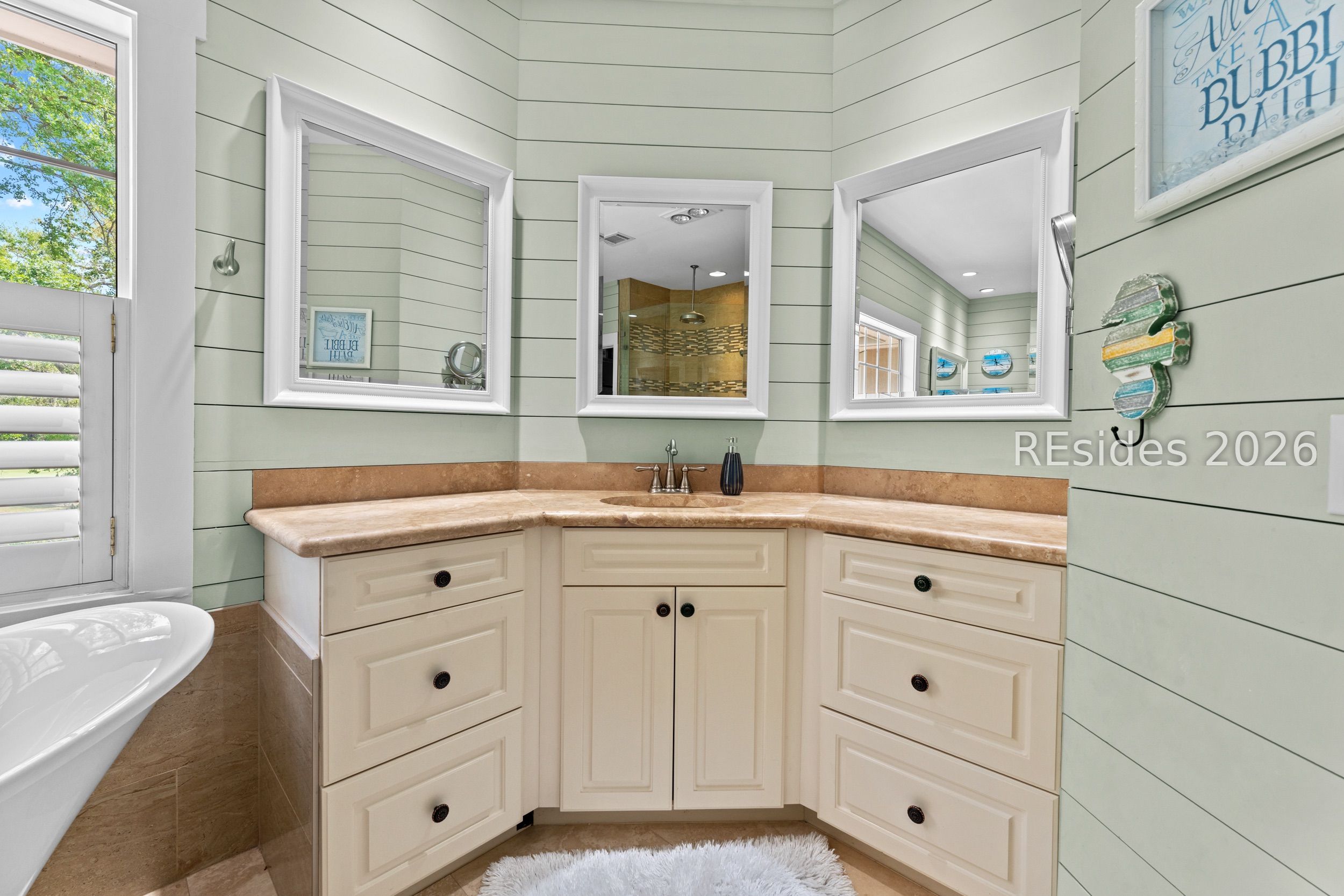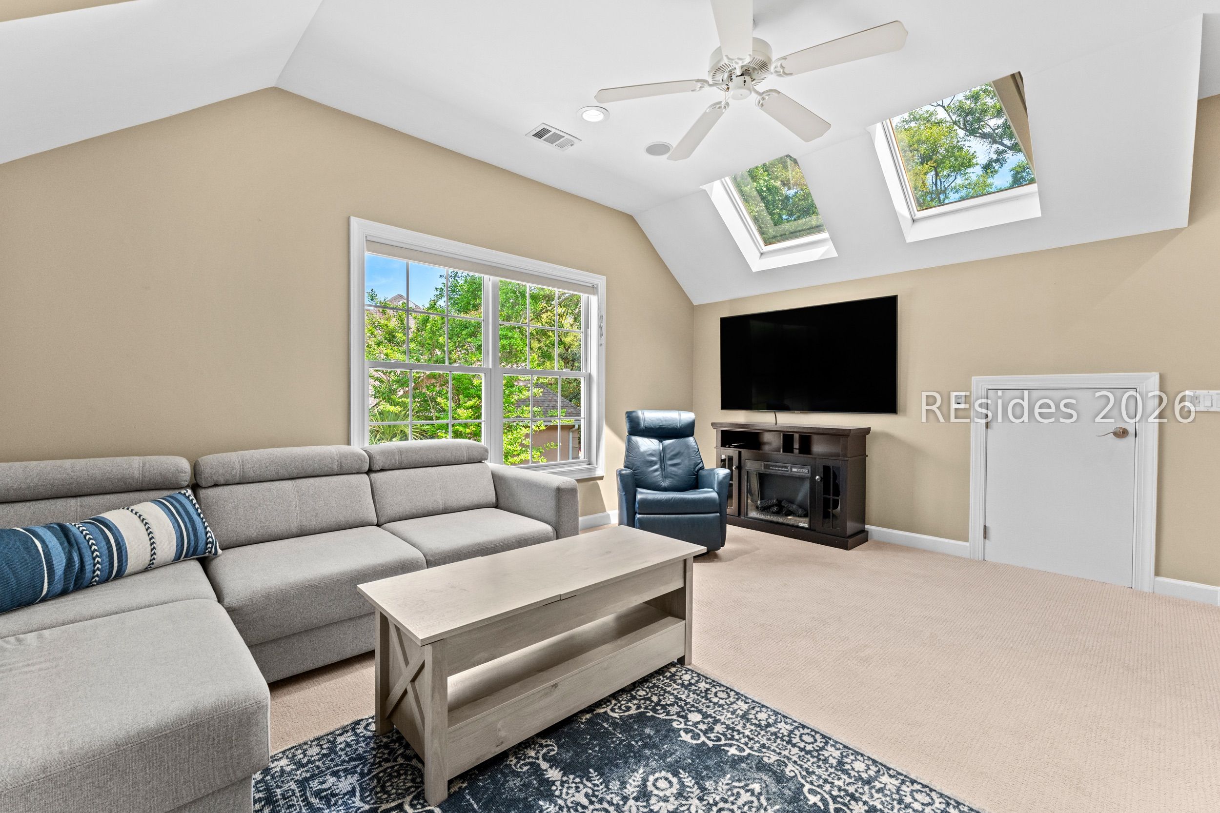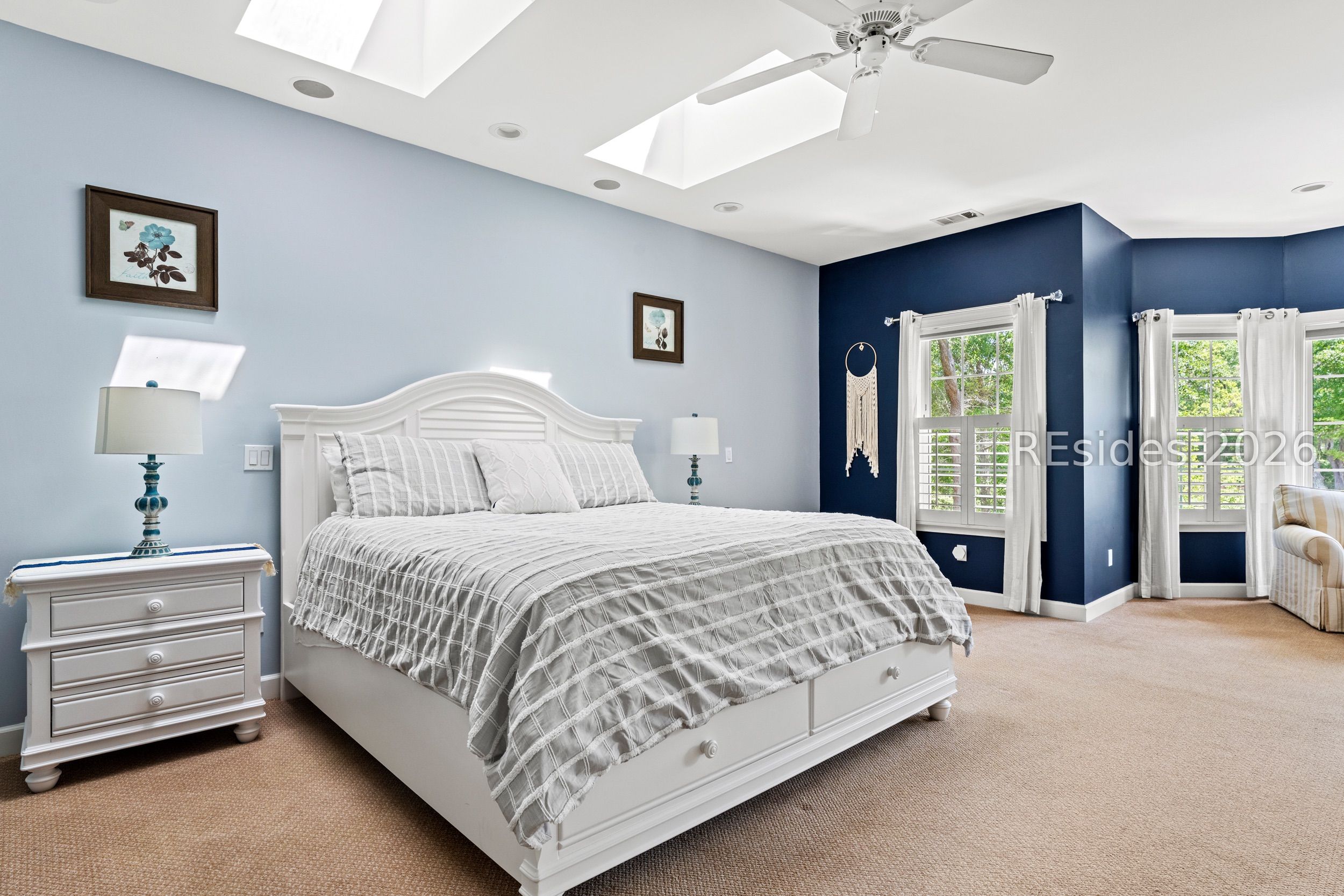 Set on a large, beautifully landscaped lot with a unique circular drive offering ample parking, this stunning Hilton Head Island home is perfectly positioned near the 7th green of the Arthur Hills Course in the sought-after Palmetto Hall community-now featuring a newly revamped clubhouse. This exceptional property offers serene golf course vistas alongside views of your own private pool, perfectly blending thoughtful upgrades with effortless Lowcountry living. The backyard is a true retreat, showcasing lush, professional landscaping and a stunning new pool completed in late 2024-ideal for relaxing or entertaining while overlooking the course. A motorized shaded awning enhances the patio, creating a comfortable outdoor living space year-round. Inside, the home features five spacious bedrooms and four full baths, with a layout designed for both functionality and comfort. The large living room provides a warm and inviting gathering space, while a generous bonus/flex room upstairs offers endless possibilities as a media room, playroom, or additional living area. The primary suite is well-sized and inviting, complemented by abundant storage throughout, including attic access via a permanent staircase. Recent updates include two refreshed upstairs bathrooms, adding a modern touch. Additional highlights include a two-car garage plus a dedicated golf cart bay, along with an EV charger