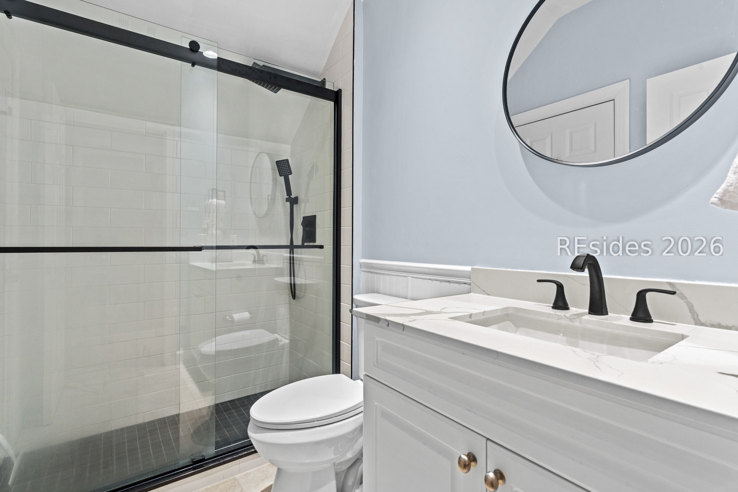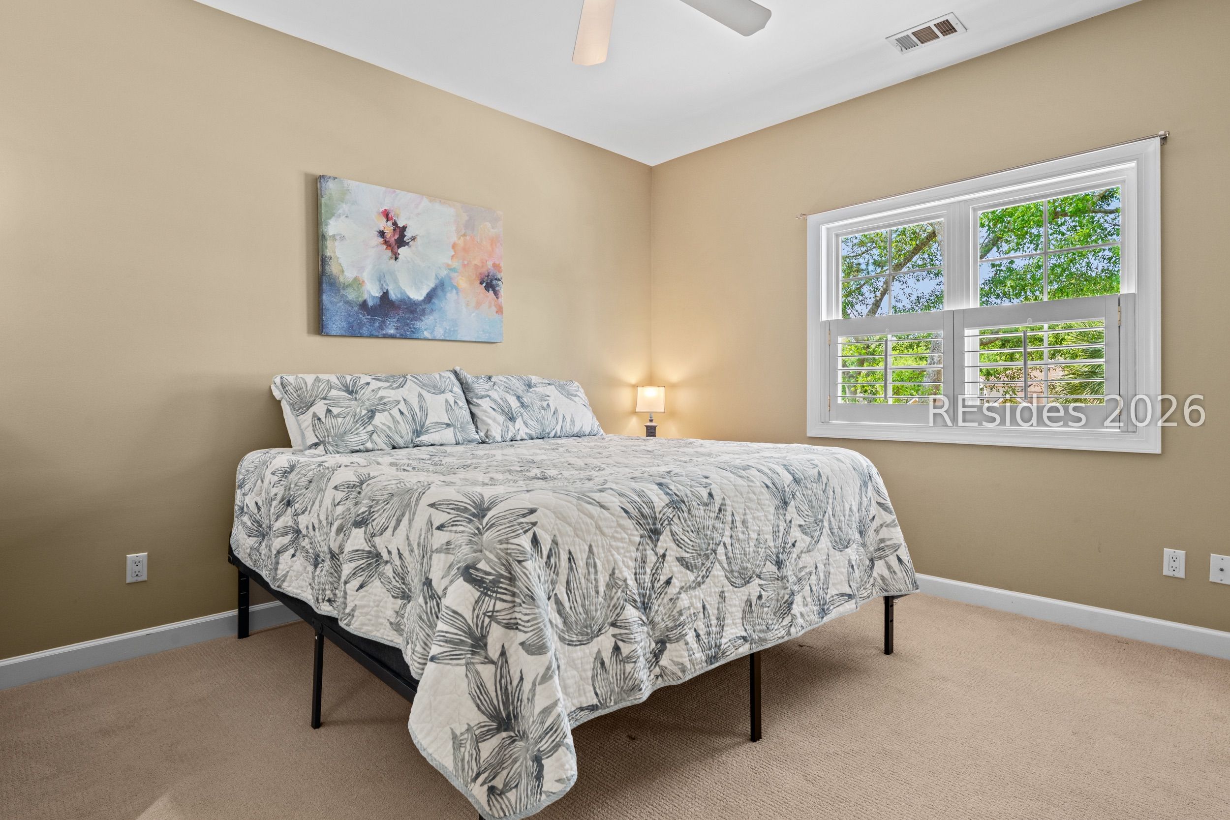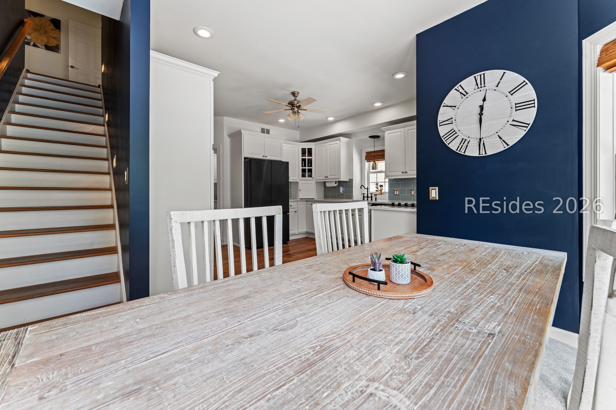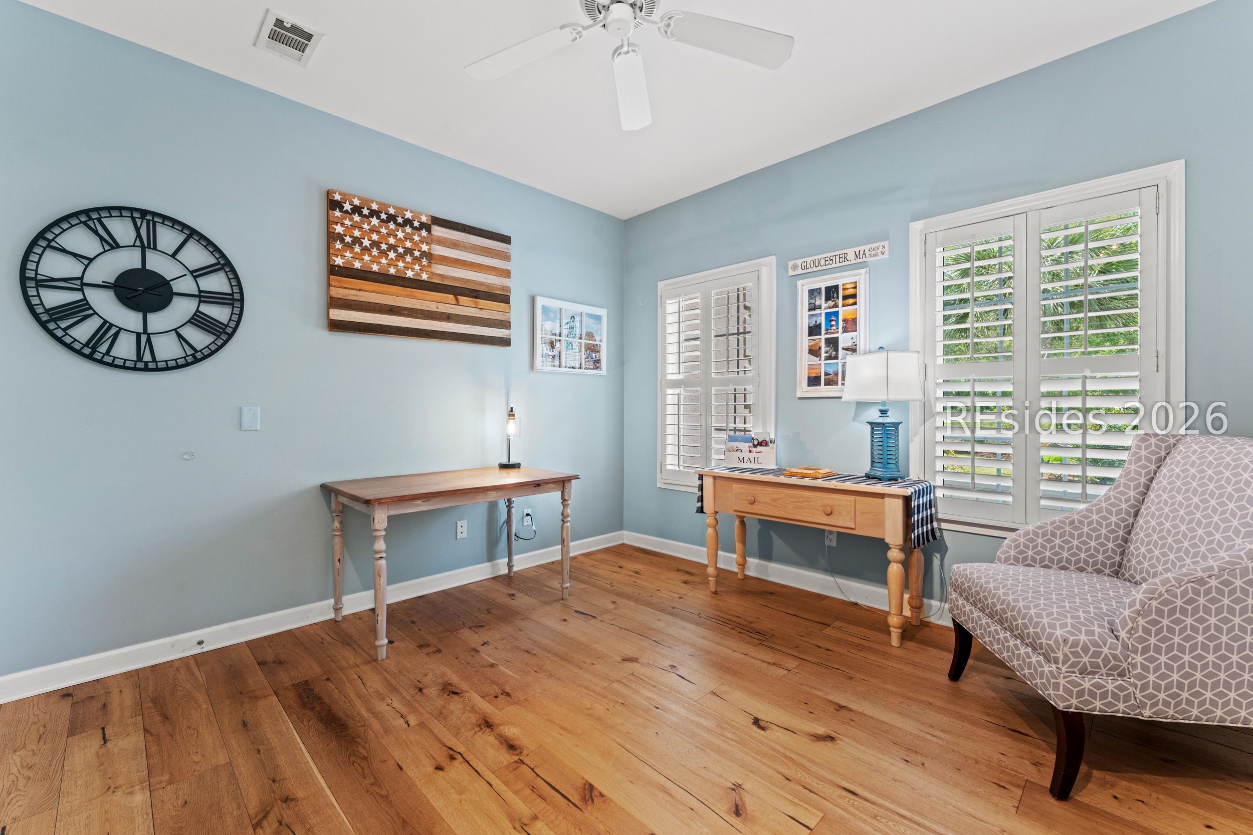 Set on a large, beautifully landscaped lot with a unique circular drive offering ample parking, this stunning Hilton Head Island home is perfectly positioned near the 7th green of the Arthur Hills Course in the sought-after Palmetto Hall community-now featuring a newly revamped clubhouse. This exceptional property offers serene golf course vistas alongside views of your own private pool, perfectly blending thoughtful upgrades with effortless Lowcountry living. The backyard is a true retreat, showcasing lush, professional landscaping and a stunning new pool completed in late 2024-ideal for relaxing or entertaining while overlooking the course. A motorized shaded awning enhances the patio, creating a comfortable outdoor living space year-round. Inside, the home features five spacious bedrooms and four full baths, with a layout designed for both functionality and comfort. The large living room provides a warm and inviting gathering space, while a generous bonus/flex room upstairs offers endless possibilities as a media room, playroom, or additional living area. The primary suite is well-sized and inviting, complemented by abundant storage throughout, including attic access via a permanent staircase. Recent updates include two refreshed upstairs bathrooms, adding a modern touch. Additional highlights include a two-car garage plus a dedicated golf cart bay, along with an EV charger