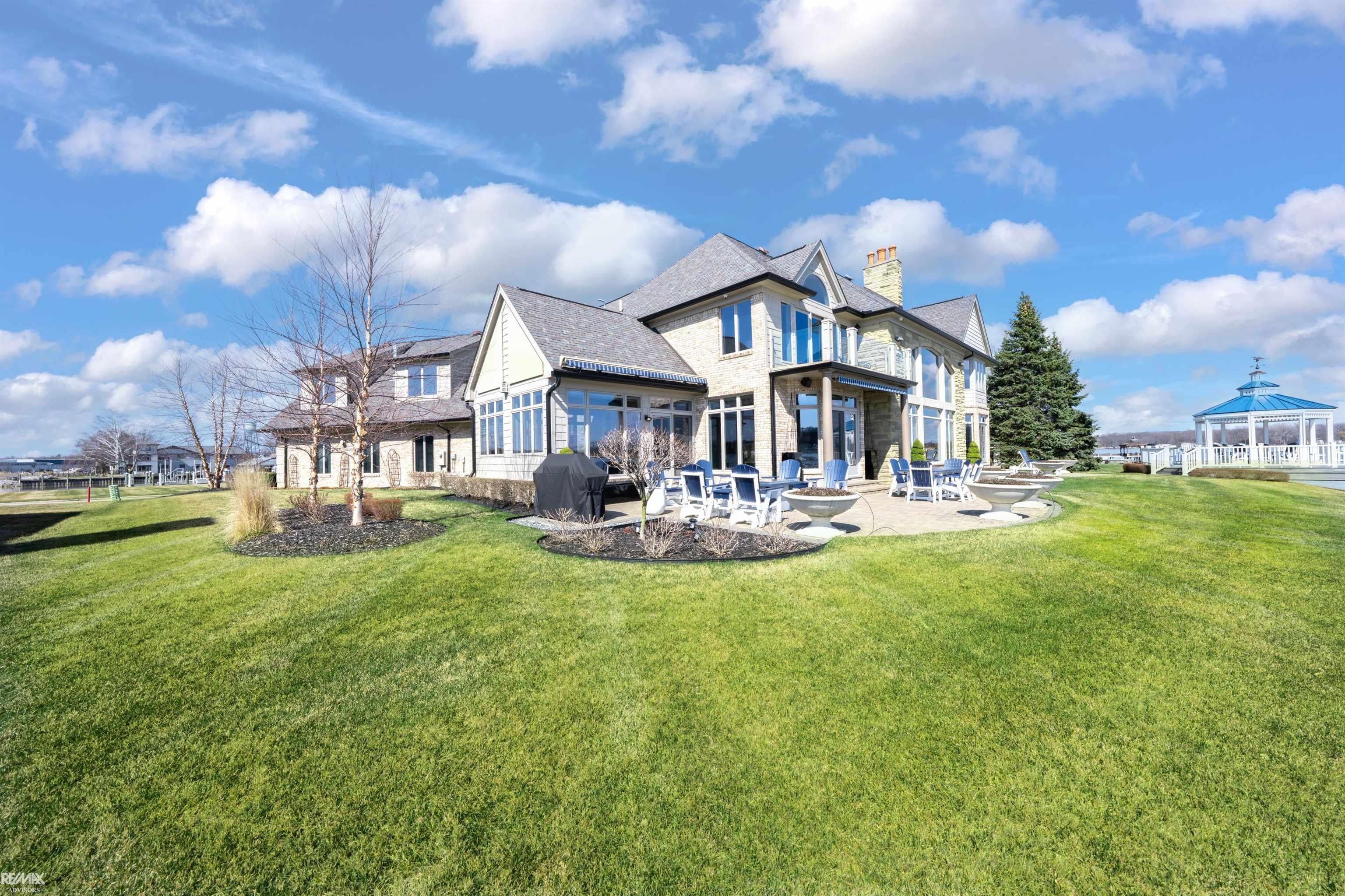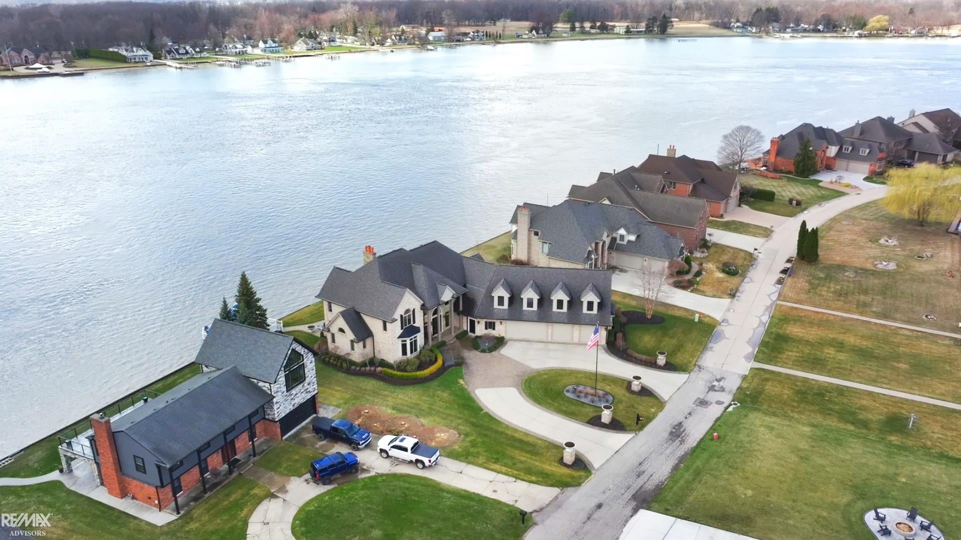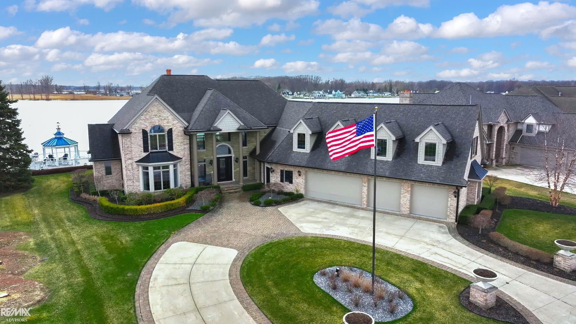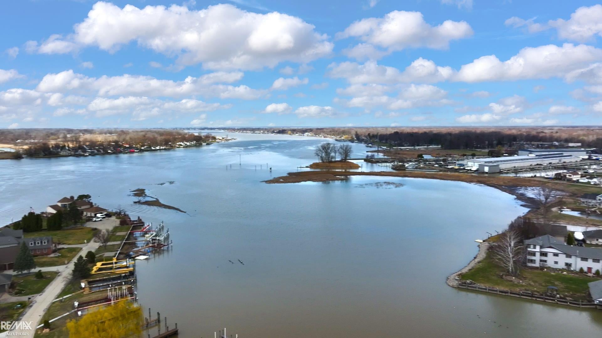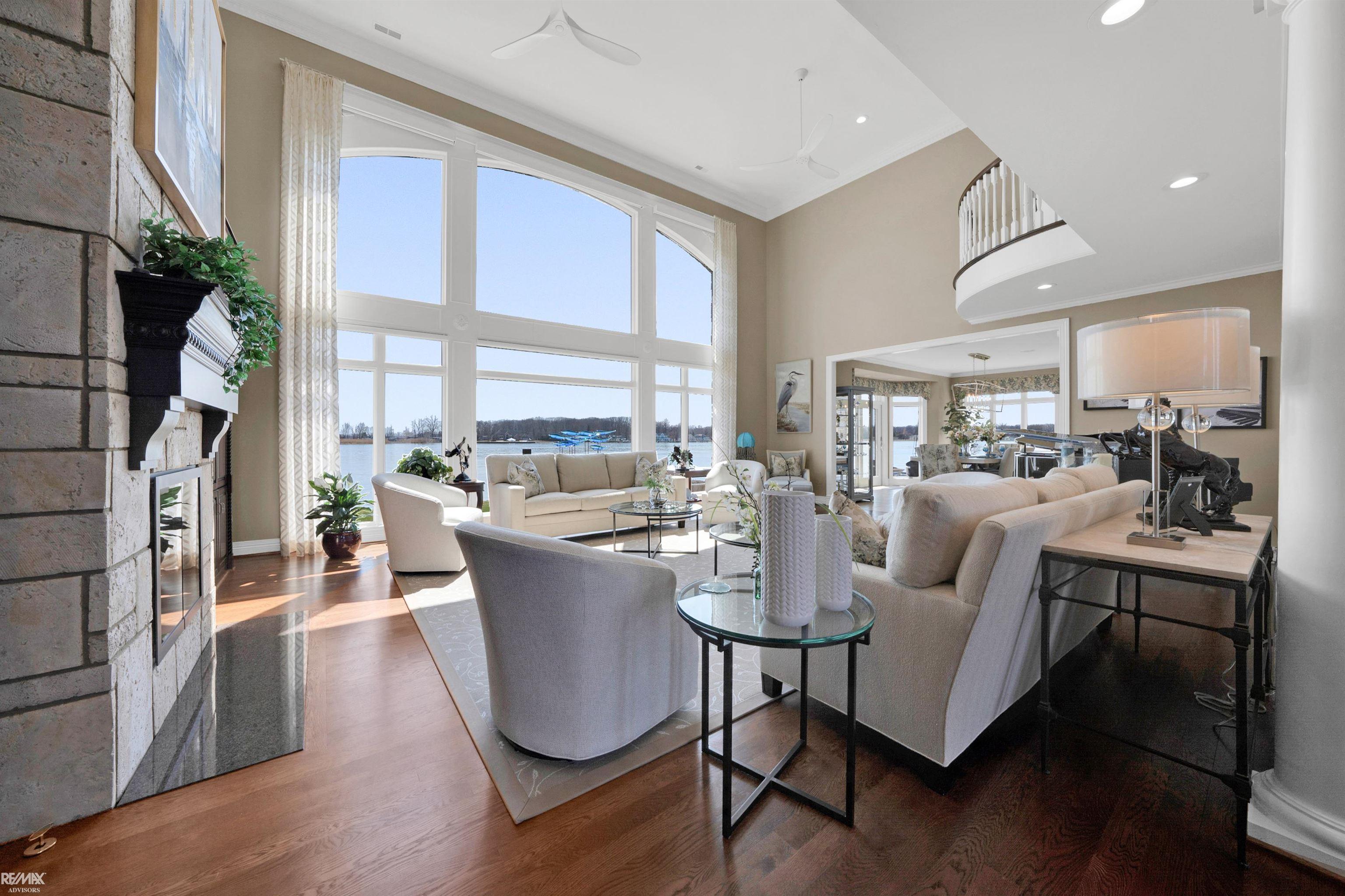 Welcome to an extraordinary waterfront peninsula estate on the North Channel of the St. Clair River in Algonac. Set on nearly an acre and surrounded by panoramic water on multiple sides, this rare property offers breathtaking sunrise and sunset views in every direction-creating a truly one-of-a-kind setting where water, sky, and light come together. This expansive, remodeled home offers approximately 6,700 sq ft of living space with 4 bedrooms and 4 bathrooms, designed for both everyday comfort and luxury entertaining. The open layout is complemented by large windows that capture stunning water views throughout the home. Outdoor living is unmatched, featuring a gazebo extending over the rivers edge-perfect for morning coffee or evening cocktails while enjoying passing boats, sailboats, and freighters along the channel. The property includes approximately 134 feet of North Channel/St. Clair River frontage plus an additional approximately 120 feet of protected harbor frontage, offering ideal conditions for boating enthusiasts. Boating features include steel seawalls on both the river and boat-well sides, multiple boat wells, and hoists accommodating vessels up to approximately 40 feet, along with a tri-toon hoist and additional well space. Whether for leisure or serious boating, this property is fully equipped. Additional highlights include a 4-car heated garage, extensive landscaping with custom architectural cement planters, and retractable awnings enhancing the outdoor patio space. Located in a desirable waterfront community, this property offers a rare combination of privacy, space, and access to open water, all within close proximity to local amenities, marinas, and dining. This is a unique opportunity to own one of the most distinctive waterfront properties on the North Channel. Some measurements and details are approximate and should be independently verified.