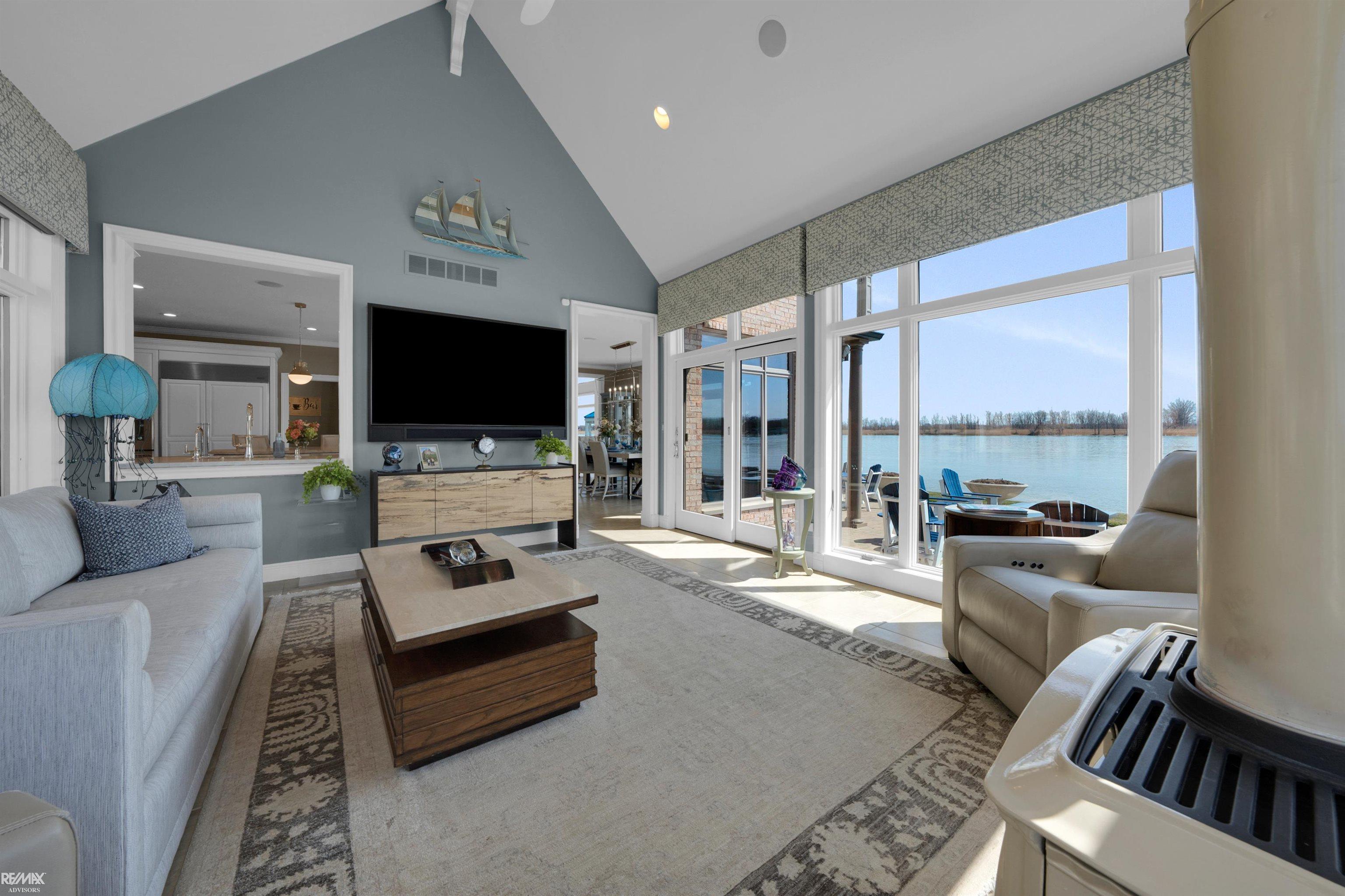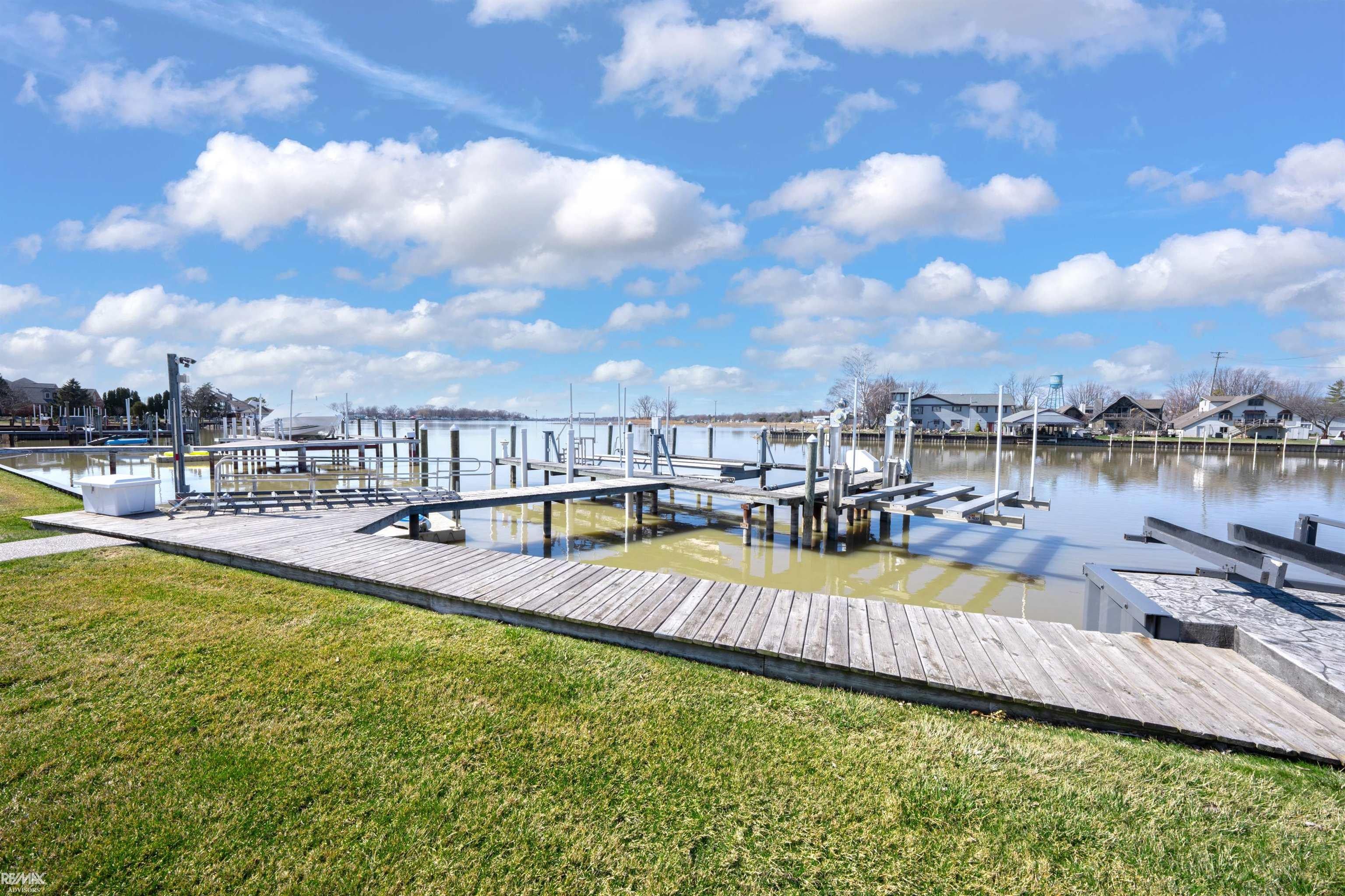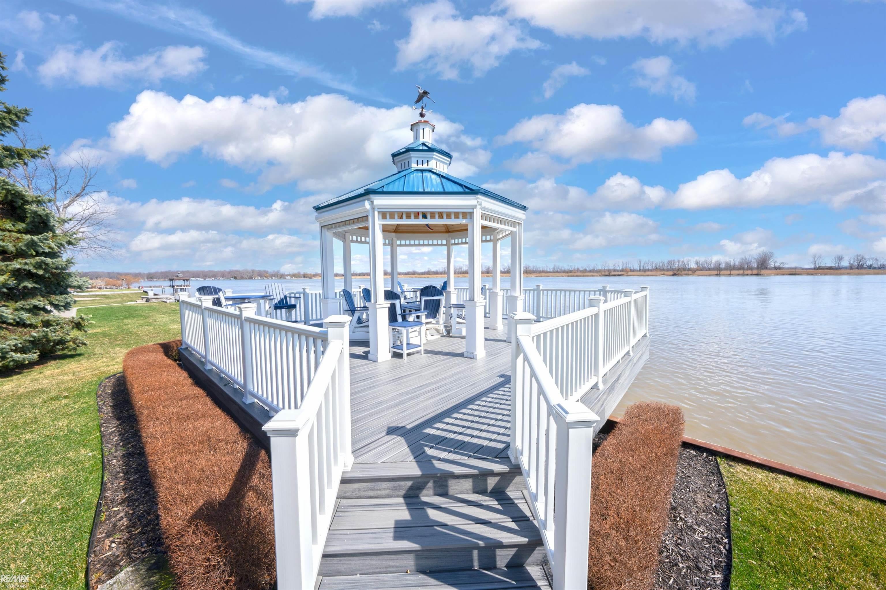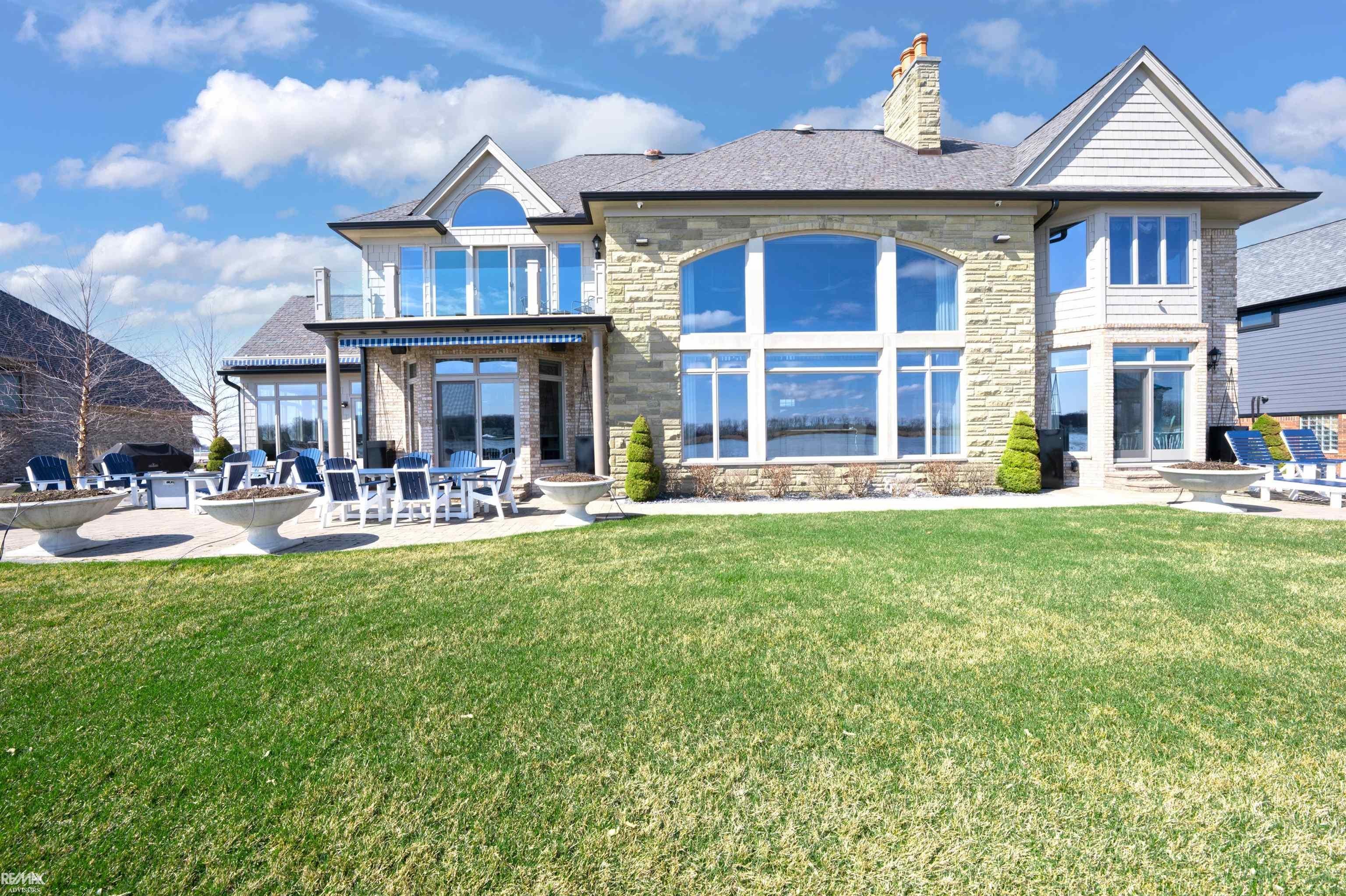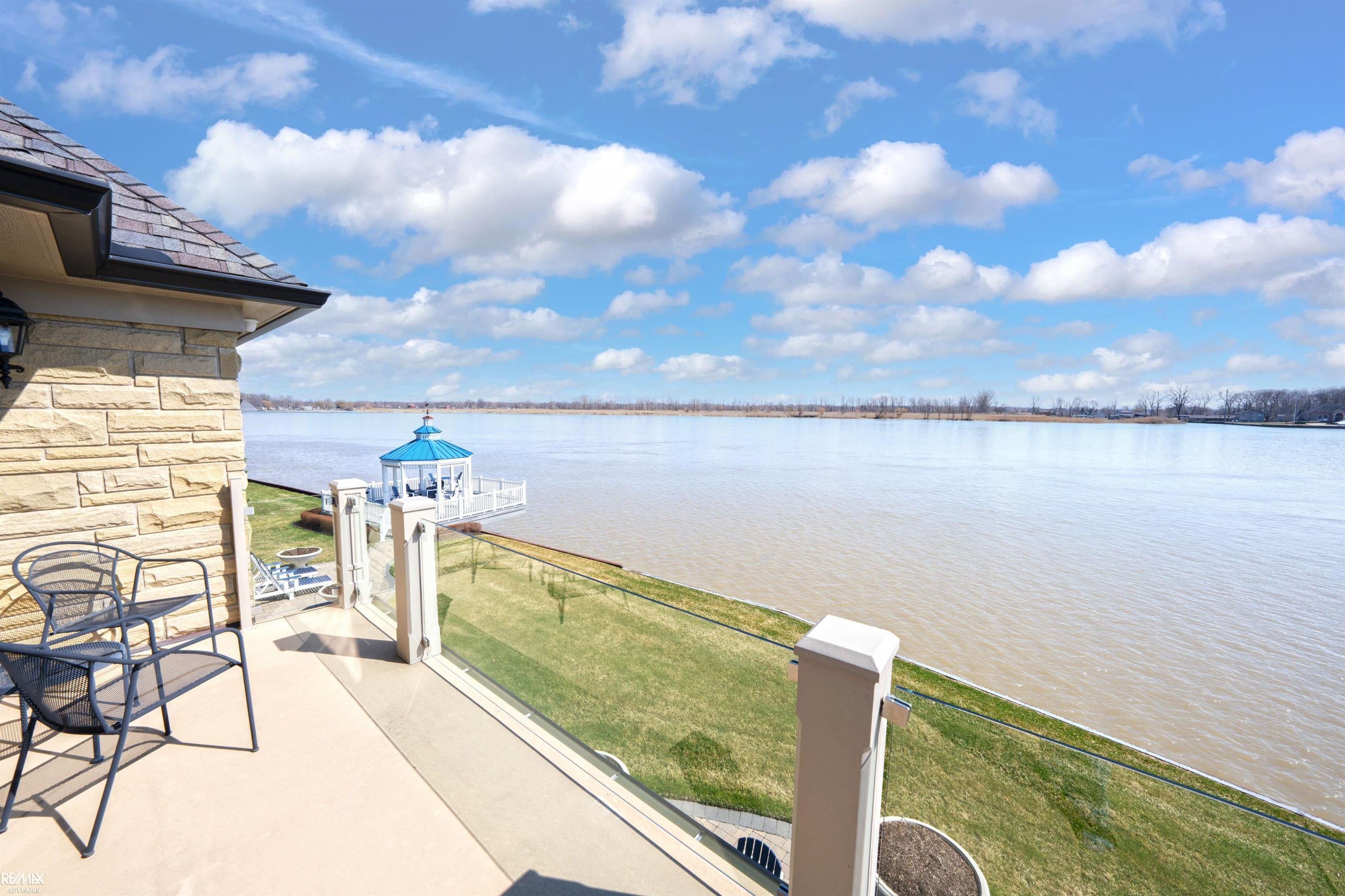 Welcome to an extraordinary waterfront peninsula estate on the North Channel of the St. Clair River in Algonac. Set on nearly an acre and surrounded by panoramic water on multiple sides, this rare property offers breathtaking sunrise and sunset views in every direction-creating a truly one-of-a-kind setting where water, sky, and light come together. This expansive, remodeled home offers approximately 6,700 sq ft of living space with 4 bedrooms and 4 bathrooms, designed for both everyday comfort and luxury entertaining. The open layout is complemented by large windows that capture stunning water views throughout the home. Outdoor living is unmatched, featuring a gazebo extending over the rivers edge-perfect for morning coffee or evening cocktails while enjoying passing boats, sailboats, and freighters along the channel. The property includes approximately 134 feet of North Channel/St. Clair River frontage plus an additional approximately 120 feet of protected harbor frontage, offering ideal conditions for boating enthusiasts. Boating features include steel seawalls on both the river and boat-well sides, multiple boat wells, and hoists accommodating vessels up to approximately 40 feet, along with a tri-toon hoist and additional well space. Whether for leisure or serious boating, this property is fully equipped. Additional highlights include a 4-car heated garage, extensive landscaping with custom architectural cement planters, and retractable awnings enhancing the outdoor patio space. Located in a desirable waterfront community, this property offers a rare combination of privacy, space, and access to open water, all within close proximity to local amenities, marinas, and dining. This is a unique opportunity to own one of the most distinctive waterfront properties on the North Channel. Some measurements and details are approximate and should be independently verified.