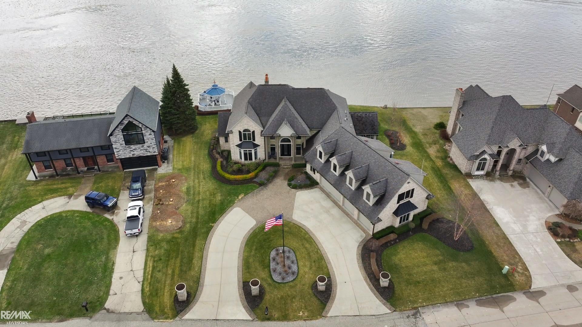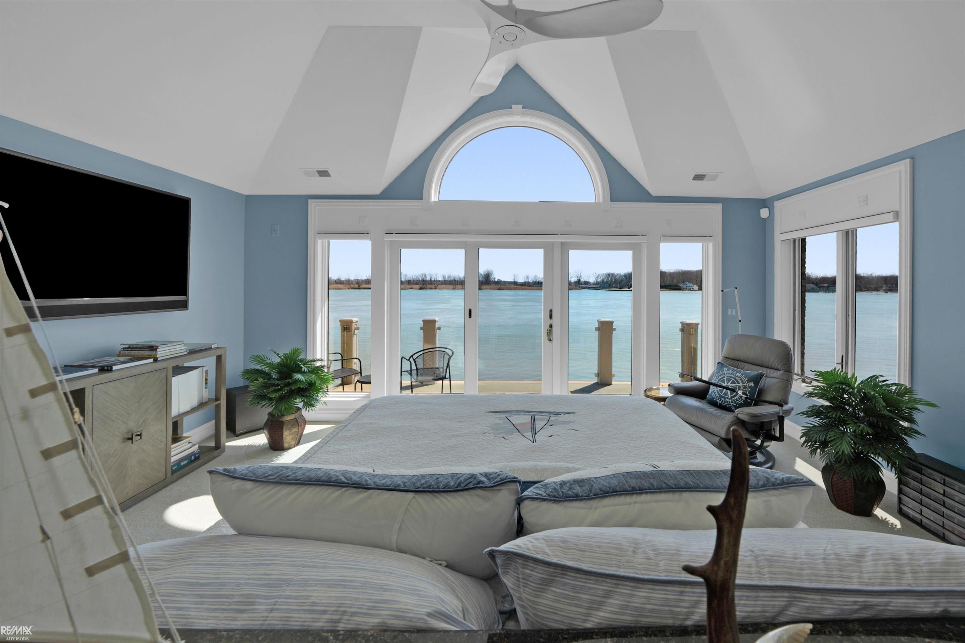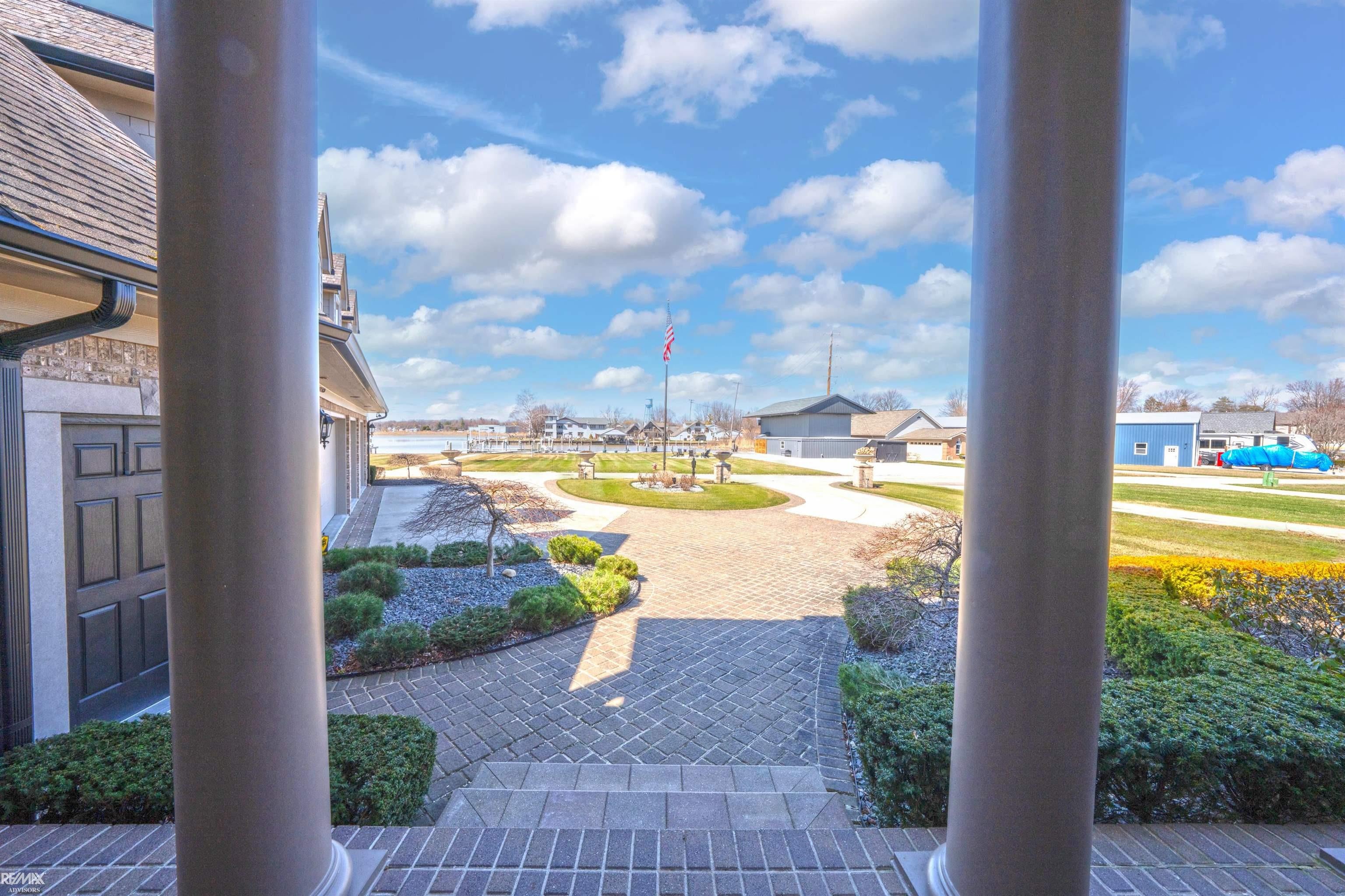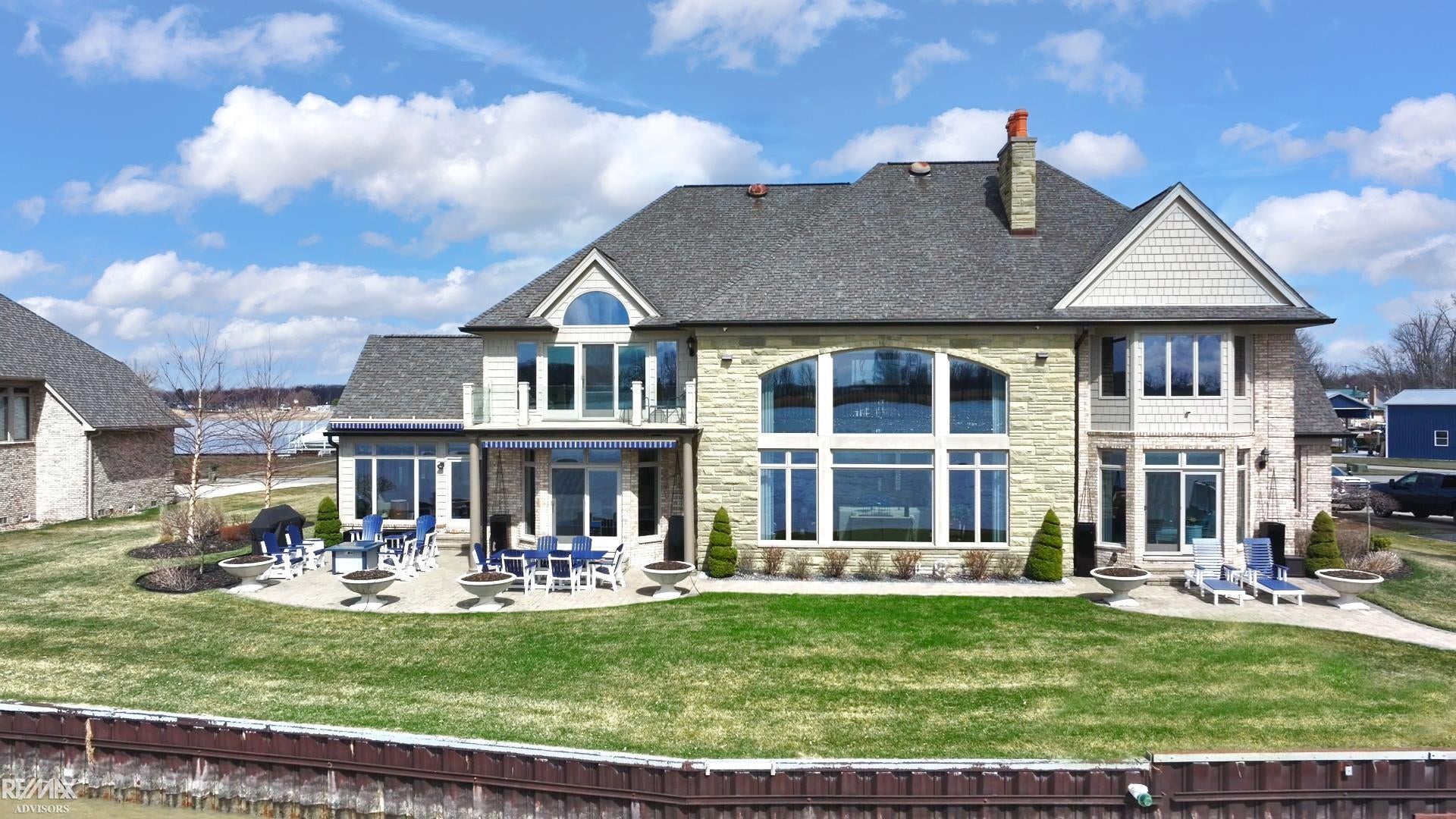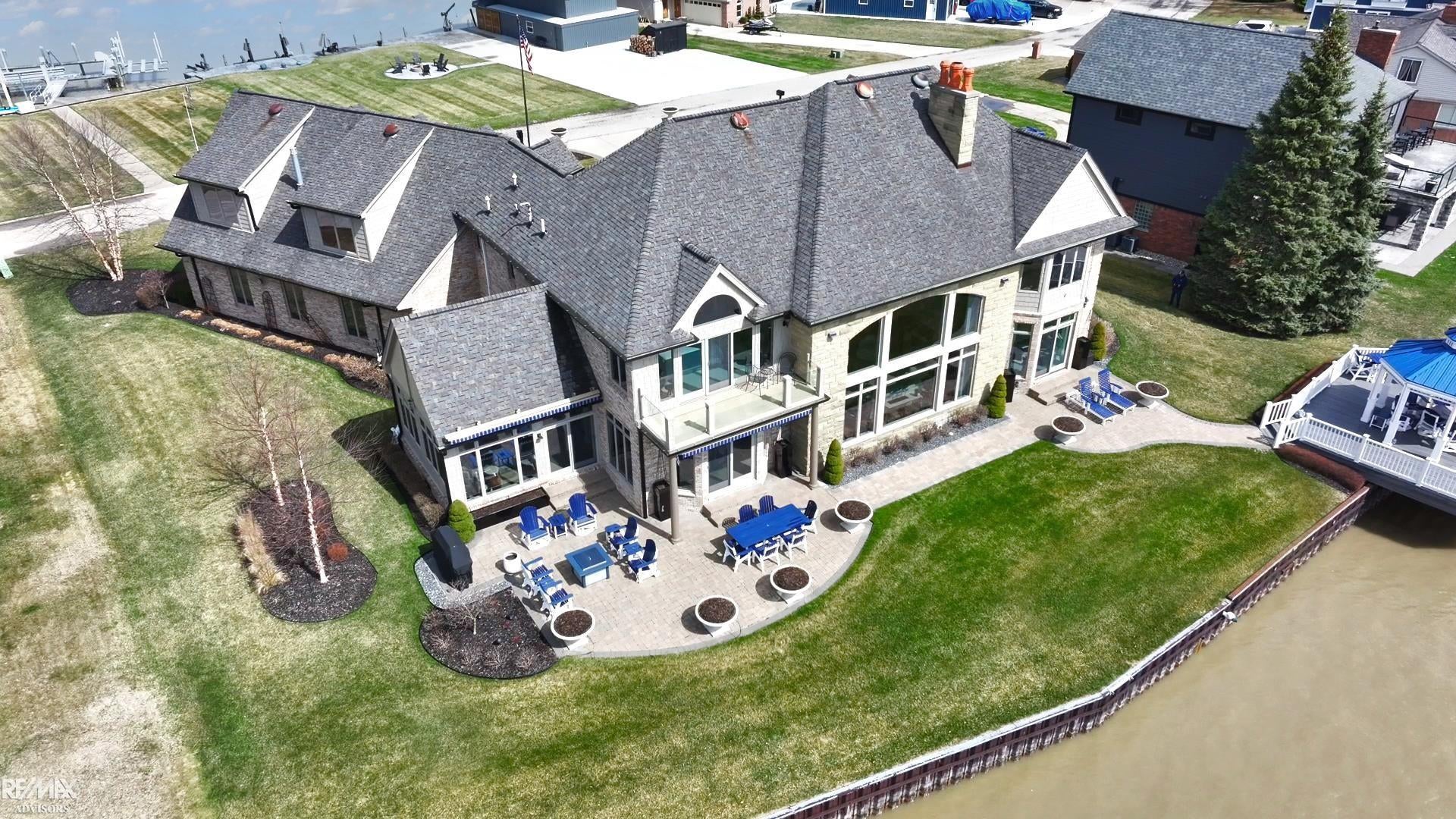 Welcome to an extraordinary waterfront peninsula estate on the North Channel of the St. Clair River in Algonac. Set on nearly an acre and surrounded by panoramic water on multiple sides, this rare property offers breathtaking sunrise and sunset views in every direction-creating a truly one-of-a-kind setting where water, sky, and light come together. This expansive, remodeled home offers approximately 6,700 sq ft of living space with 4 bedrooms and 4 bathrooms, designed for both everyday comfort and luxury entertaining. The open layout is complemented by large windows that capture stunning water views throughout the home. Outdoor living is unmatched, featuring a gazebo extending over the rivers edge-perfect for morning coffee or evening cocktails while enjoying passing boats, sailboats, and freighters along the channel. The property includes approximately 134 feet of North Channel/St. Clair River frontage plus an additional approximately 120 feet of protected harbor frontage, offering ideal conditions for boating enthusiasts. Boating features include steel seawalls on both the river and boat-well sides, multiple boat wells, and hoists accommodating vessels up to approximately 40 feet, along with a tri-toon hoist and additional well space. Whether for leisure or serious boating, this property is fully equipped. Additional highlights include a 4-car heated garage, extensive landscaping with custom architectural cement planters, and retractable awnings enhancing the outdoor patio space. Located in a desirable waterfront community, this property offers a rare combination of privacy, space, and access to open water, all within close proximity to local amenities, marinas, and dining. This is a unique opportunity to own one of the most distinctive waterfront properties on the North Channel. Some measurements and details are approximate and should be independently verified.