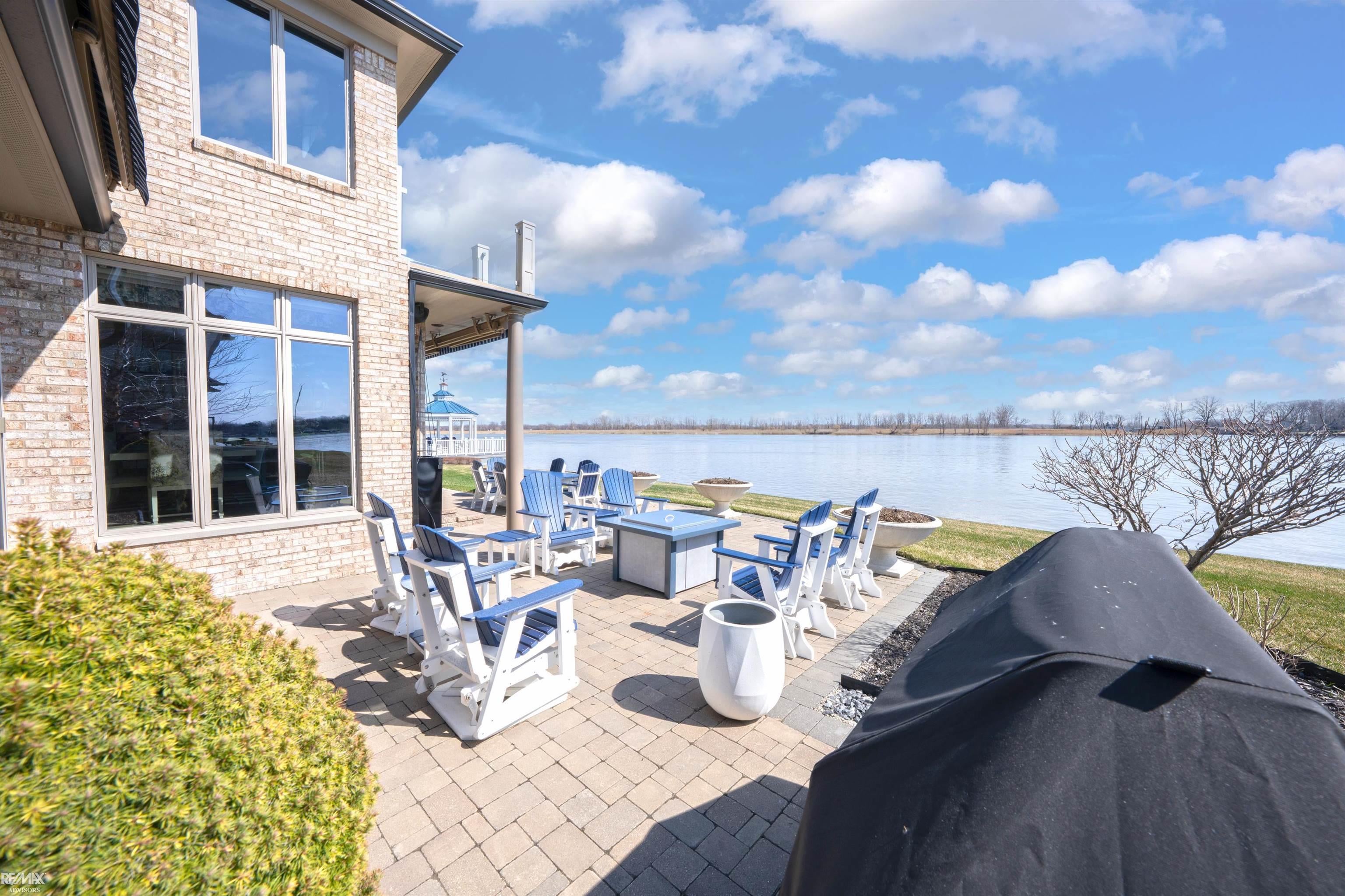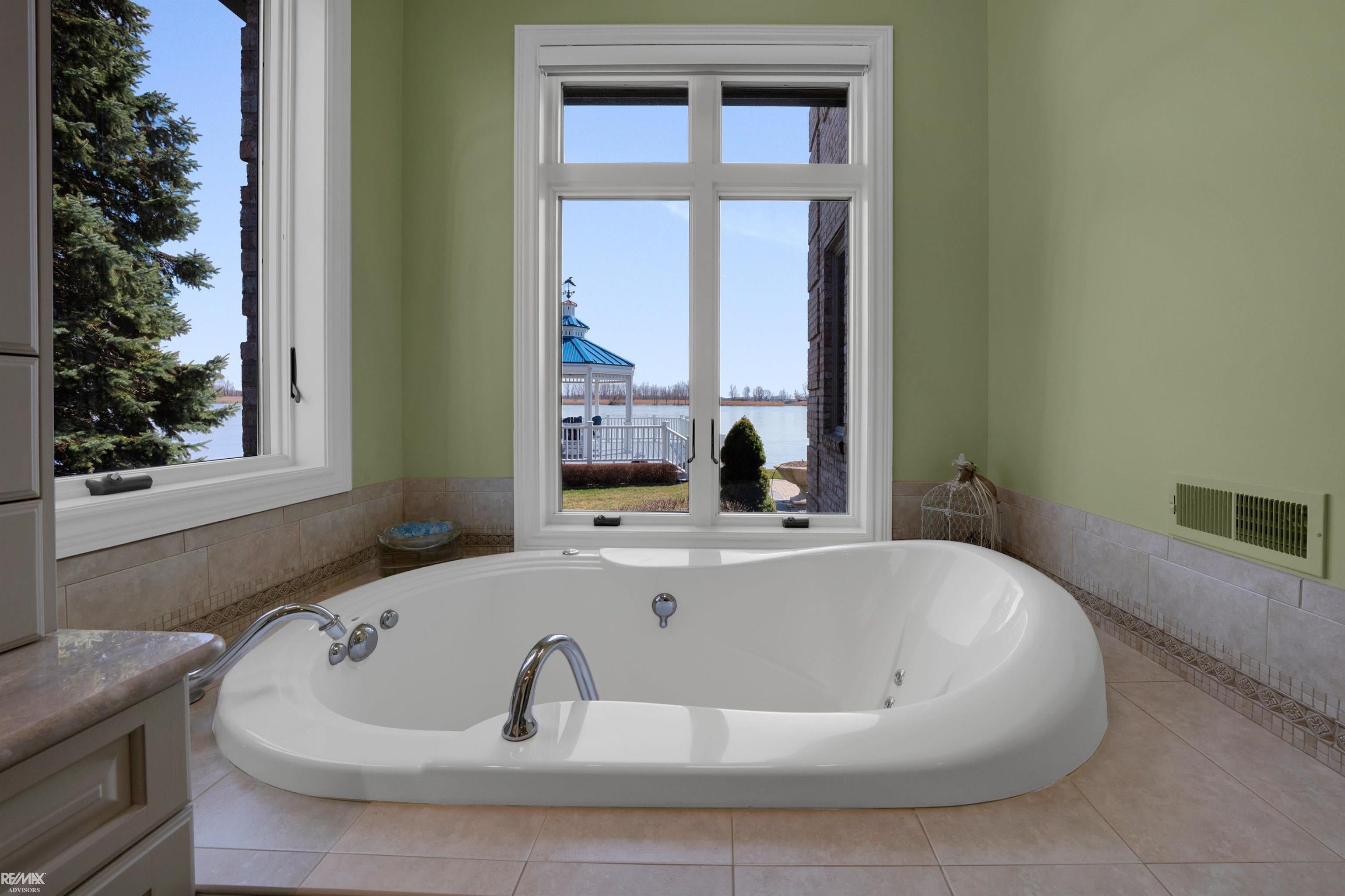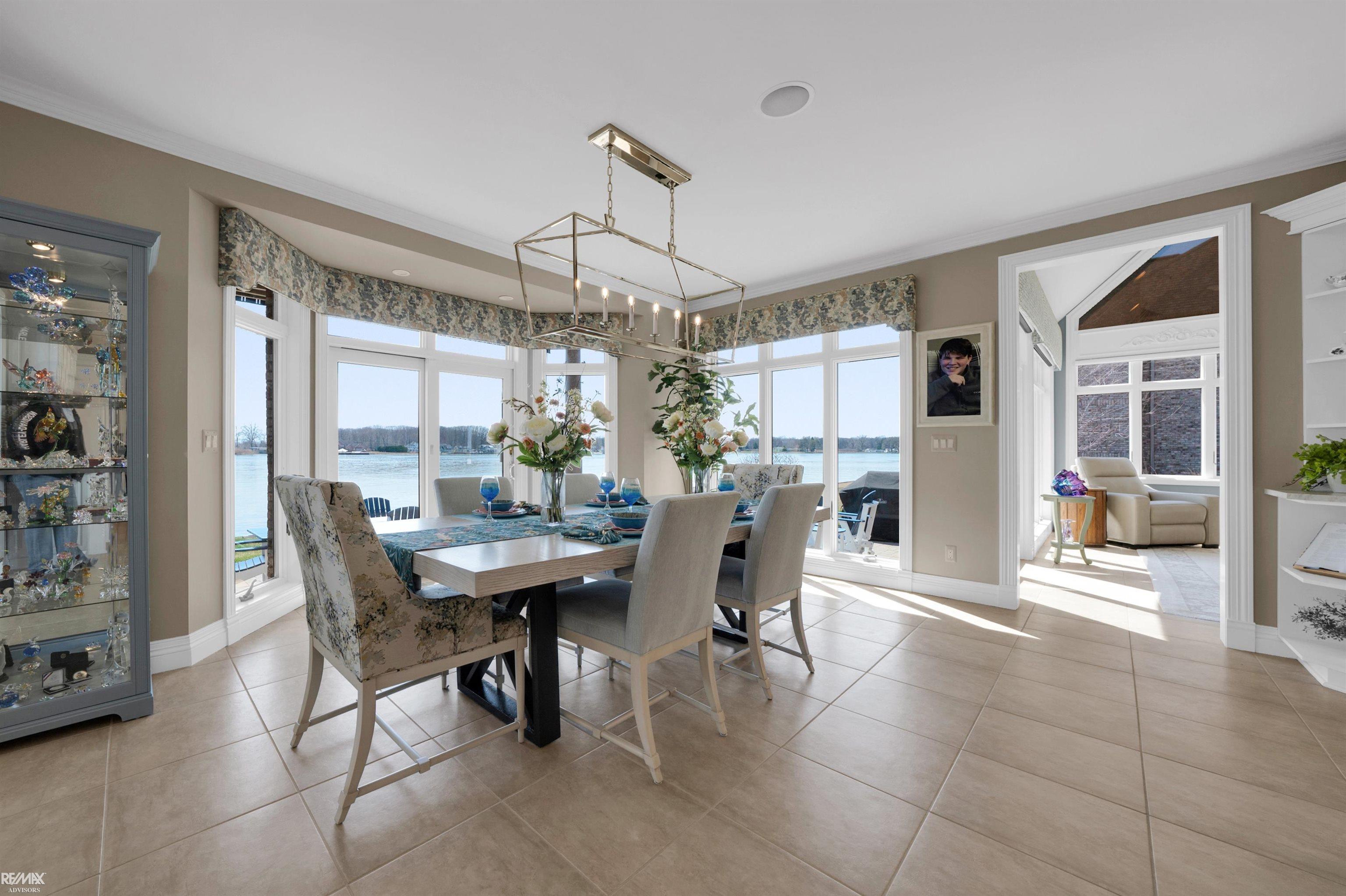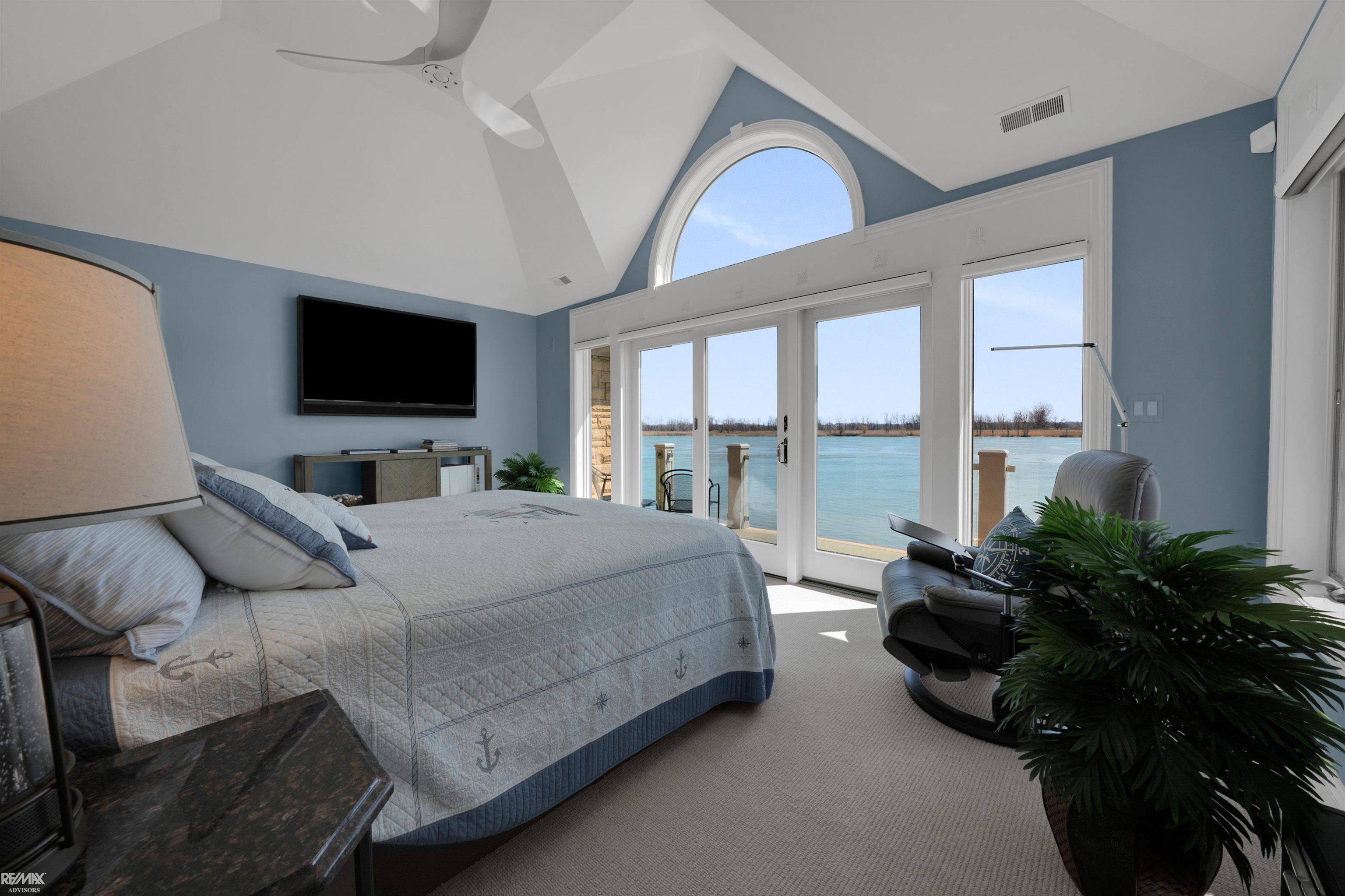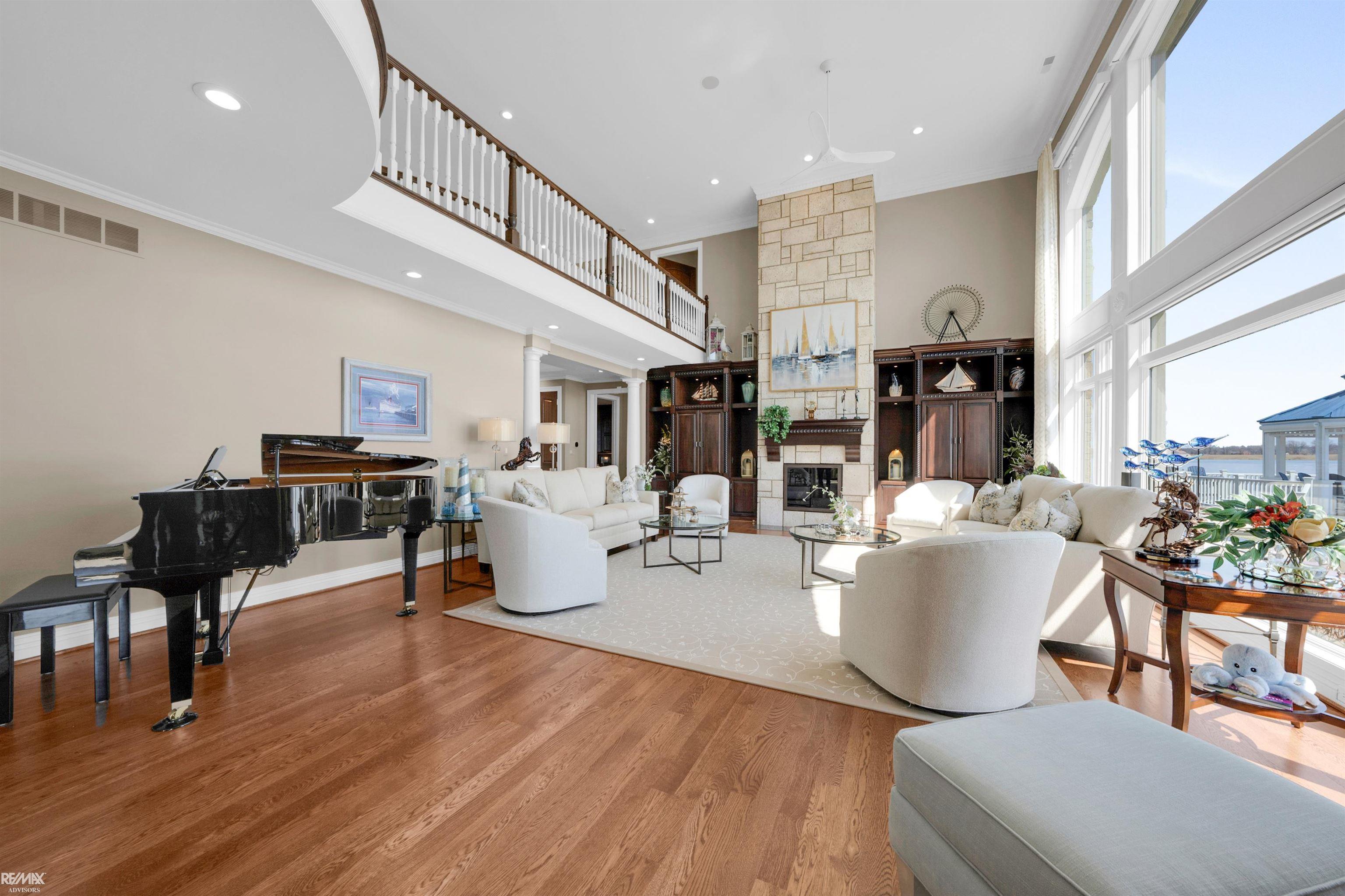 Welcome to an extraordinary waterfront peninsula estate on the North Channel of the St. Clair River in Algonac. Set on nearly an acre and surrounded by panoramic water on multiple sides, this rare property offers breathtaking sunrise and sunset views in every direction-creating a truly one-of-a-kind setting where water, sky, and light come together. This expansive, remodeled home offers approximately 6,700 sq ft of living space with 4 bedrooms and 4 bathrooms, designed for both everyday comfort and luxury entertaining. The open layout is complemented by large windows that capture stunning water views throughout the home. Outdoor living is unmatched, featuring a gazebo extending over the rivers edge-perfect for morning coffee or evening cocktails while enjoying passing boats, sailboats, and freighters along the channel. The property includes approximately 134 feet of North Channel/St. Clair River frontage plus an additional approximately 120 feet of protected harbor frontage, offering ideal conditions for boating enthusiasts. Boating features include steel seawalls on both the river and boat-well sides, multiple boat wells, and hoists accommodating vessels up to approximately 40 feet, along with a tri-toon hoist and additional well space. Whether for leisure or serious boating, this property is fully equipped. Additional highlights include a 4-car heated garage, extensive landscaping with custom architectural cement planters, and retractable awnings enhancing the outdoor patio space. Located in a desirable waterfront community, this property offers a rare combination of privacy, space, and access to open water, all within close proximity to local amenities, marinas, and dining. This is a unique opportunity to own one of the most distinctive waterfront properties on the North Channel. Some measurements and details are approximate and should be independently verified.