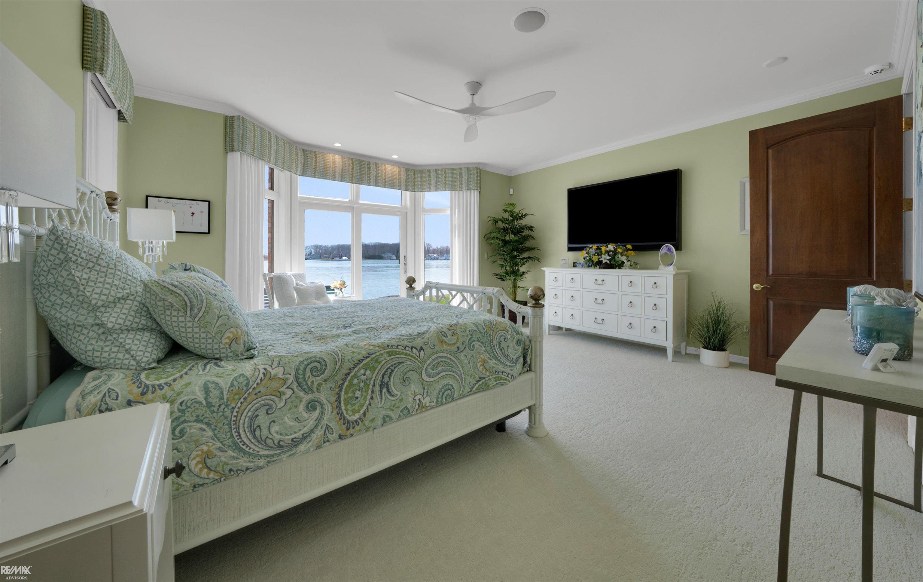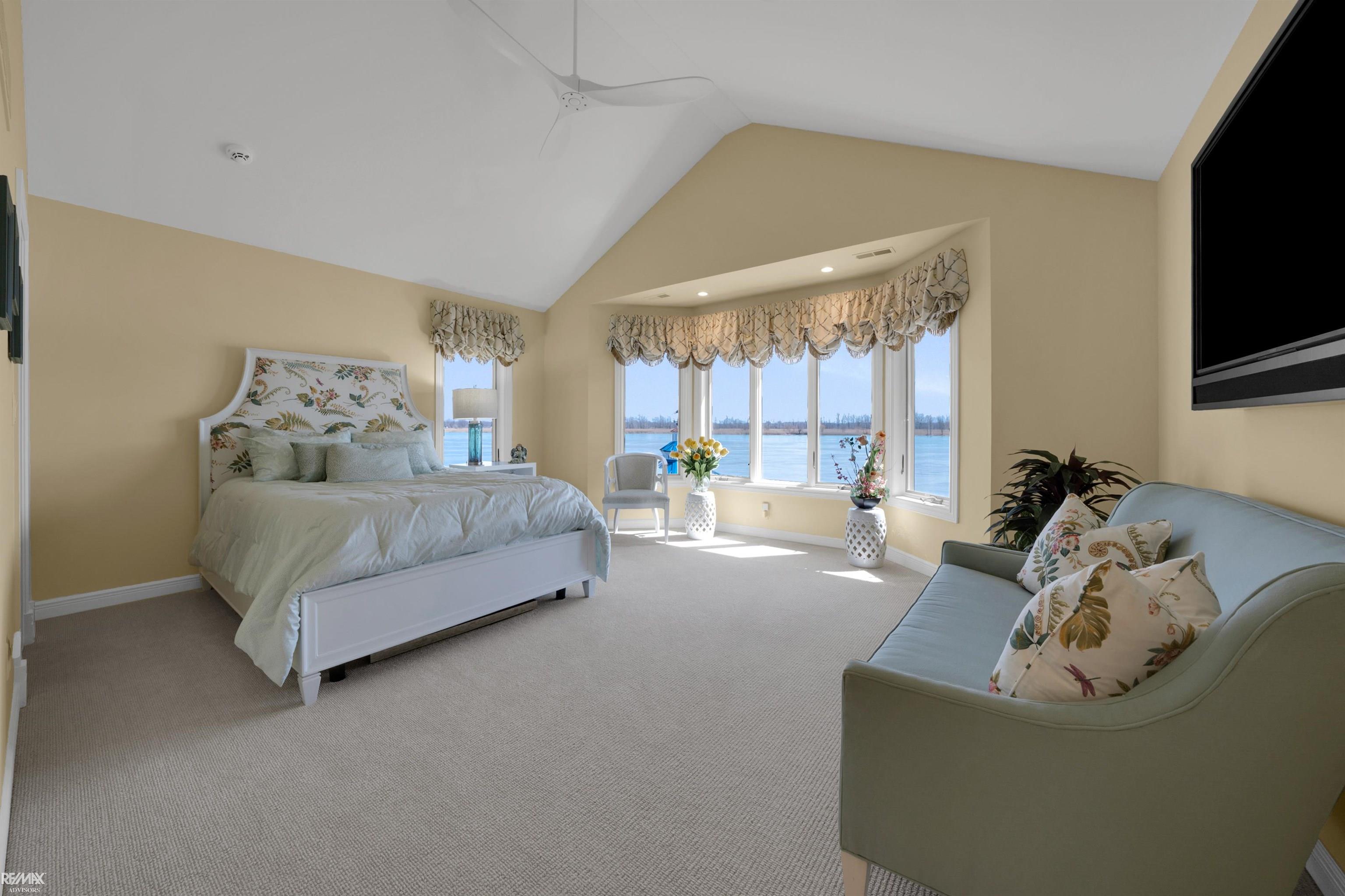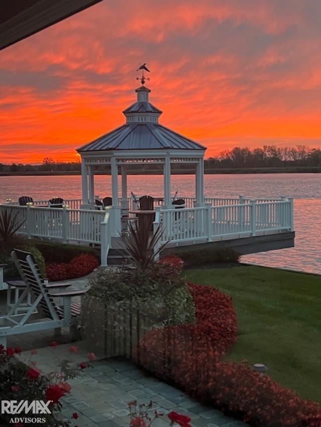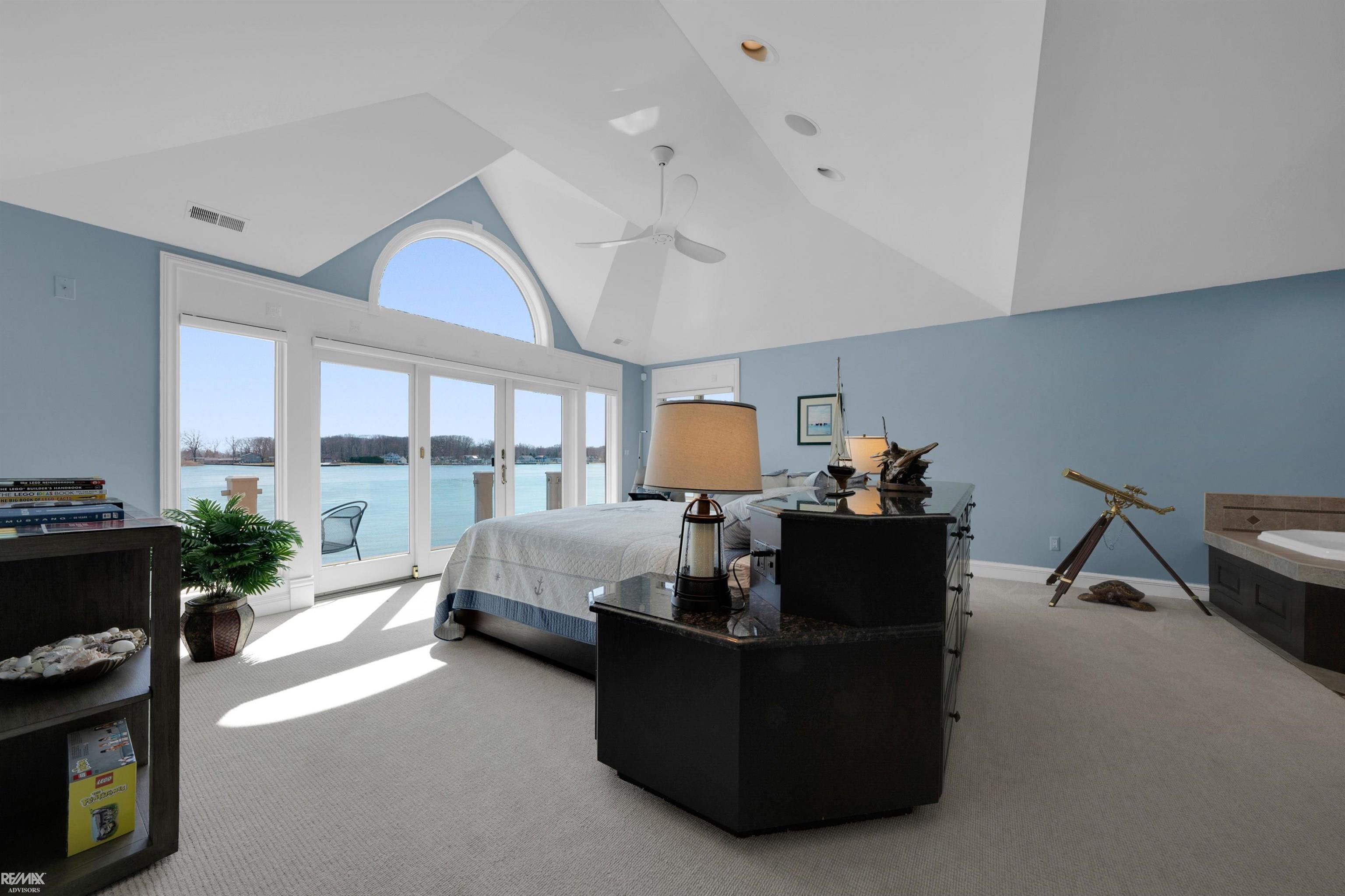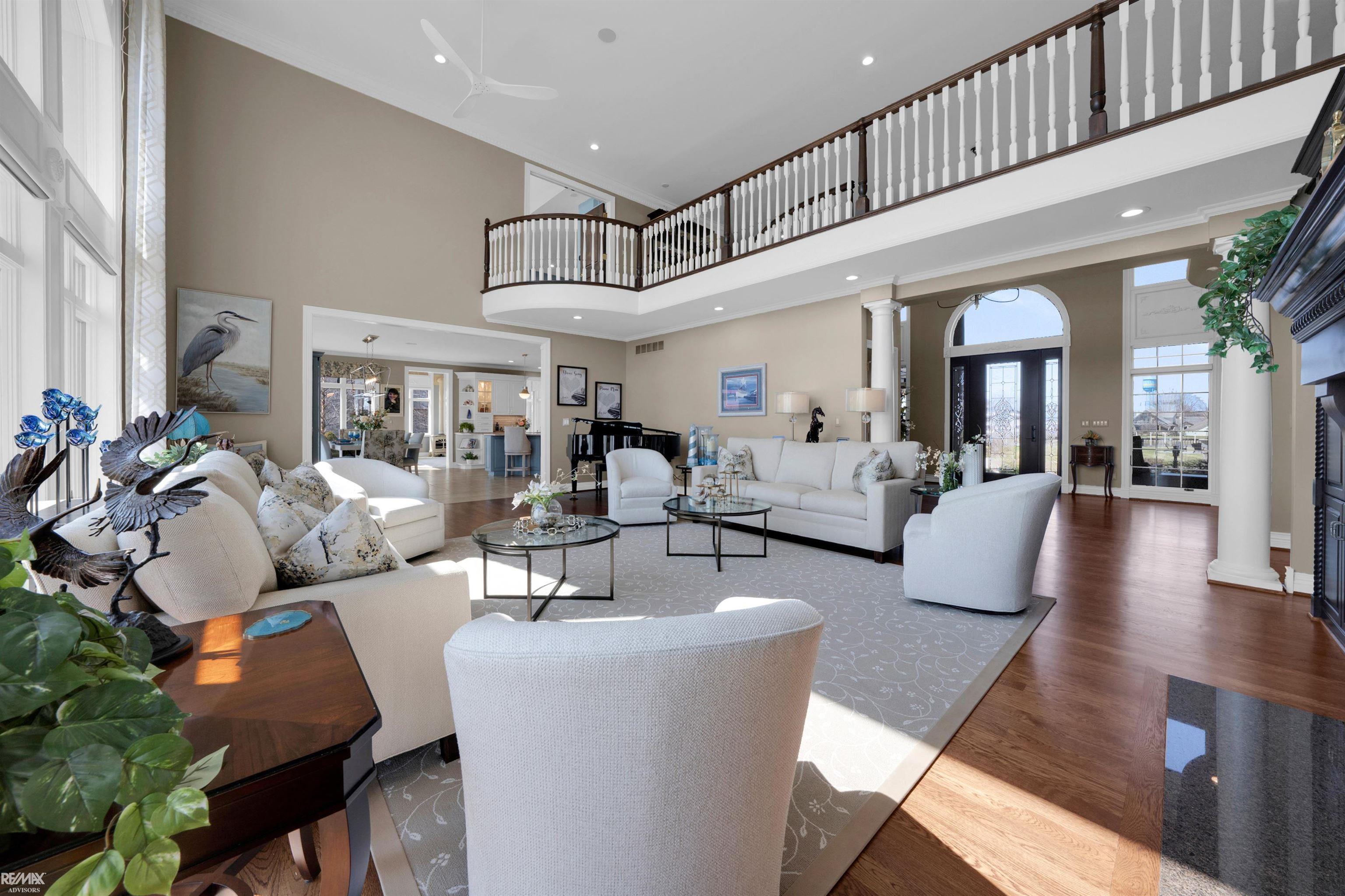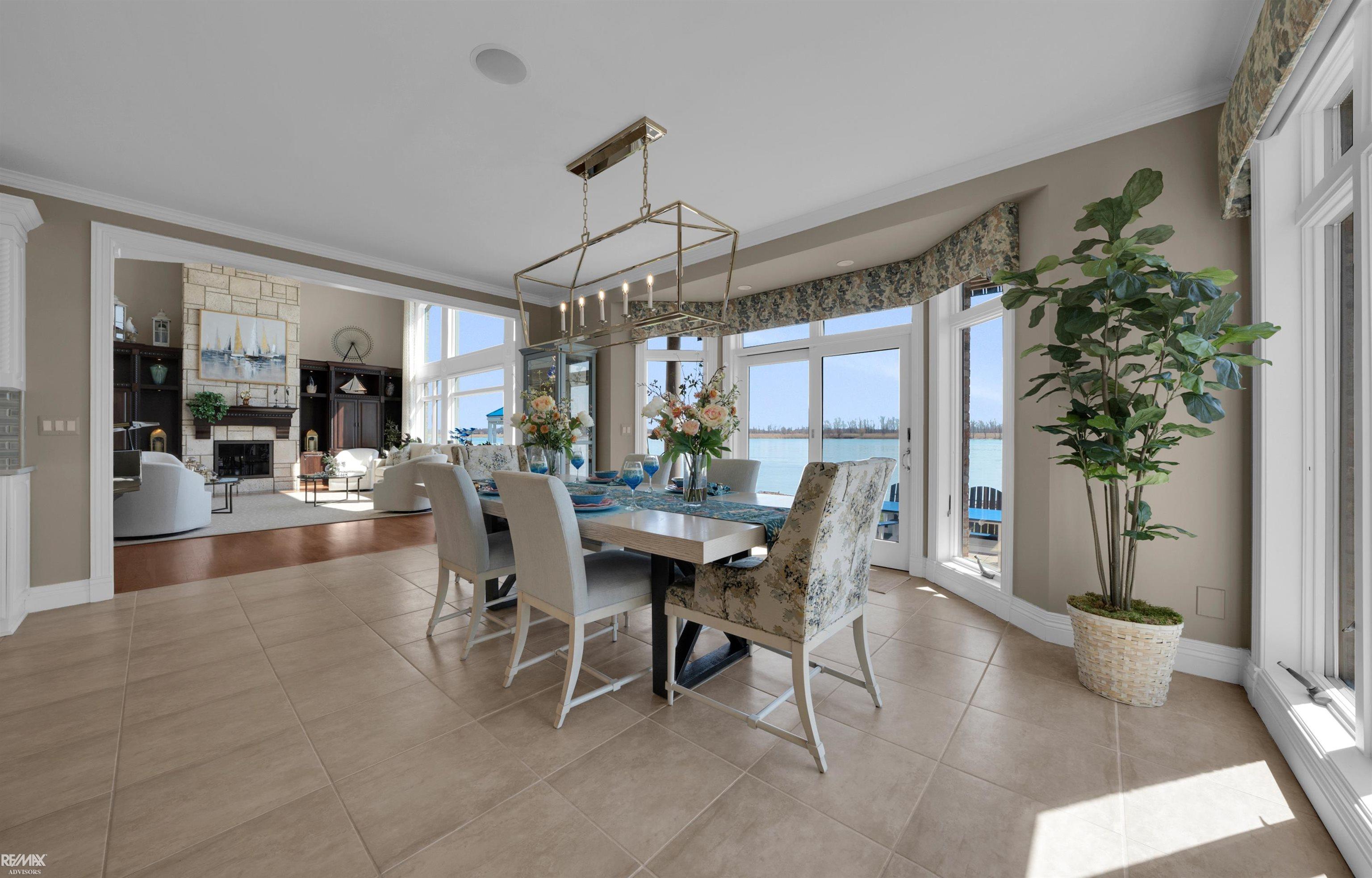 Welcome to an extraordinary waterfront peninsula estate on the North Channel of the St. Clair River in Algonac. Set on nearly an acre and surrounded by panoramic water on multiple sides, this rare property offers breathtaking sunrise and sunset views in every direction-creating a truly one-of-a-kind setting where water, sky, and light come together. This expansive, remodeled home offers approximately 6,700 sq ft of living space with 4 bedrooms and 4 bathrooms, designed for both everyday comfort and luxury entertaining. The open layout is complemented by large windows that capture stunning water views throughout the home. Outdoor living is unmatched, featuring a gazebo extending over the rivers edge-perfect for morning coffee or evening cocktails while enjoying passing boats, sailboats, and freighters along the channel. The property includes approximately 134 feet of North Channel/St. Clair River frontage plus an additional approximately 120 feet of protected harbor frontage, offering ideal conditions for boating enthusiasts. Boating features include steel seawalls on both the river and boat-well sides, multiple boat wells, and hoists accommodating vessels up to approximately 40 feet, along with a tri-toon hoist and additional well space. Whether for leisure or serious boating, this property is fully equipped. Additional highlights include a 4-car heated garage, extensive landscaping with custom architectural cement planters, and retractable awnings enhancing the outdoor patio space. Located in a desirable waterfront community, this property offers a rare combination of privacy, space, and access to open water, all within close proximity to local amenities, marinas, and dining. This is a unique opportunity to own one of the most distinctive waterfront properties on the North Channel. Some measurements and details are approximate and should be independently verified.