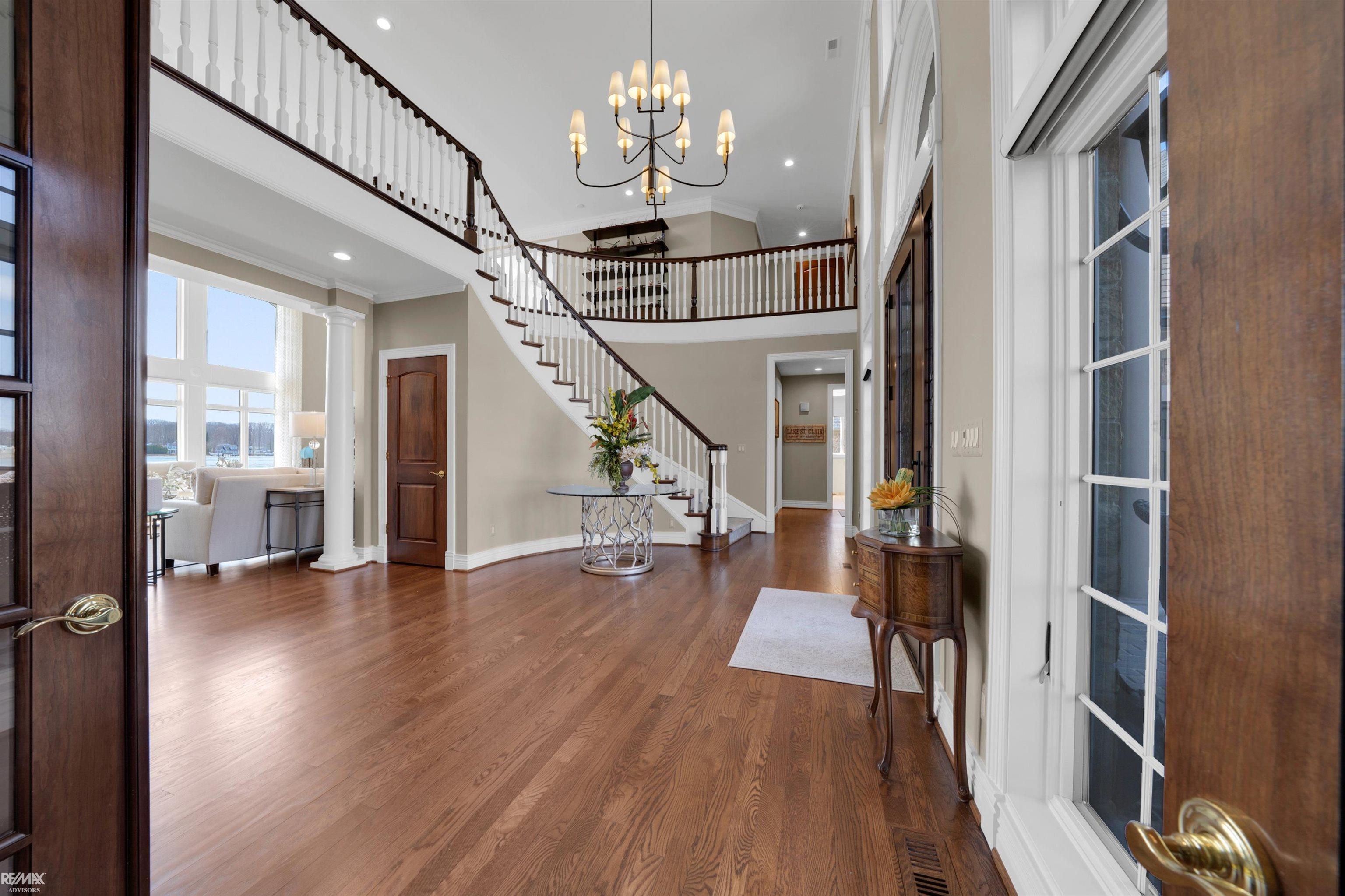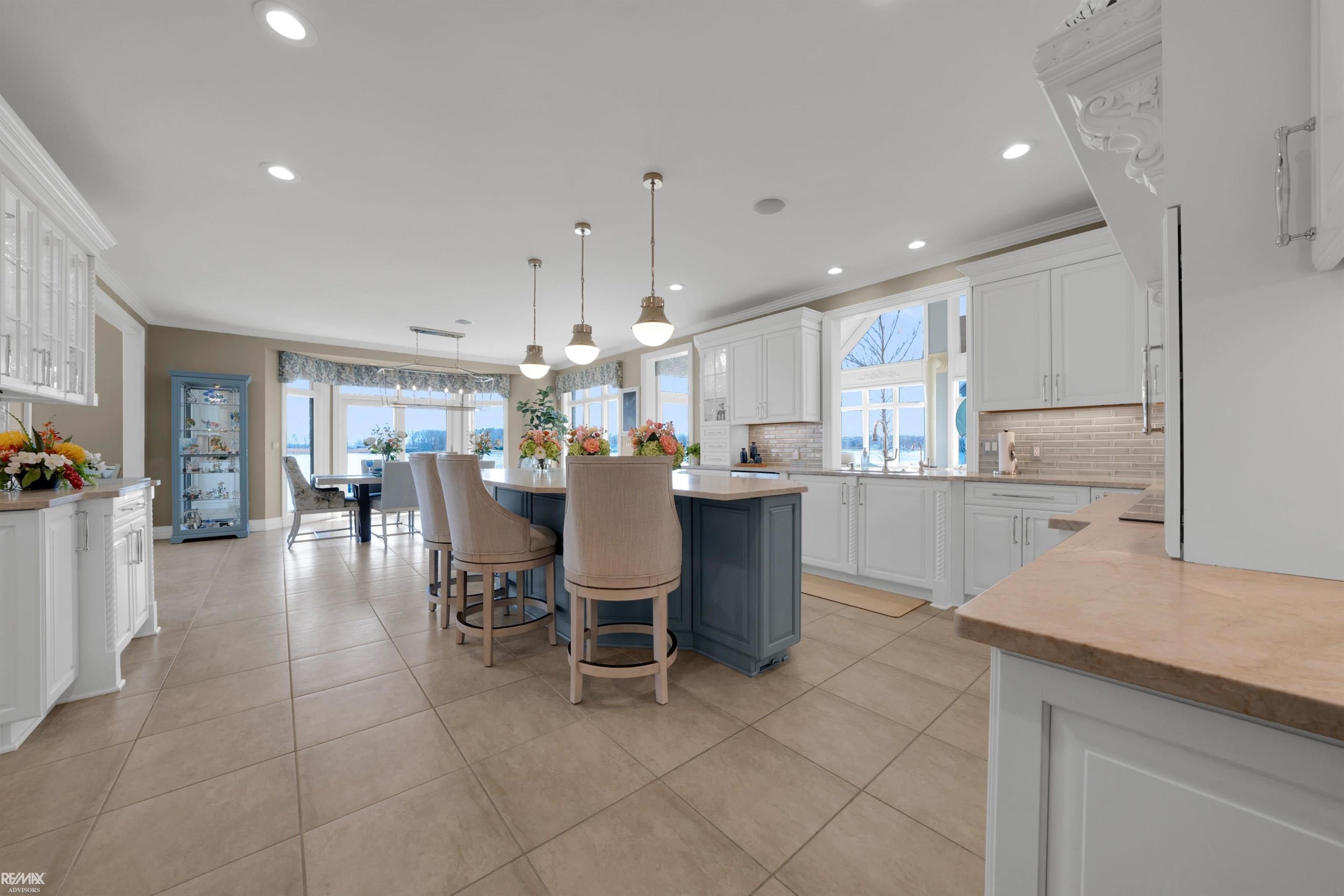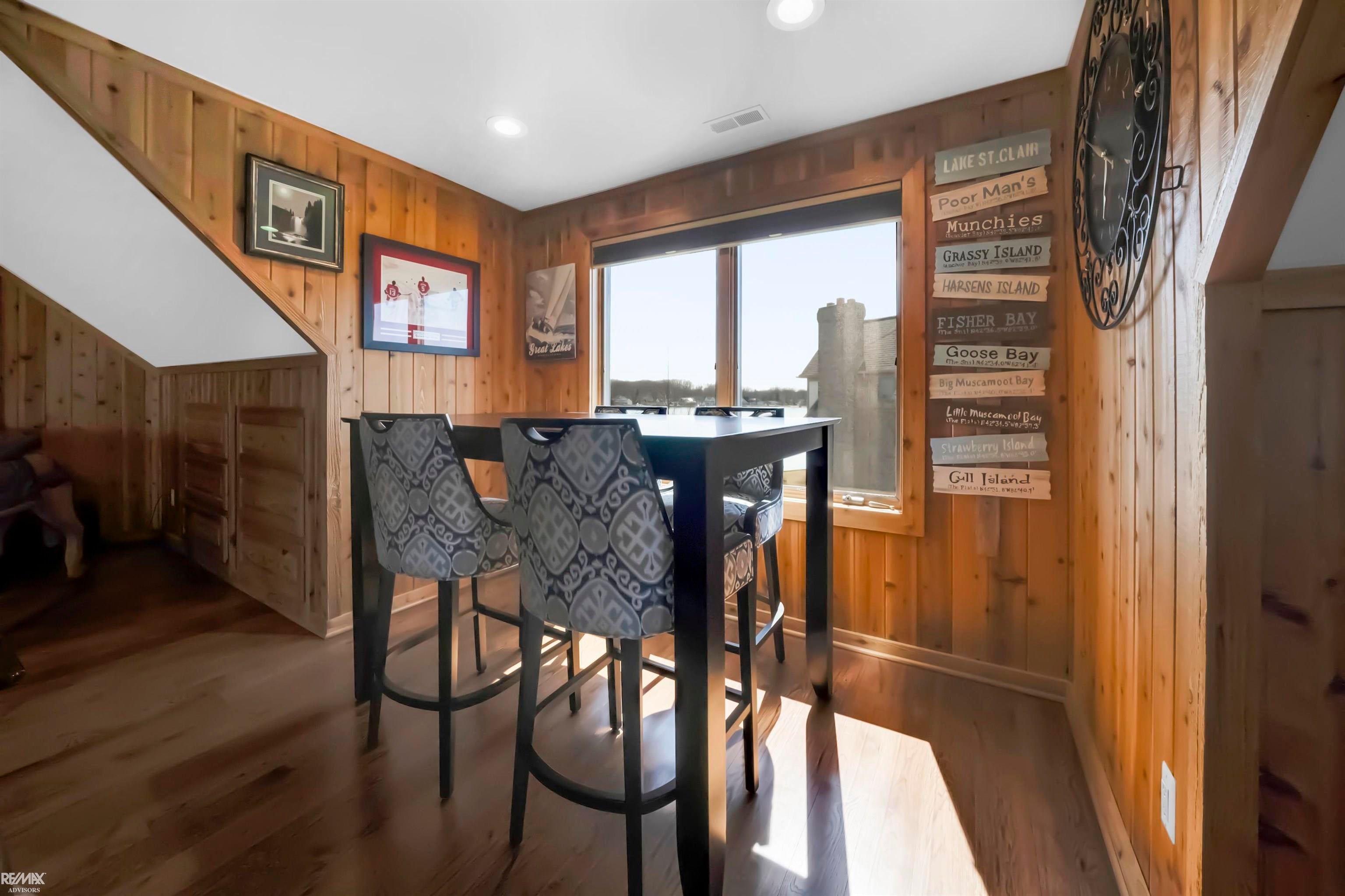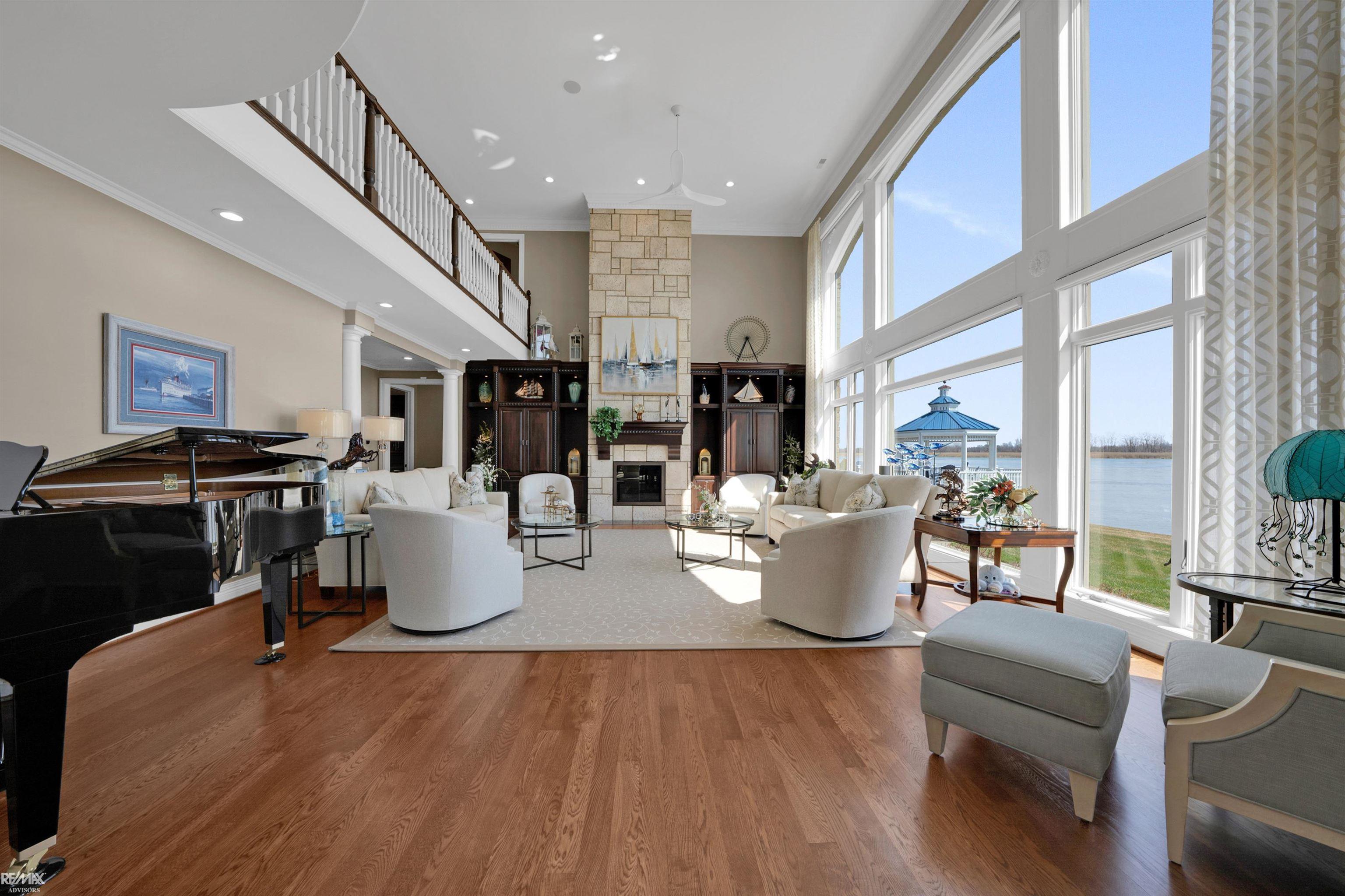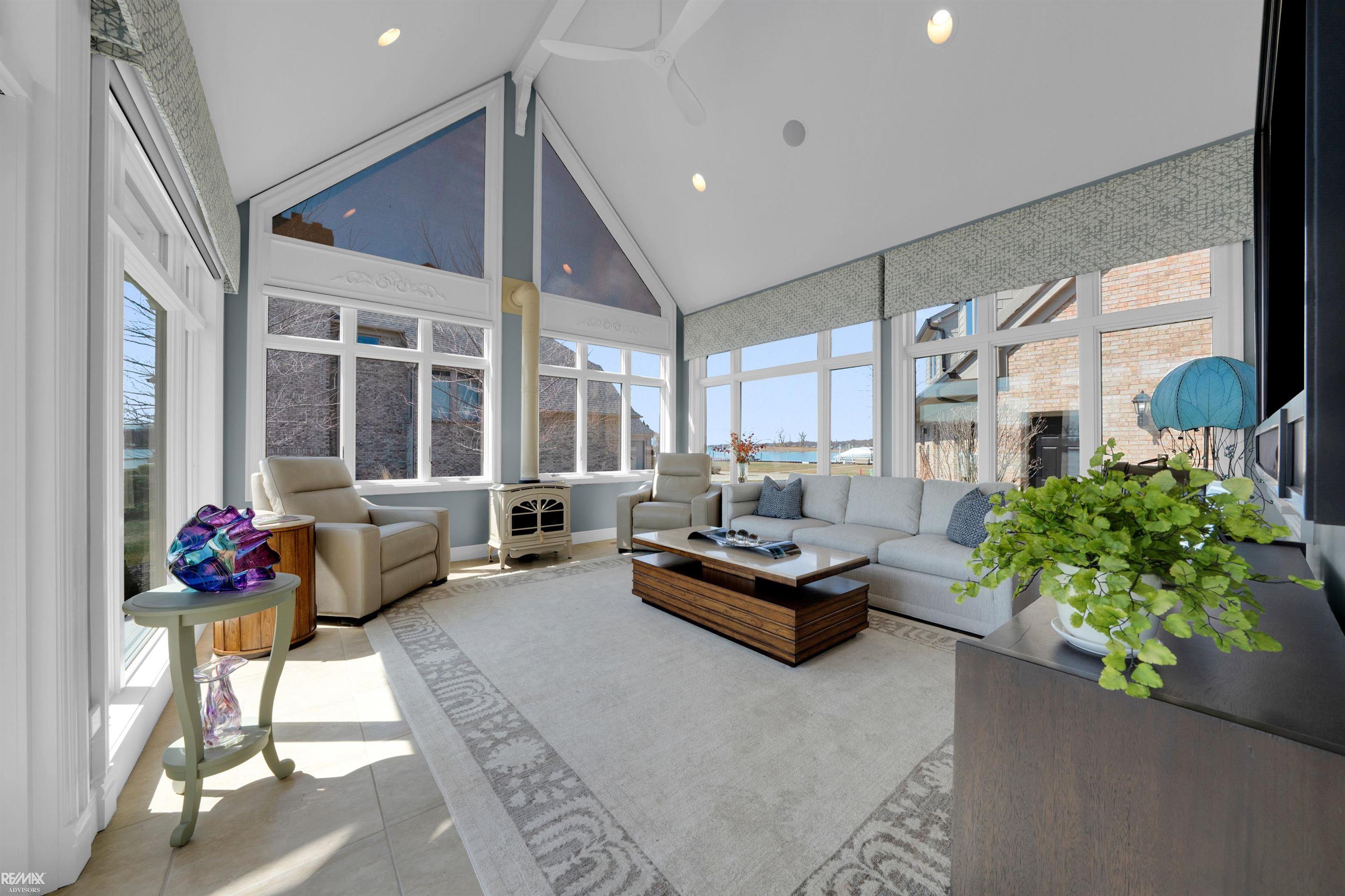 Welcome to an extraordinary waterfront peninsula estate on the North Channel of the St. Clair River in Algonac. Set on nearly an acre and surrounded by panoramic water on multiple sides, this rare property offers breathtaking sunrise and sunset views in every direction-creating a truly one-of-a-kind setting where water, sky, and light come together. This expansive, remodeled home offers approximately 6,700 sq ft of living space with 4 bedrooms and 4 bathrooms, designed for both everyday comfort and luxury entertaining. The open layout is complemented by large windows that capture stunning water views throughout the home. Outdoor living is unmatched, featuring a gazebo extending over the rivers edge-perfect for morning coffee or evening cocktails while enjoying passing boats, sailboats, and freighters along the channel. The property includes approximately 134 feet of North Channel/St. Clair River frontage plus an additional approximately 120 feet of protected harbor frontage, offering ideal conditions for boating enthusiasts. Boating features include steel seawalls on both the river and boat-well sides, multiple boat wells, and hoists accommodating vessels up to approximately 40 feet, along with a tri-toon hoist and additional well space. Whether for leisure or serious boating, this property is fully equipped. Additional highlights include a 4-car heated garage, extensive landscaping with custom architectural cement planters, and retractable awnings enhancing the outdoor patio space. Located in a desirable waterfront community, this property offers a rare combination of privacy, space, and access to open water, all within close proximity to local amenities, marinas, and dining. This is a unique opportunity to own one of the most distinctive waterfront properties on the North Channel. Some measurements and details are approximate and should be independently verified.