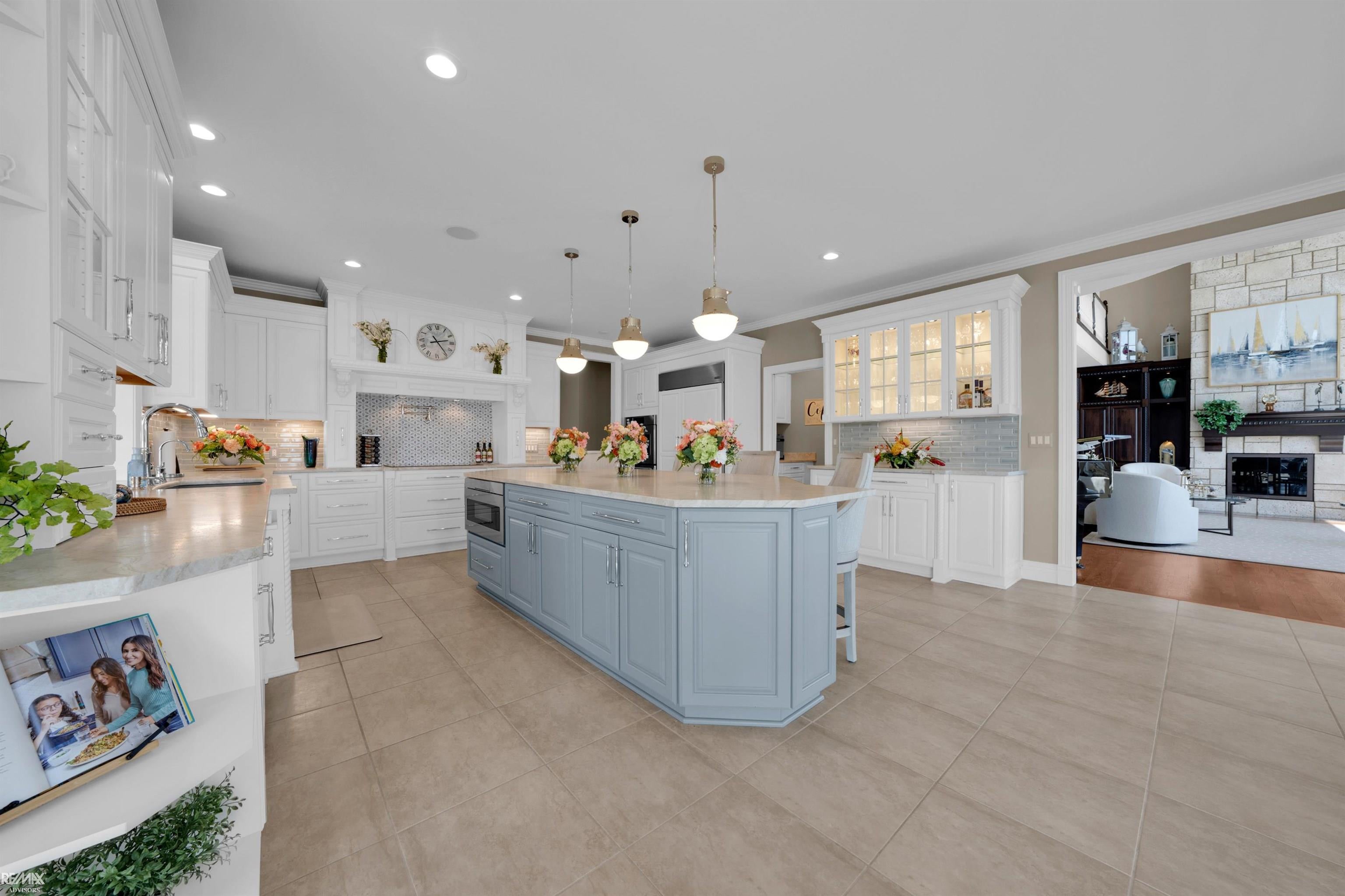 TIMELESS ELEGANCE MEETS MODERN LUXURY WITH DESIGNER FINISHES AT EVERY TURN IN THIS EXCEPTIONAL 5 BEDROOM, 4.1 BATH RESIDENCE THAT COMMANDS YOUR ATTENTION FROM THE VERY FIRST GLANCE! From the moment you arrive, the inviting front porch and striking curb appeal set the tone for whats inside, timeless style blended with modern comfort and thoughtful design at every turn. Inside, rich hardwood flooring flows across most of the main and second levels, creating warmth and continuity throughout. The sun-drenched living room welcomes you in, offering a bright and inviting space for both everyday living and gathering with friends. The formal dining room is perfectly positioned for hosting holidays and dinner parties, with effortless access to the gourmet kitchen and butlers pantry. At the heart of the home, the chefs kitchen is designed to impress and perform. A stunning display of 42 white cabinetry with crowned uppers, soft-close drawers, and under-cabinet lighting pairs beautifully with sleek Quartz countertops and a stylish tile backsplash. The oversized island with breakfast bar seating and prep sink becomes the natural gathering spot, perfect for casual mornings, holiday prep, or entertaining. High-end stainless steel appliances include a Thermador Professional 6-burner cooktop with griddle, a KitchenAid double oven, a KitchenAid dishwasher, a KitchenAid refrigerator, and a GE microwave. The sunny breakfast area with sliding doors opens to the fully fenced backyard, creating an easy indoor-outdoor flow for summer nights and weekend gatherings. The kitchen connects seamlessly to the spacious family room, where coffered ceilings and a cozy gas fireplace create a warm, inviting atmosphere that keeps everyone together. A main-level office offers flexibility for working from home or can easily function as a bedroom. A first-floor half bath and a well-designed mudroom with built-in cubbies add everyday convenience. Upstairs, the expansive primary suite feels like a private retreat, featuring a soaring cathedral ceiling, a relaxing sitting area, a large walk-in closet, and a spa-inspired ensuite bath with an extended dual-sink vanity, soaking tub, and separate shower with full body sprayer. Three additional generously sized bedrooms provide ample closet space, while a Jack and Jill bath and an additional full bath with dual sinks ensure comfort and and a space for everyone to call their own. The large second-floor laundry room offers abundant storage and counter space, making daily routines effortless. The finished basement extends your living space with a large recreation room complete with a wet bar, dishwasher, and beverage fridge, perfect for entertaining or relaxing. A fourth full bath and an additional bedroom create the ideal setup for guests, a home gym, second office, or flexible living space to fit your needs. Outside, picture evenings on the brick paver patio overlooking the fenced, tree-lined backyard, your own private setting for outdoor dining, play, or unwinding at the end of the day. A 3-car attached garage with service door provides added convenience and storage, while the whole-house generator offers peace of mind year-round. Ideally located near Route 53, this home offers easy access to parks, shopping, dining, and top-rated schools. This is a must-see!