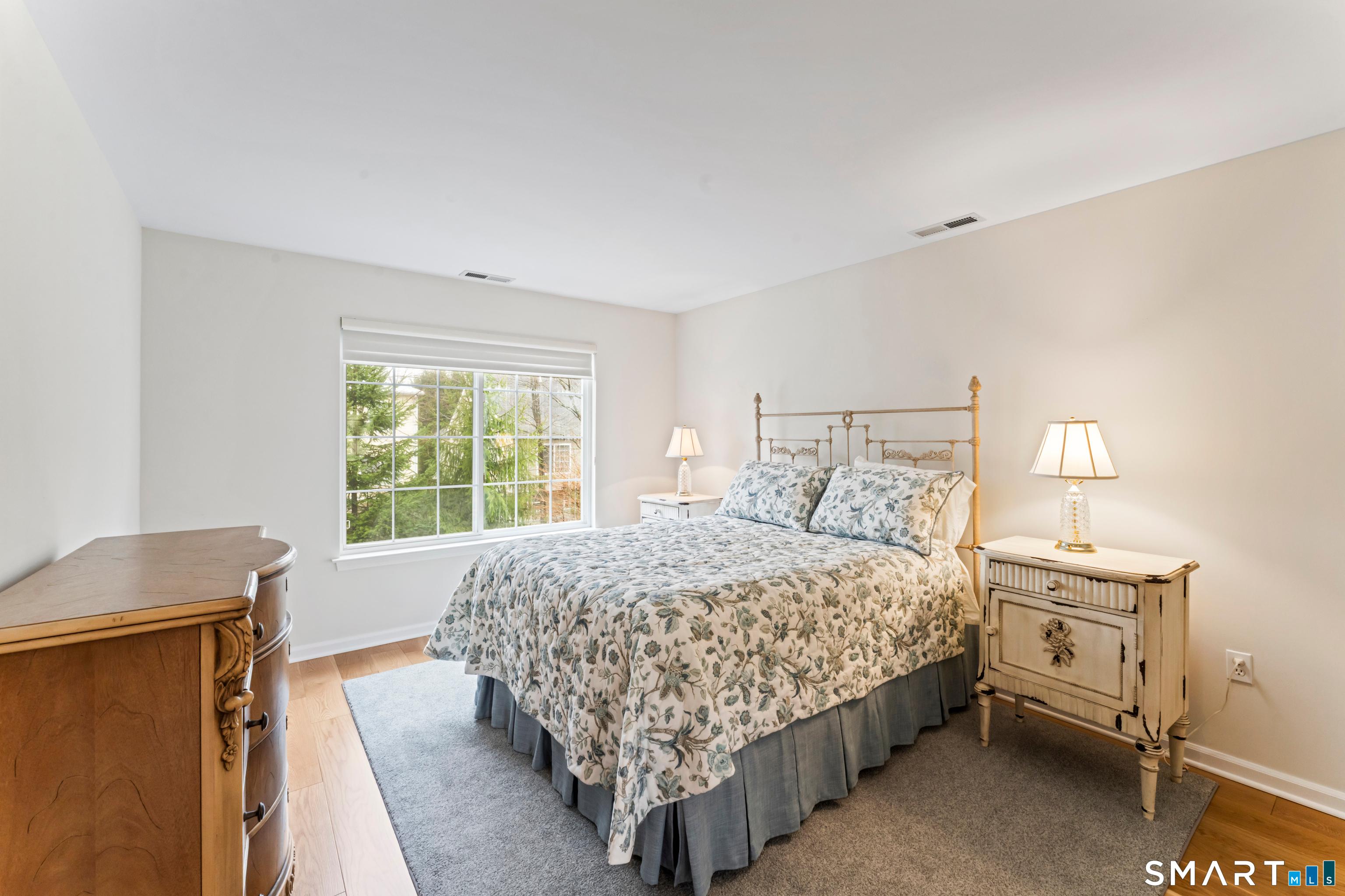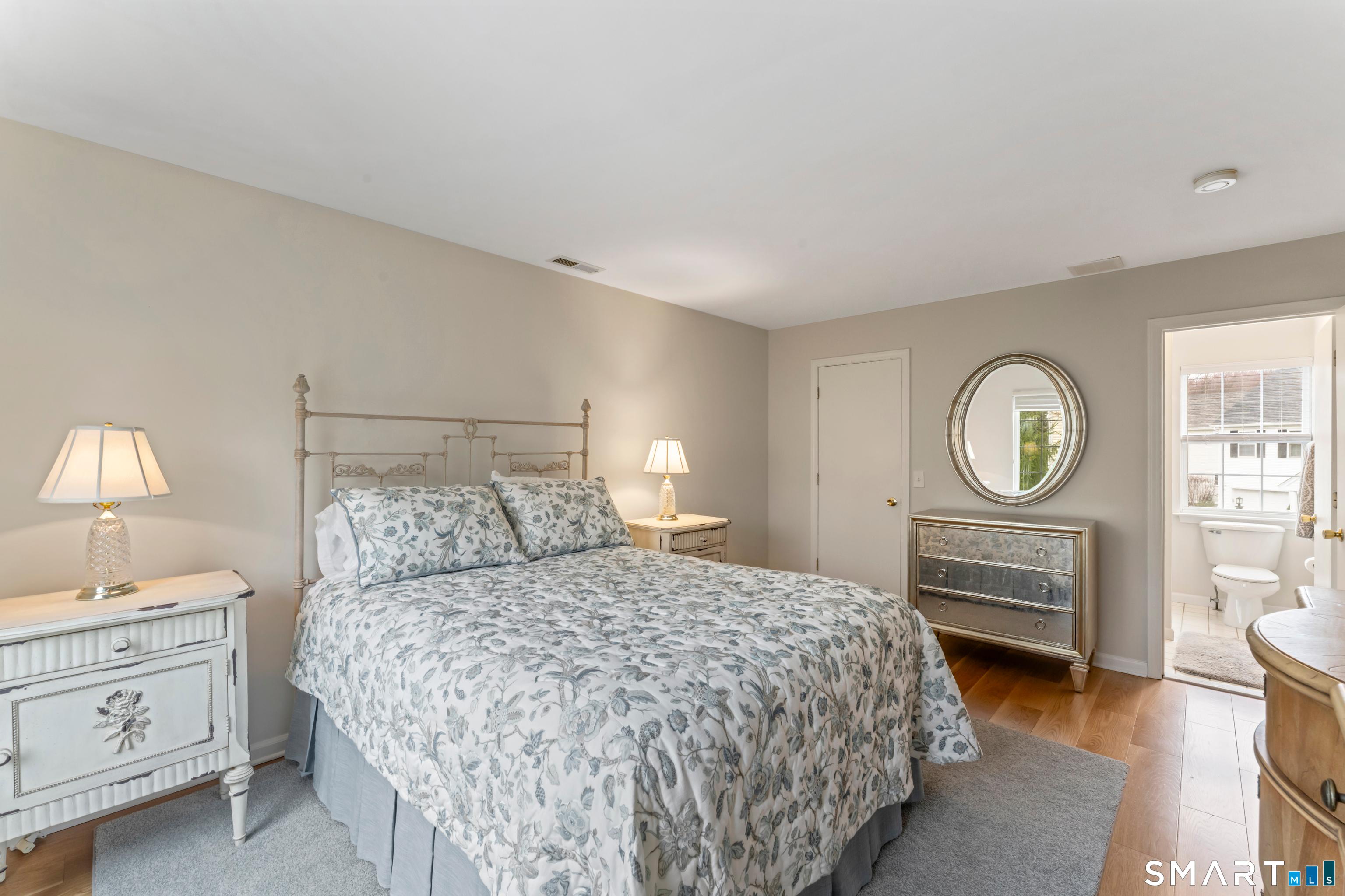 This beautifully appointed ranch-style condo offers the perfect blend of elegance, comfort, and functionality. Featuring 2 spacious bedrooms and 3.5 bathrooms, this home is designed for both everyday living and effortless entertaining. Gleaming hardwood floors flow throughout the main level, leading you into a stunning white galley kitchen complete with stainless steel appliances, granite countertops, and a charming eat-in area. Just off the kitchen, a thoughtfully designed transition space to the garage includes a stylish coat rack area, an oversized pantry/closet, and a convenient laundry area. Enjoy seamless indoor-outdoor living with a spacious screened-in porch accessible from both the kitchen and dining room-perfect for relaxing or entertaining. The dramatic living room boasts soaring ceilings, a striking wall of custom built-ins, and sliders that open to a private deck. The expansive primary suite is a true retreat, featuring cathedral ceilings, hardwood flooring, and two closets-including a walk-in-along with a luxurious four-piece en-suite bath. The second bedroom also offers its own private full en-suite bathroom, ideal for guests or family. The finished lower level is a standout feature, offering incredible flexibility with two additional rooms perfect for guest space, a home office, or hobbies, along with a large recreation area and a full bathroom. A rare combination of style, space, and versatility-this exceptional home is not to be missed!