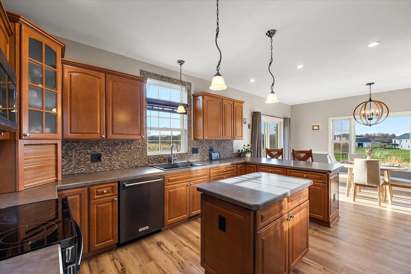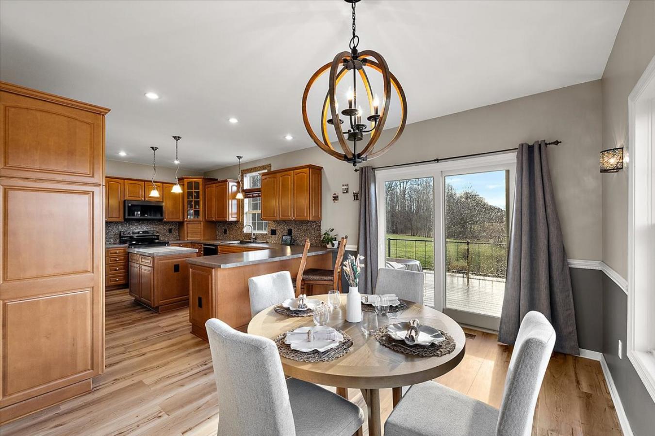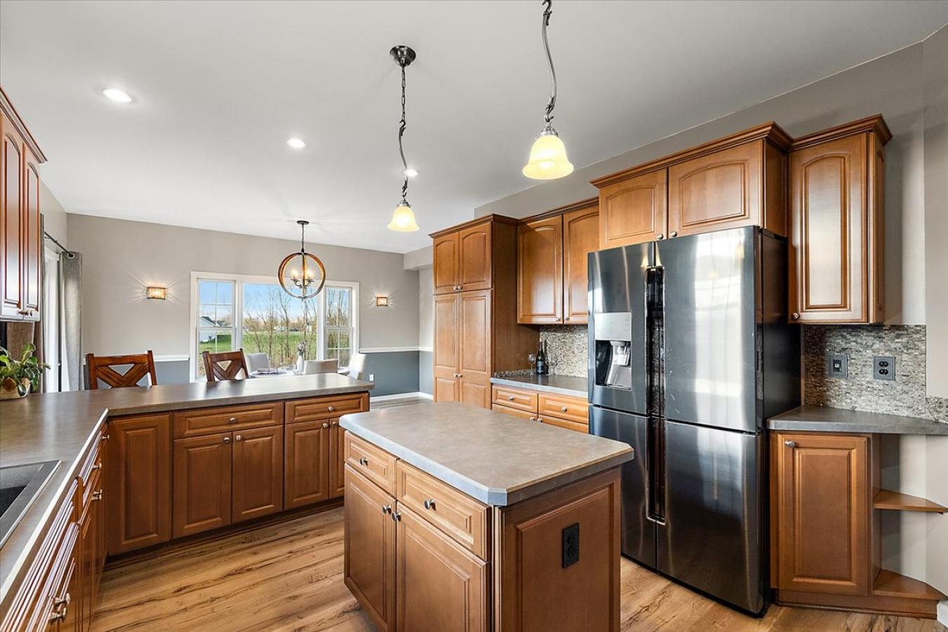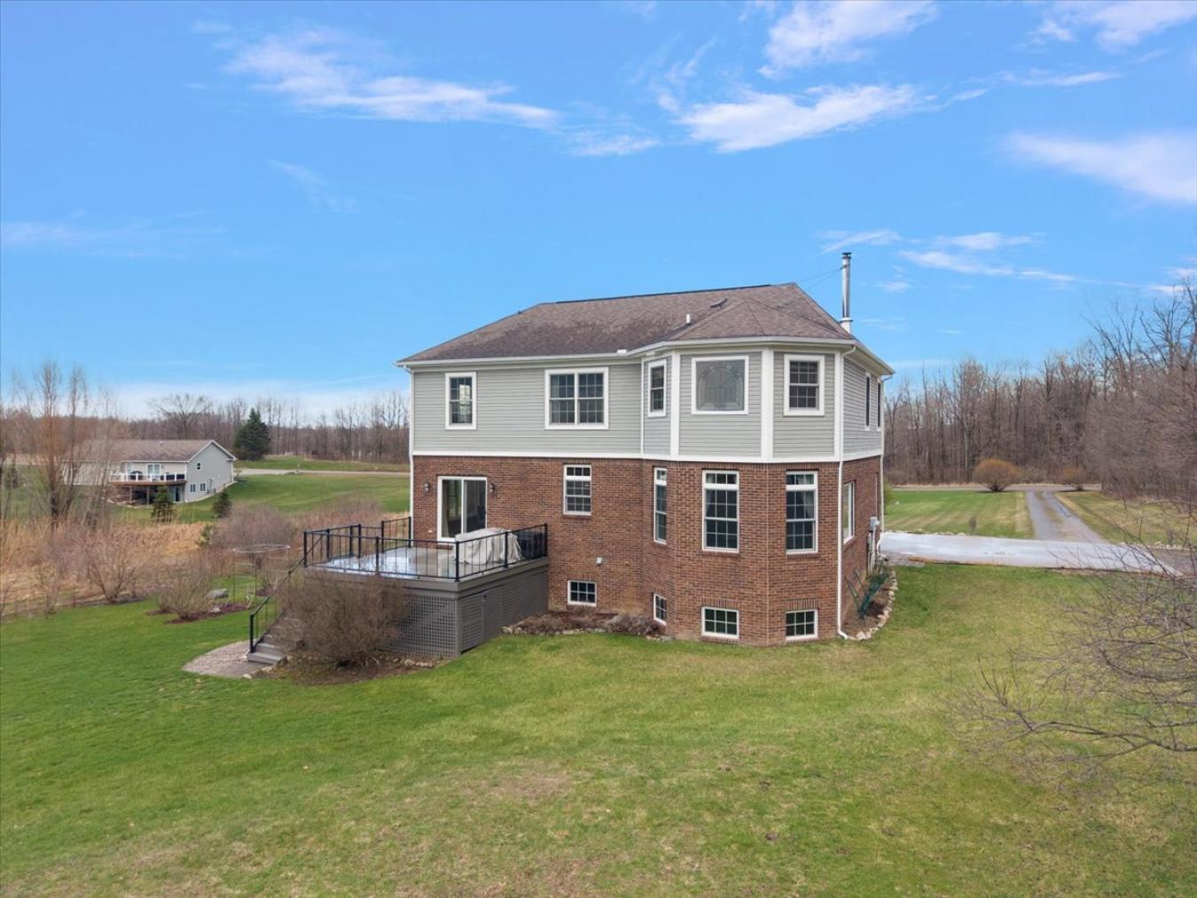 Architect-Designed Estate on 3.21 Acres , Protected Views, Walkout Lower Level, All Paved Roads Set on 3.21 private, manicured acres in the highly regarded Goodrich school district, this architect-designed residence offers a refined balance of craftsmanship, privacy, and lifestyle. The setting is both protected and expansive, as it is positioned near a quiet cul-de-sac and backs to 35 acres of HOA-owned land that cannot be built on, along with exclusive resident walking trails. Enjoy the ease of access via all paved roads, a rare advantage for acreage properties. Offering approximately 3,800 square feet of finished living space, including a walkout lower level, this 4-bedroom, 4-bath home was thoughtfully designed by its original owners. Natural light fills the interior through Marvin Integrity windows, highlighting 9 ceilings, clean lines, and a layout designed for both gathering and retreat. A dedicated office and upper-level laundry add everyday functionality. The kitchen is designed for cooking and connection, featuring maple cabinetry, soft-close drawers, pull-out storage, a pantry, integrated recycling, an Italian stone backsplash, and reverse osmosis water. The primary suite offers a quiet retreat with a cove ceiling, walk-in closet, and a spa-style bath with dual granite vanities, a jetted tub, a separate shower, and a private water closet. The finished walkout lower level features custom built-ins, a wet bar, live-edge wood counters, a hidden wine cellar, a Blaze King wood stove, and heated floors in the bath (prepped for a shower). Outdoor living includes a composite deck with cable railing for sunset views, plus a brick paver patio and fire pit. Mature trees, gardens, and fruit trees complete the setting. Built with 2x6 construction, blown-in insulation, 50-year shingles, copper plumbing, deeper well, geothermal HVAC (under warranty through 2028), oversized 2-car garage, solid core interior doors, two sheds, natural gas at the street, and high-speed internet options