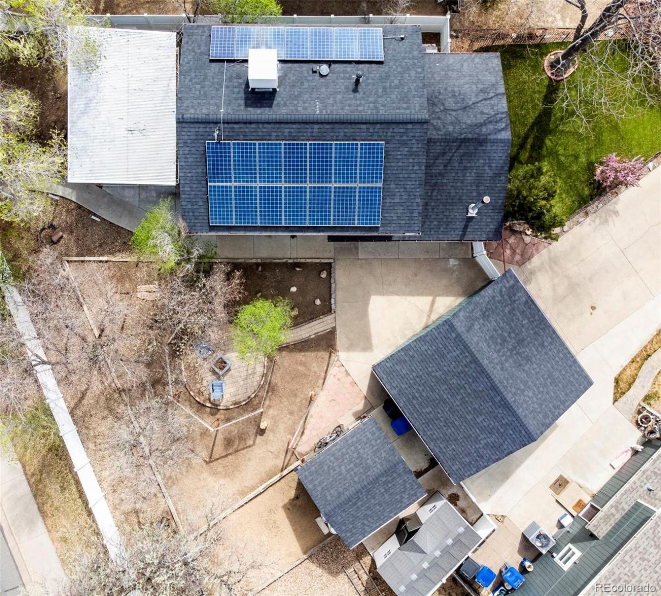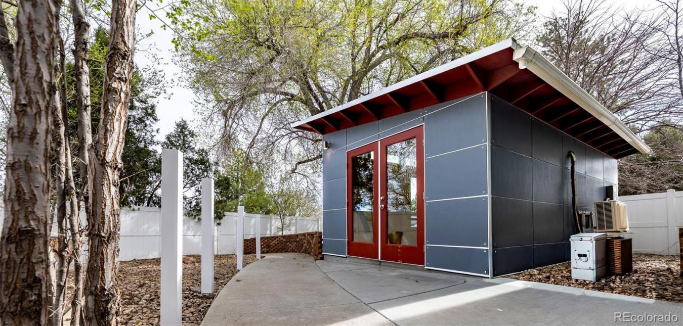 Convenience, efficiency, and comfort describe this home at the end of a peaceful cul-de-sac. When you arrive at the home, you are greeted by a quickly melting south-facing driveway, a zero-maintenance turf front yard, and mature trees. The white privacy fence enters into an expansive backyard with tons of room for outdoor gardening, gatherings, or relaxation. Inside, the heart of the home is a bright and airy eat-in kitchen. It features sleek granite countertops, a functional center island, and premium finishes that make meal prep a delight. The custom kitchen is complete with 2 trash drawers, a reverse osmosis water filtration system, a double oven, and 2 appliance garages. The kitchen flows openly to the living room with a wood-burning fireplace for added ambiance and efficiency. The custom bathroom on the lower level has an automatic backlit mirror, and the bathroom on the upper level has plenty of room, complete with a dual vanity. What truly sets this property apart are the many eco-friendly features. Enjoy extremely low utility bills with fully paid-off solar panels, and power your commute across the Front Range with ease thanks to the installed 220V outlet for electric vehicles. Insulation has been added to both the attic and the crawlspace for added efficiency, and windows are energy efficient. A Class IV roof installed in 2024 will reduce insurance costs, and the home is wired for Nextlight Internet. The property also features a climate-controlled detached studio, providing the perfect quiet space for a home office, creative art studio, or personal gym-a rare find in Longmont! There are two additional sheds for extra storage. Spend your weekends exploring the local boutiques, galleries, and renowned craft breweries. Walk to Centennial pool and park, play on the courts and track at Skyline right across from the house, enjoy the trails 1 mile away at Union Reservoir, the parks at Sandstone, or the incredible dining that makes Longmont an amazing place to live.