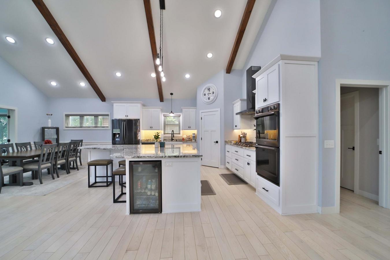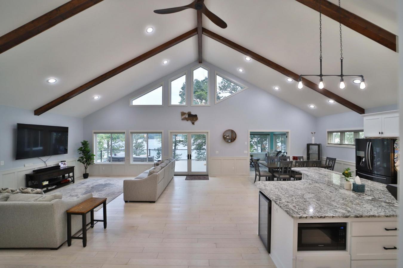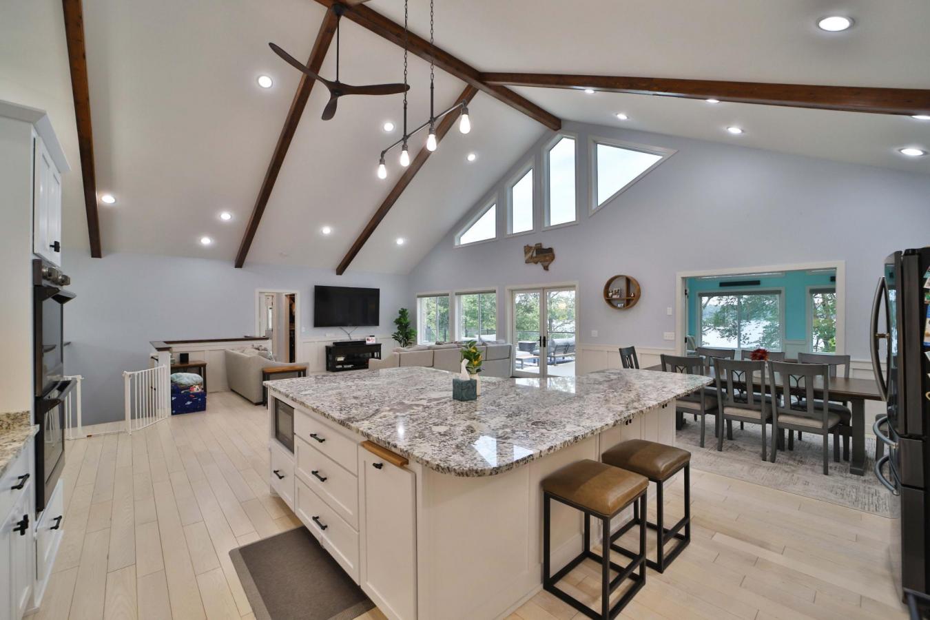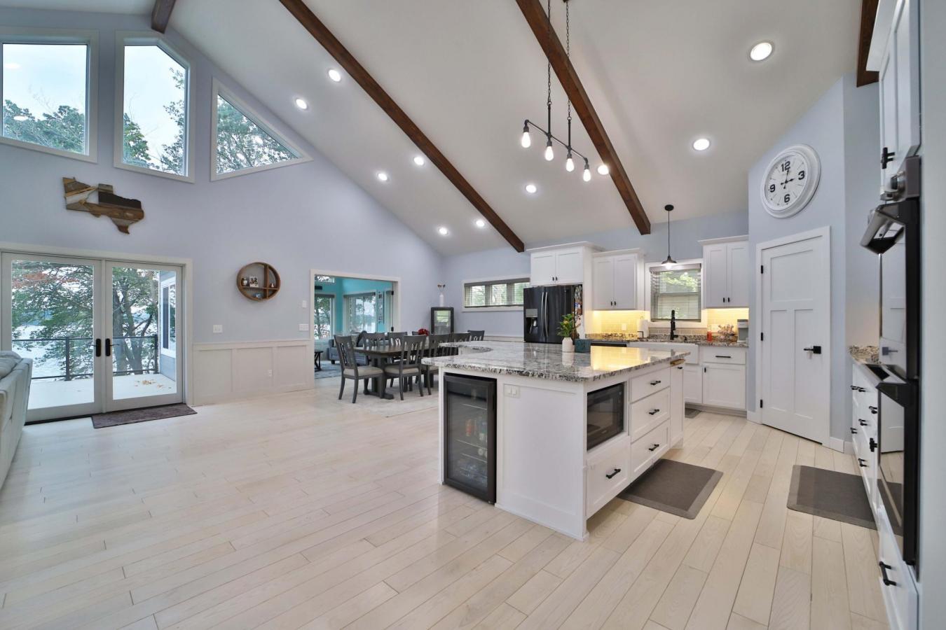 Immerse yourself in lakeside luxury with this 2019 custom-built rambler with a walkout on Fish Trap Lake in Cushing, MN. Set on a private 1.38-acre lot at the end of a cul-de-sac, this spectacular home boasts over 4,400 sq ft of open-concept living space, ideal for hosting unforgettable gatherings.
