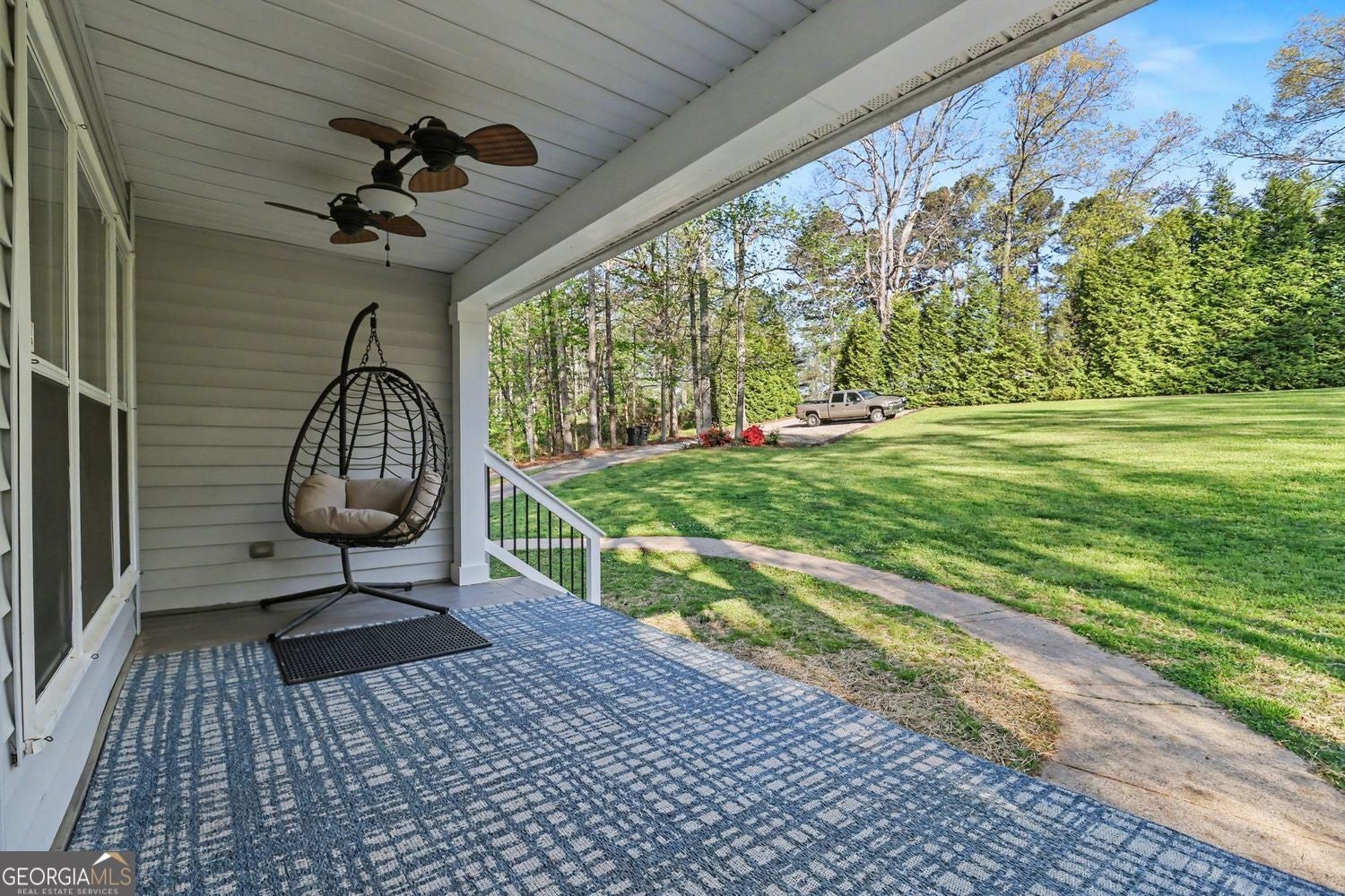 This is the one youve been waiting for-an exceptional opportunity to own nearly 4.5 acres of serene, wooded privacy paired with a charming farmhouse-style home and an incredible dream workshop. Nestled on 4.49 picturesque acres, this inviting 3-bedroom, 2.5-bath home welcomes you with a classic rocking chair front porch-perfect for relaxing and taking in the peaceful surroundings. Inside, youll find a warm, thoughtfully designed space featuring tongue-and-groove wood ceilings, custom-built kitchen cabinetry, and an open-concept layout filled with natural light, enhanced by large windows and plantation shutters. The spacious great room flows seamlessly into the kitchen and dining/keeping area, anchored by a stunning double-sided brick gas-log fireplace-ideal for enjoying cozy evenings from either space. The main-level primary suite offers comfort and convenience with a private bath, while an additional half bath serves guests. Upstairs, two additional bedrooms with gleaming hardwood floors share a hall bath, complete with a stylish custom barn door. The walk-out basement provides a finished laundry area plus multiple stubbed rooms ready to be customized to fit your lifestyle-whether you envision a home gym, office, or additional living space. Step outside to a fenced backyard featuring a playground and paved patio-perfect for entertaining, pets, or family fun. Beyond the fence, explore your own wooded retreat with a charming creek running through the property. For hobbyists, entrepreneurs, or collectors, the standout feature is the impressive 40x48 (1,920 sq ft) fully permitted workshop/garage. Equipped with 220V power, soaring 12-foot ceilings, a storage platform, and three 10-foot roll-up doors, it easily accommodates up to six vehicles or endless possibilities. A covered metal carport adds even more flexibility for boats, RVs, and recreational equipment. Conveniently located off Hwy 369 between Ball Ground and Cumming, this property offers the perfect balance of privacy and accessibility, with easy access to schools, shopping, and commuter routes. Recently appraised and inspected, this move-in-ready property delivers space, functionality, and character-an opportunity you dont want to miss.