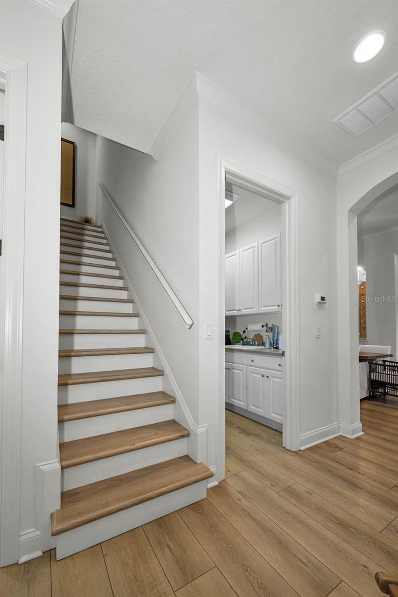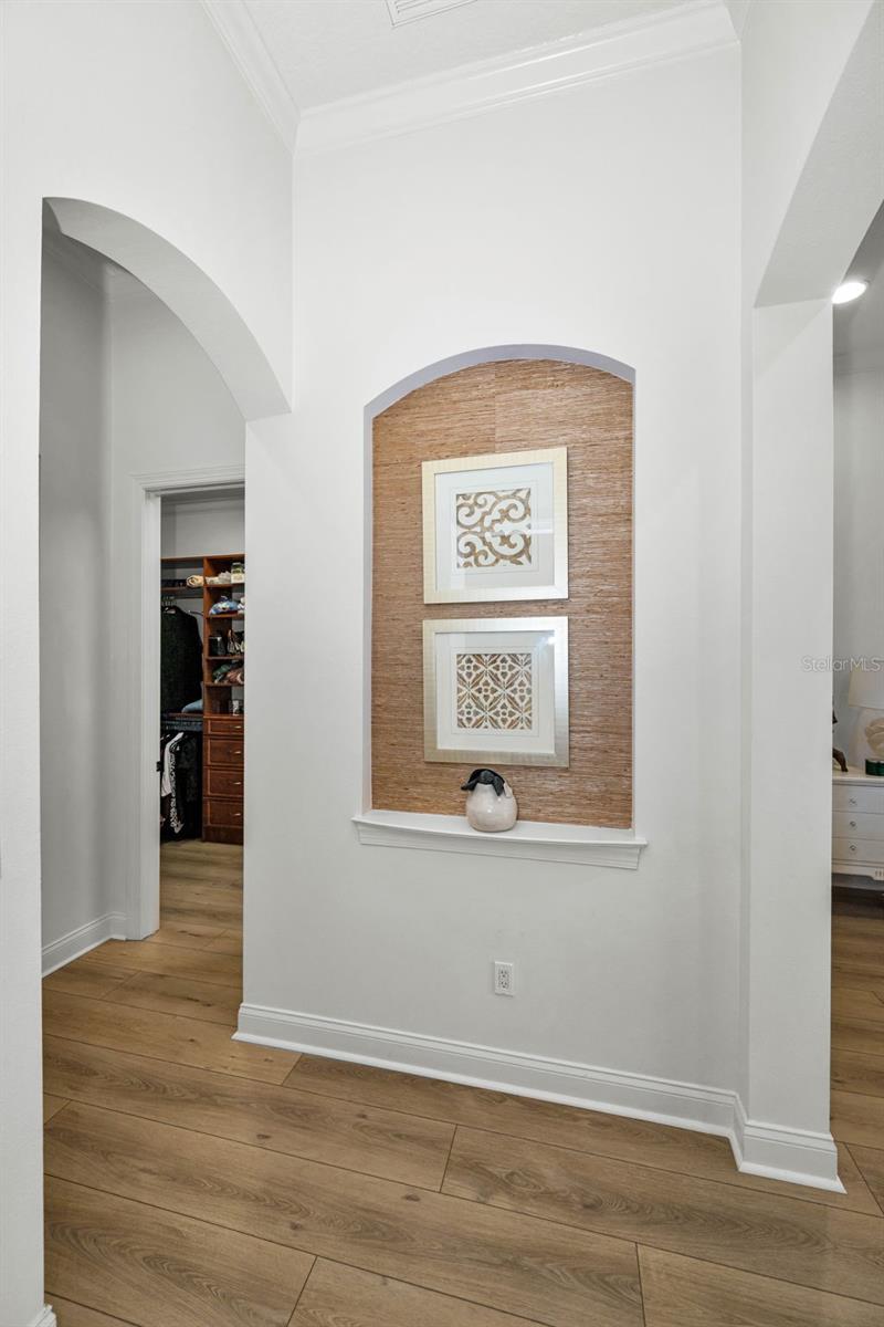 Welcome to a luxury estate in the coveted gated section of Starkey Ranch a Tampa Bay award winning master planned community. This exceptional Madeira III by WestBay Homes sits on one of the few expanded homesites in the entire community - an impressive .40-acre cleared lot backing directly to the serene Starkey Wilderness Preserve, offering unmatched privacy and breathtaking natural views. This expansive residence offers 5 bedrooms, 3.5 bathrooms, and over 4,200 square feet of living space, blending luxury, functionality, and energy efficiency. The home features a fully paid-in-full solar system with 104% power offset using REC panels valued at approximately 60,000 - delivering the rare benefit of virtually no electric bill. Step into your private resort-style backyard oasis designed for ultimate relaxation and entertaining. Enjoy a saltwater pool and heated spa powered by a 400K Pentair heater with seven jets and a tranquil water feature. The outdoor space is finished with beautiful travertine decking, landscape rock accents, gutters in the backyard and over the pool equipment area, and a premium Canadian Timber Collection cedar sauna featuring a 7-kilowatt Harvia heater, hardwired to electric and designed to accommodate up to eight people, valued at approximately 20,000. Inside, you are welcomed by grand two-story ceilings, elegant crown molding in the foyer, tray ceilings, and designer lighting throughout the main living areas, including custom fixtures from Pottery Barn. The living room features a custom stone accent wall, built-in ceiling speakers, and remote-controlled custom window shades, creating both comfort and sophistication. The gourmet kitchen is a showpiece, featuring quartz countertops with extended seating, tiled backsplash, extended cabinetry with glass showcase display, gold hardware and faucets, reverse osmosis system, and a spacious layout perfect for entertaining. The thoughtfully designed floor plan includes a first-floor bedroom with a private full bath, ideal for guests, in-law quarters, or a secondary owners suite, along with a den or office with glass double doors and a beautifully designed drop zone with tile flooring for everyday convenience. Additional upgrades throughout the home include a water softener system, tankless water heater, CAT 6 internet pre-wiring, three 3-ton AC units, custom rods, curtains, and shades that convey, and a spacious laundry room complete with folding table and built-in drawers. Upstairs, the home features a Jack-and-Jill bathroom and generous secondary bedrooms, while the luxurious owners retreat showcases crown molding, black quartz countertops with gold accents, and a large garden soaking tub creating a spa-like atmosphere. The backyard is thoughtfully designed with cleared land maximizing space while maintaining the natural beauty of the preserve setting. This rare estate offers luxury finishes, energy efficiency, resort-style outdoor living, and one of the largest homesites in Starkey Ranch - all within a private gated enclave. Experience elevated Florida living at its finest. The community includes multiple parks, playgrounds, pools, kids splash zone, magnet K-8 elementary middle school, county library, starkey ranch district park,tennis, and over 20 miles of walking/biking trails. Conveniences include grocery, restaurants,nails and hair salon and a neighborhood favorite starkey market.
