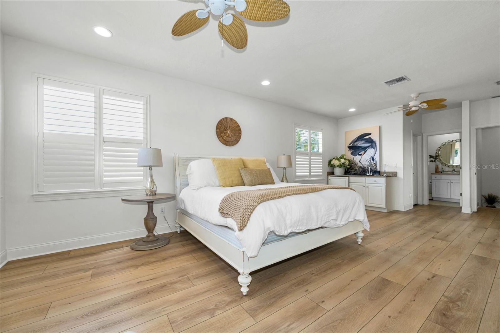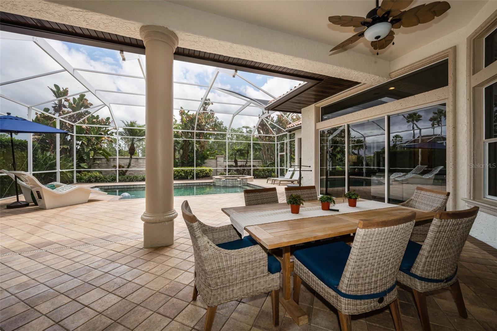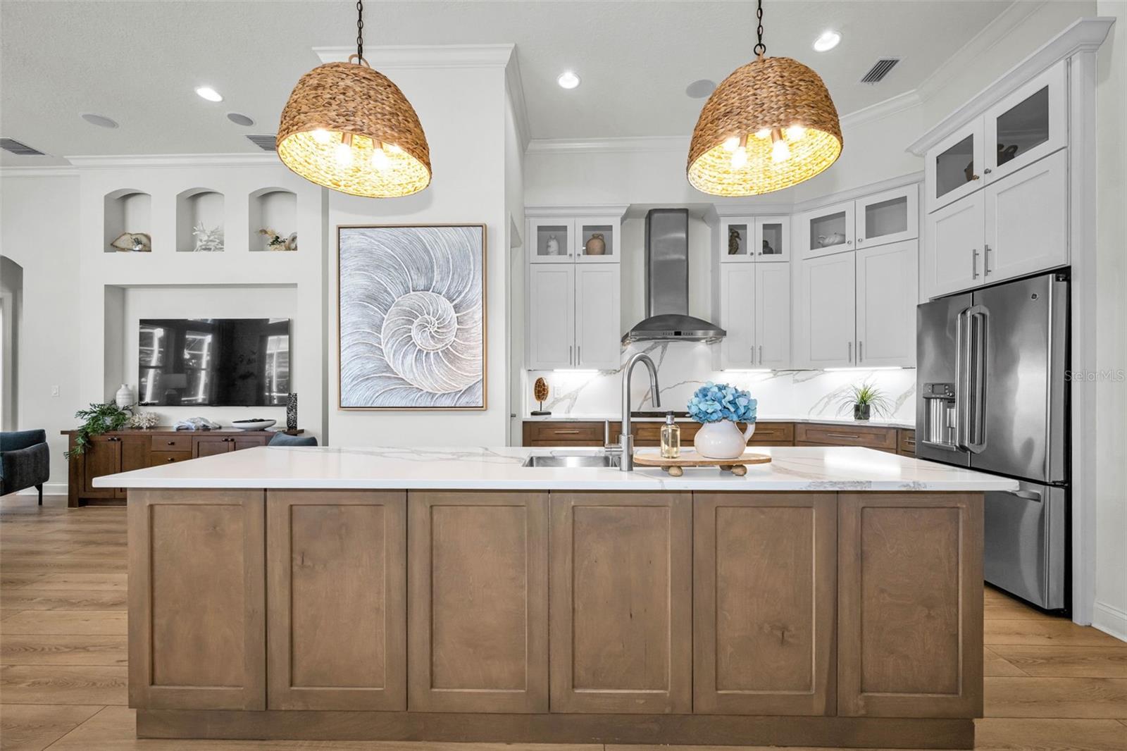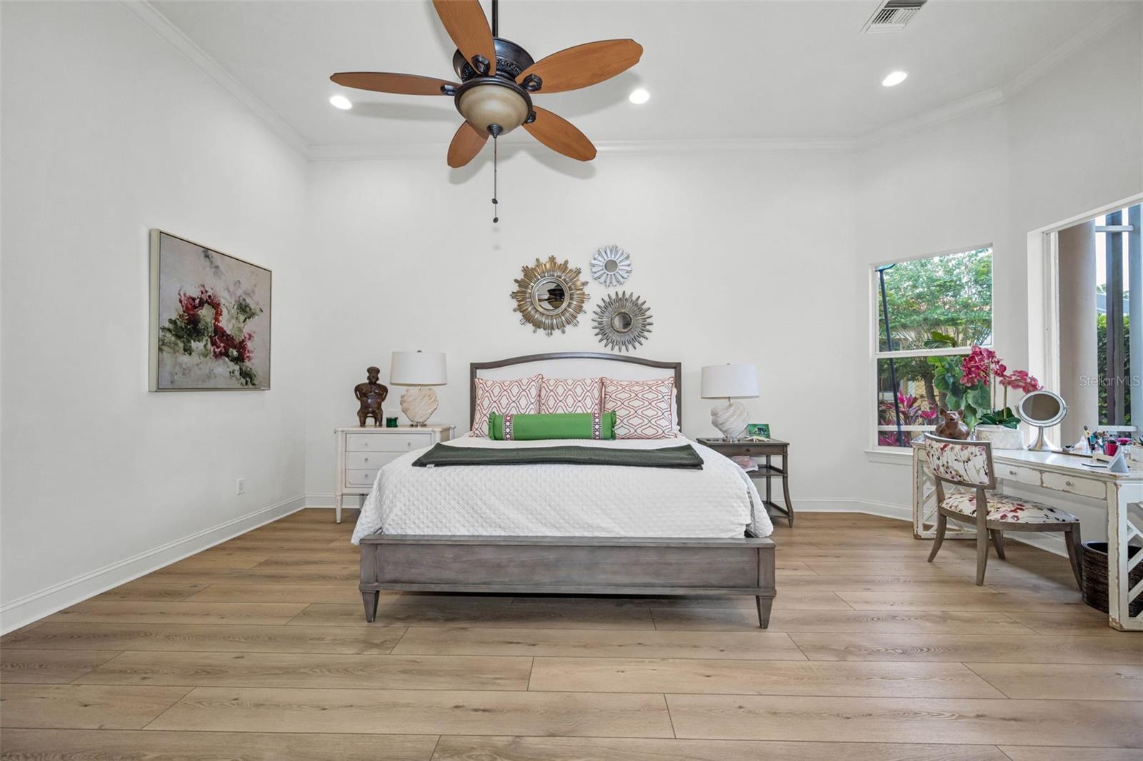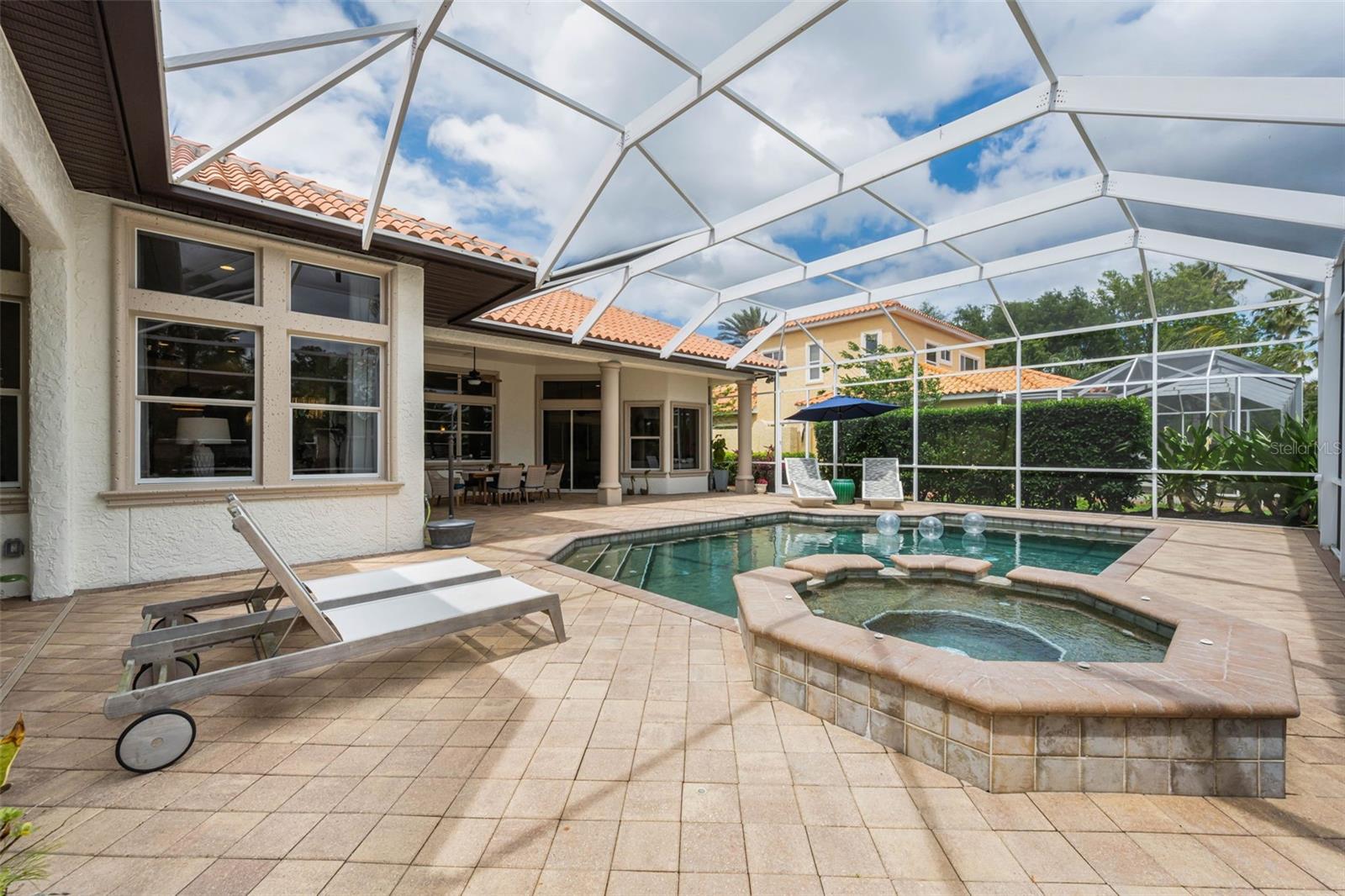 Experience refined luxury in this beautifully updated dream home, ideally situated in one of the most sought-after neighborhoods within The Champions Club. This exceptional former model residence offers an impressive blend of elegance and functionality, featuring five bedrooms - including two primary suites - four and a half bathrooms, a dedicated office, and an oversized garage. A newly landscaped entrance creates a welcoming sense of privacy and curb appeal from the moment you arrive. Inside, tall custom front doors open to a light-filled, open-concept layout where expansive windows seamlessly connect the indoors to the lush outdoor setting. The thoughtfully designed floor plan provides both comfort and versatility. One wing of the home is dedicated to the office and a luxurious primary suite, while the opposite wing includes two bedrooms connected by a full bath, plus an additional bedroom with its own hall bath. The main primary suite is a true retreat, complete with a custom-designed walk-in closet, dual vanities, a spa-style jetted tub, and a separate walk-in shower. At the heart of the home, the gourmet kitchen showcases a striking white quartz countertops and new solid wood cabinetry, a spacious pantry, and top-of-the-line appliances - perfect for both everyday living and entertaining. Step outside to an expansive covered lanai designed for effortless indoor-outdoor living. The self-cleaning saltwater pool and spa offer a resort-like experience with minimal maintenance. Two distinct outdoor seating areas enhance the space, including one with a built-in fireplace, alongside a fully equipped outdoor kitchen - ideal for hosting gatherings year-round. Upstairs, a private and generously sized bedroom suite features a walk-in closet and full bath, making it perfect for guests or multigenerational living. Located within the prestigious and welcoming Champions Club community, residents enjoy convenient access to exceptional amenities. The clubhouse - just a short bike ride away - offers a fitness center, gathering and game rooms, a spacious veranda overlooking Fox Hollow Golf Course, and a private pool with an outdoor kitchen. This gated community is also just minutes from the vibrant Trinity area and top-rated schools. This home offers the perfect balance of luxury, comfort, and community - an exceptional place to live, work, and play.