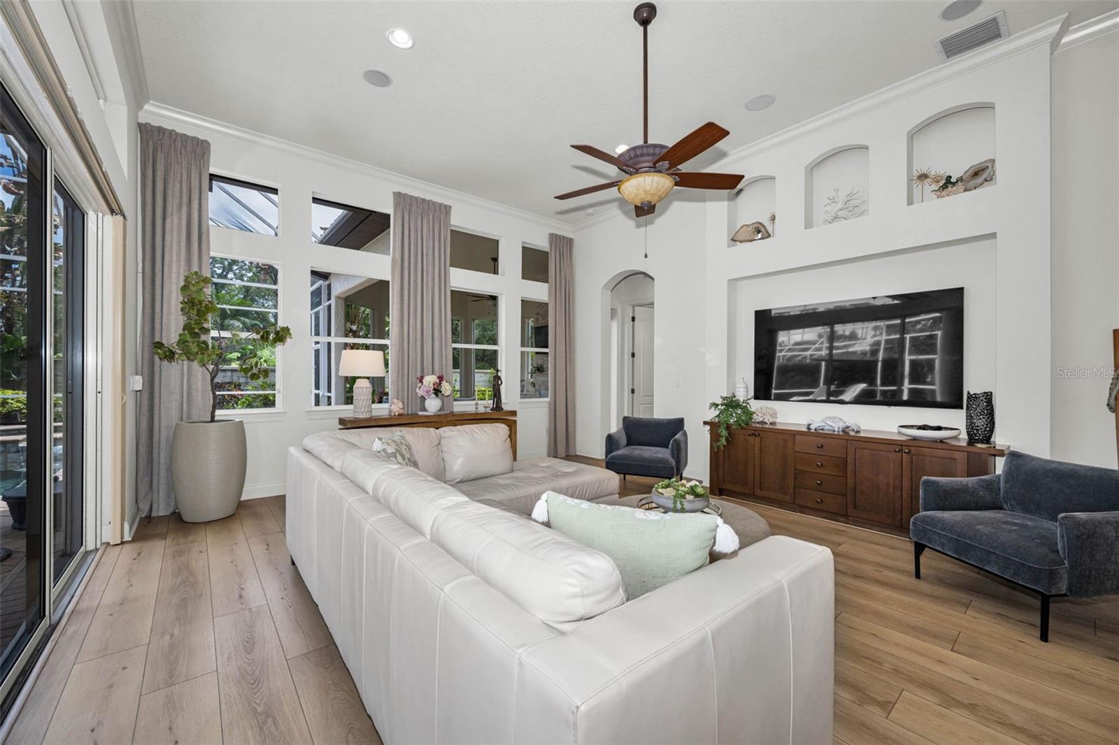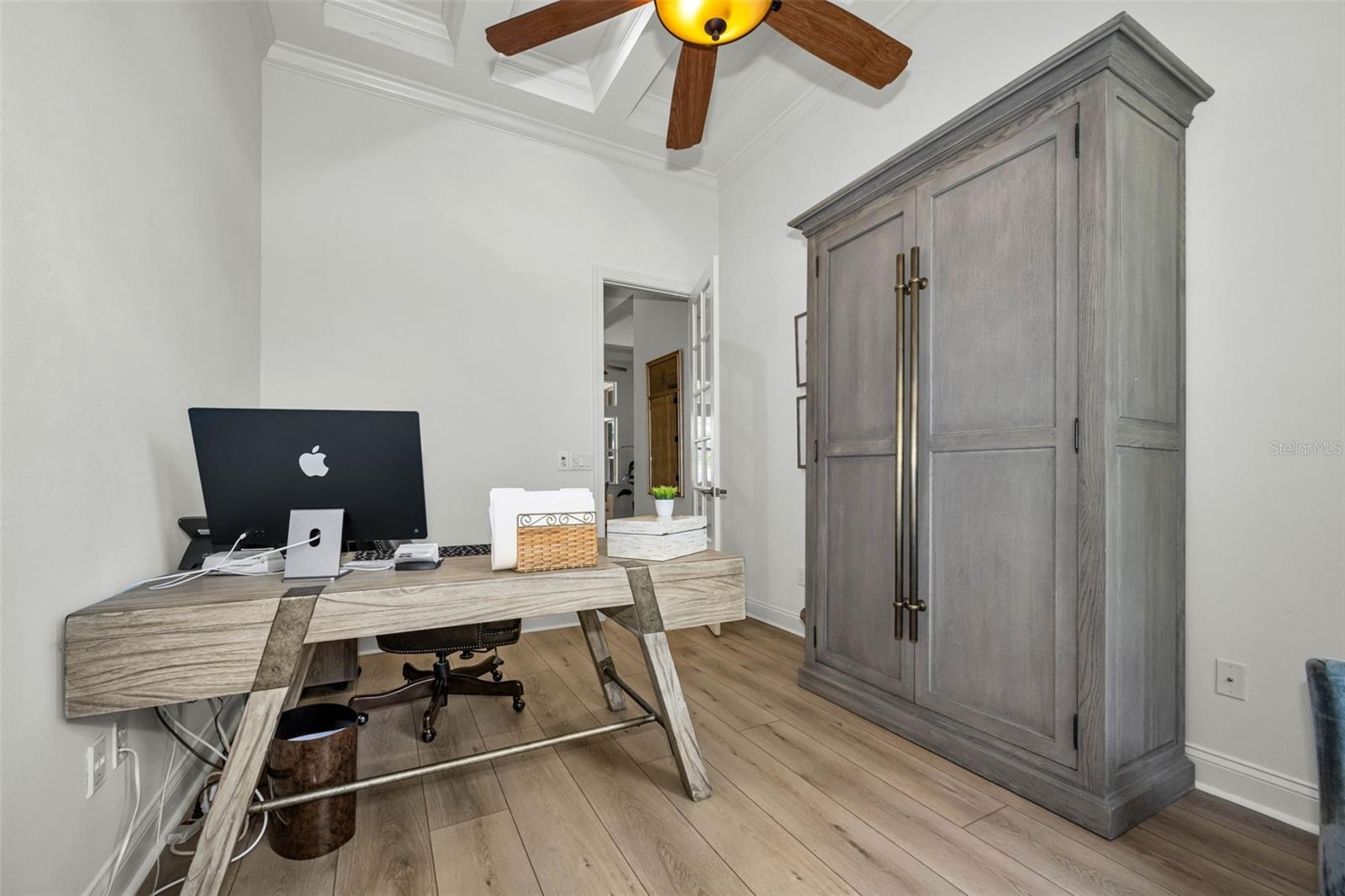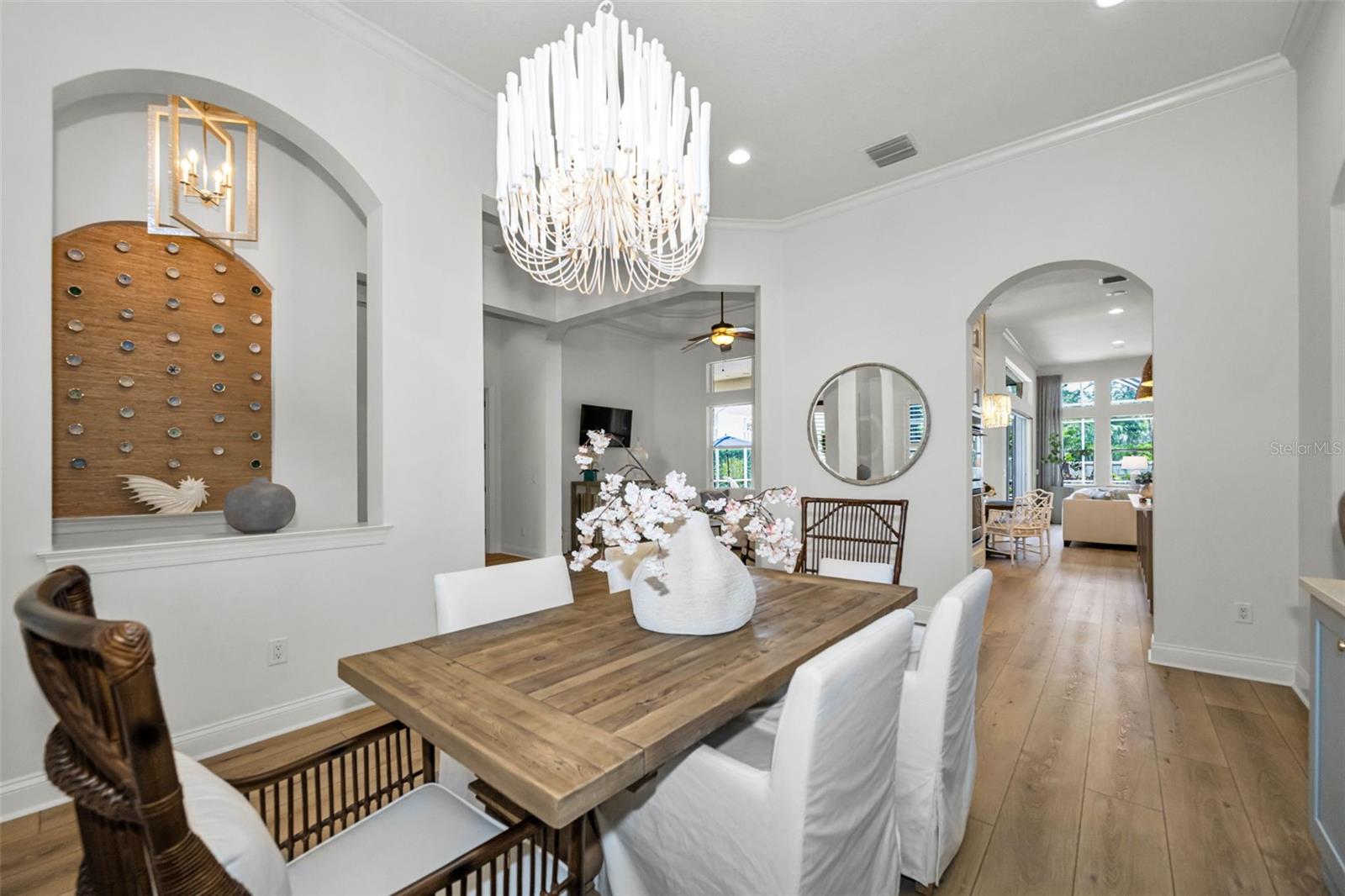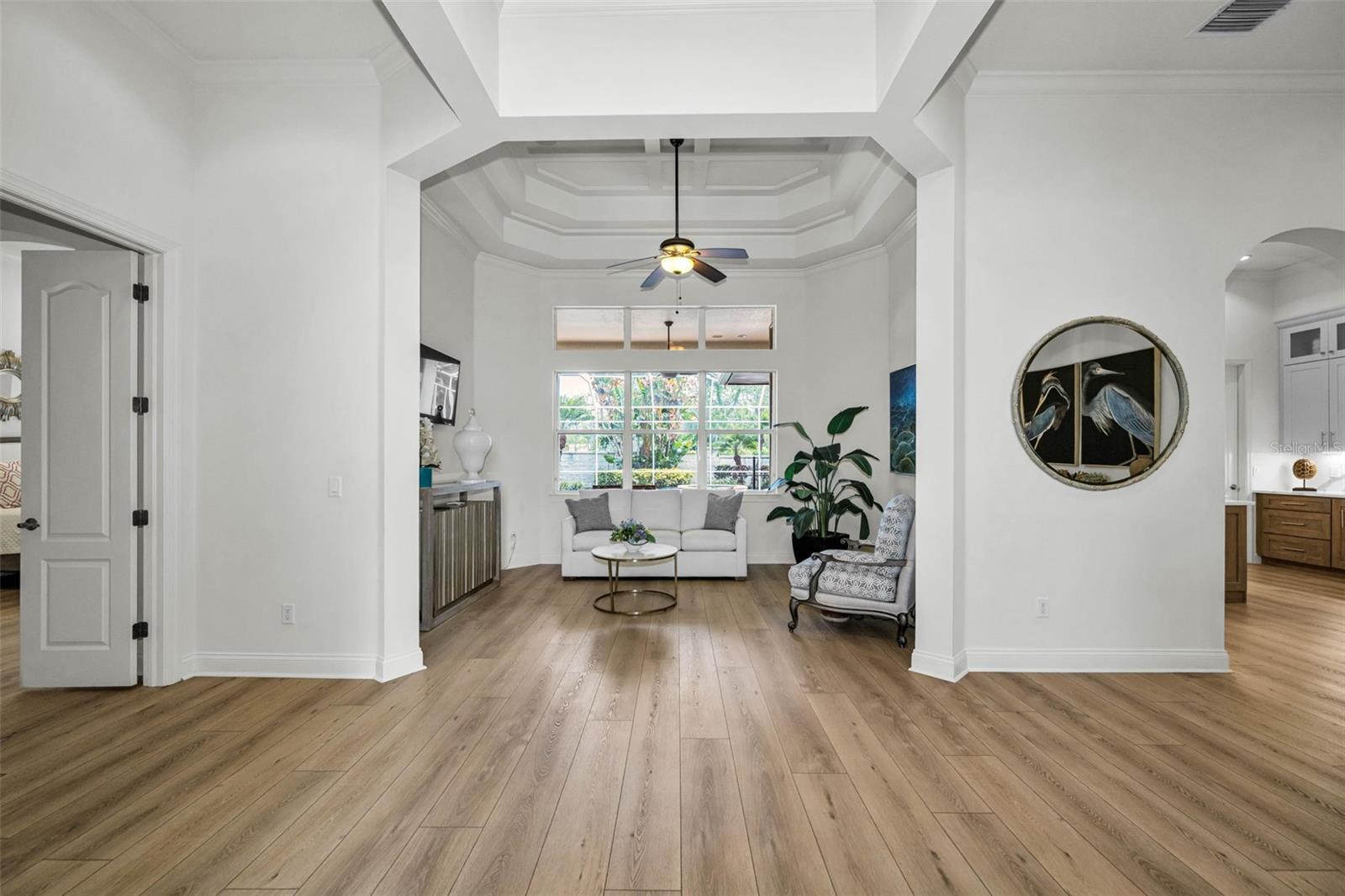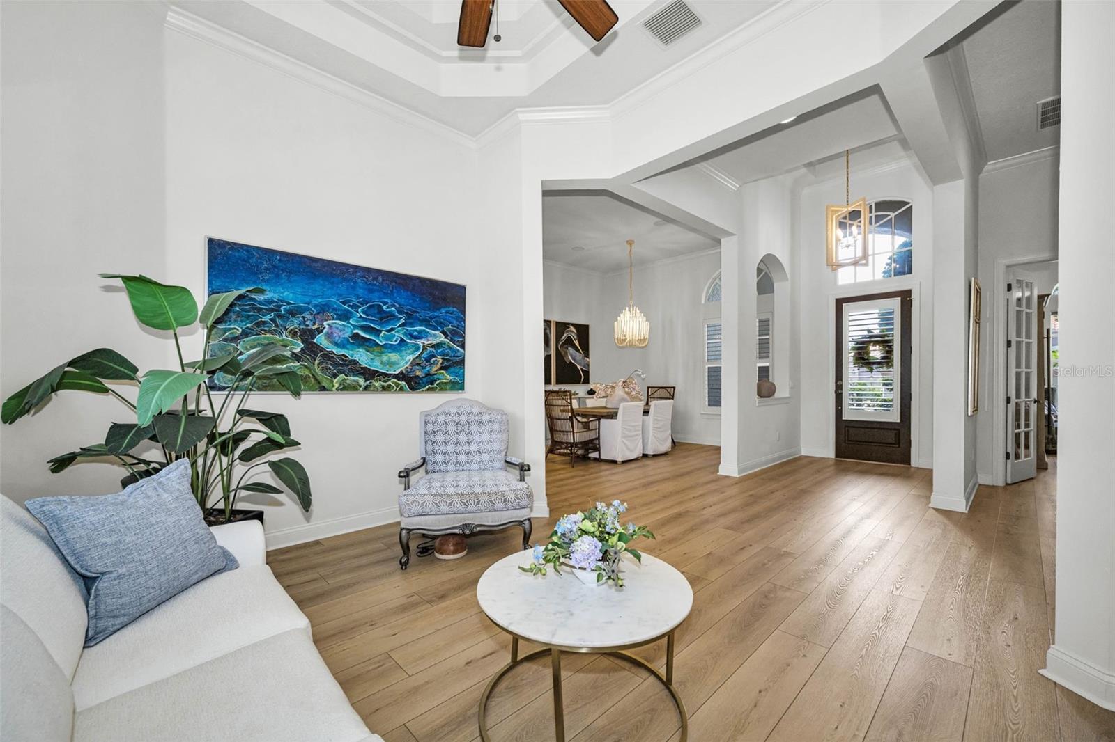 Experience refined luxury in this beautifully updated dream home, ideally situated in one of the most sought-after neighborhoods within The Champions Club. This exceptional former model residence offers an impressive blend of elegance and functionality, featuring five bedrooms - including two primary suites - four and a half bathrooms, a dedicated office, and an oversized garage. A newly landscaped entrance creates a welcoming sense of privacy and curb appeal from the moment you arrive. Inside, tall custom front doors open to a light-filled, open-concept layout where expansive windows seamlessly connect the indoors to the lush outdoor setting. The thoughtfully designed floor plan provides both comfort and versatility. One wing of the home is dedicated to the office and a luxurious primary suite, while the opposite wing includes two bedrooms connected by a full bath, plus an additional bedroom with its own hall bath. The main primary suite is a true retreat, complete with a custom-designed walk-in closet, dual vanities, a spa-style jetted tub, and a separate walk-in shower. At the heart of the home, the gourmet kitchen showcases a striking white quartz countertops and new solid wood cabinetry, a spacious pantry, and top-of-the-line appliances - perfect for both everyday living and entertaining. Step outside to an expansive covered lanai designed for effortless indoor-outdoor living. The self-cleaning saltwater pool and spa offer a resort-like experience with minimal maintenance. Two distinct outdoor seating areas enhance the space, including one with a built-in fireplace, alongside a fully equipped outdoor kitchen - ideal for hosting gatherings year-round. Upstairs, a private and generously sized bedroom suite features a walk-in closet and full bath, making it perfect for guests or multigenerational living. Located within the prestigious and welcoming Champions Club community, residents enjoy convenient access to exceptional amenities. The clubhouse - just a short bike ride away - offers a fitness center, gathering and game rooms, a spacious veranda overlooking Fox Hollow Golf Course, and a private pool with an outdoor kitchen. This gated community is also just minutes from the vibrant Trinity area and top-rated schools. This home offers the perfect balance of luxury, comfort, and community - an exceptional place to live, work, and play.