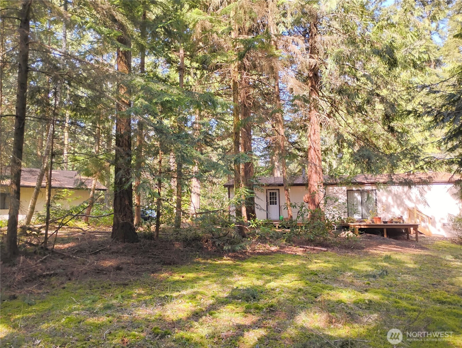 On the outskirts of Port Townsend, well kept rambler on nearly 6 acres of dry/mostly level forested acreage. Drive 1.11 miles to the popular Cape George trailhead which connects to pedestrian trail leading to the waterfront and marina! Flat, private driveway leads past the house to the detached 2 car garage which is insulated, drywalled, with a separate electric panel a south facing, large bonus room, originally planned for a MIL apartment as it is plumbed for 3rd bathroom, has a large window & separate entrance leading from paved path along the outbuilding-use as a workhop! The location is perfect for you privacy or for an investor whom wants to create lodging opportunity for visiting recreation enthusiast vacationing the beautiful pacific northwest landscape of trees, beach front & the arsty downtown that is 10 minutes drive away!. The house has a mudd room with the washer, dryer, utility sink and storage cabinets. Easy to add AC to the electric, forced air furnace (in the laundry room plus there is a wood burning stove offering 2 types of heating options! The kitchen is open to the great room which has vaulted ceilings and adjacent dining room. The primary bedroom has a wall of closets and a private full bathroom. This place is so clean and maintained, we are proudly selling it in as-is condition. The back deck has sun streaming onto it from the south and a view of your private forest . This 1 owner home has public water connected and a well- easy to go off grid!