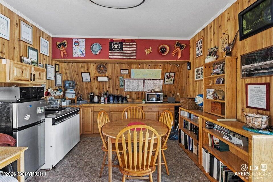 Welcome to your waterfront paradise nestled along the charming canal, offering seamless access to the legendary KENAI RIVER! Located in the gated community of Kenai Keys, this home features 3 bedrooms and 1¾ baths, ensuring comfort for all. This home offers, year-round living, a newly remodeled kitchen, and a full wall of windows with ample natural light. The garage is not just for parking; it comes complete with a convenient ½ bath and a canning kitchen, perfect for processing all the fish you might catch. Additionally, the second garage provides ample storage space and includes a studio upstairs with a 3/4 bath, a convenient kitchen area, and a walk out deck. Step outside to discover a fenced yard adorned with unique trees, lush vegetation, and the sweet melody of bird songs. With a private dock right close to your doorstep, you can easily moor your boat, making waterfront adventures a daily occurrence. Don't miss out on this unique opportunity to experience the best of waterfront living. Schedule your viewing today and make this exceptional property yours!
