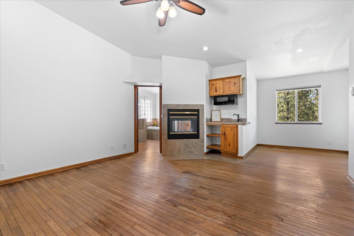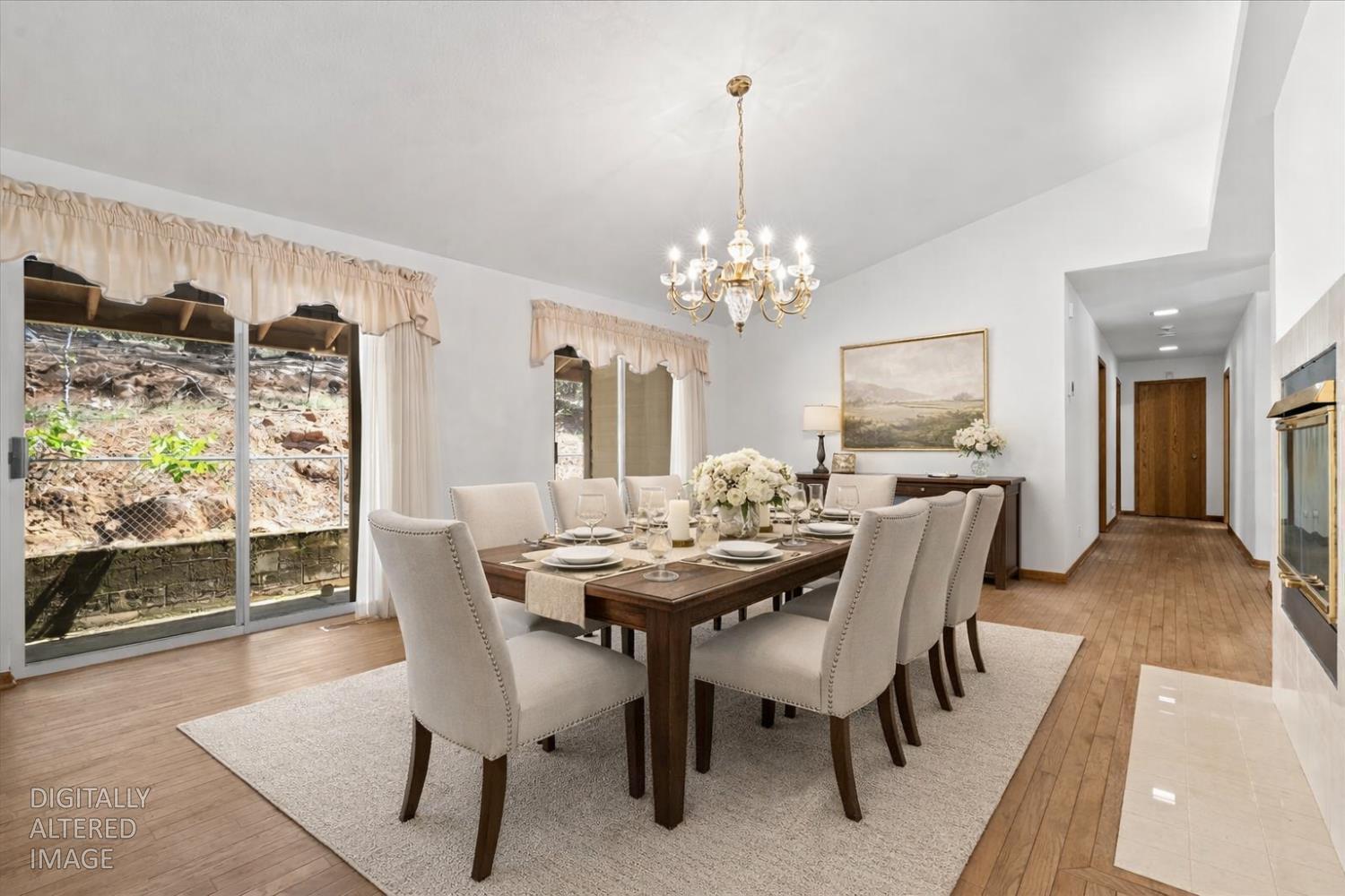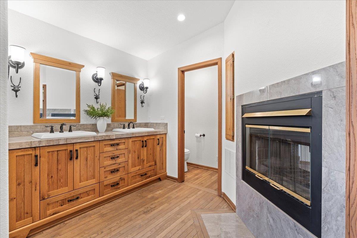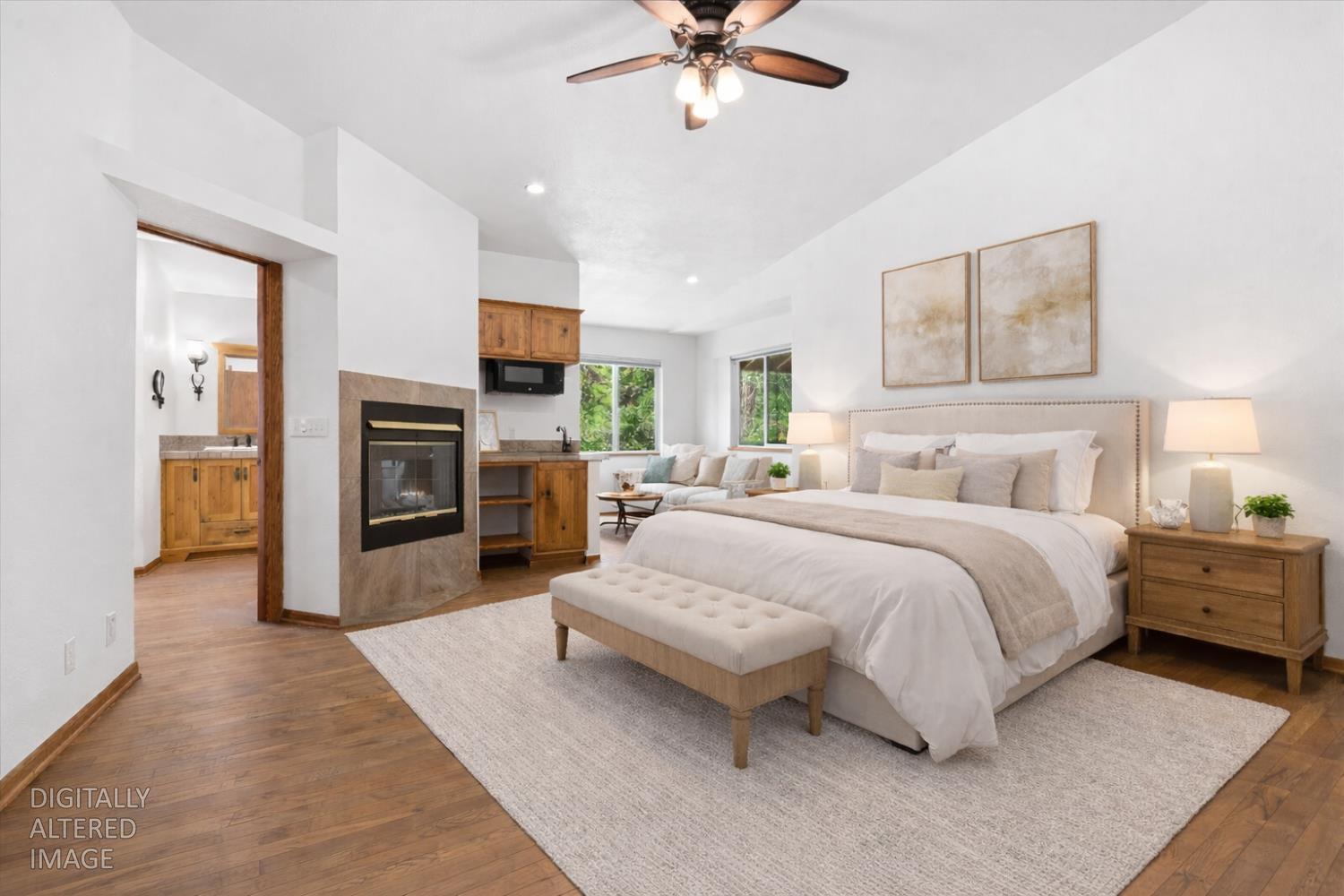 Room for the whole family! This beautifully designed home features rich wood flooring throughout and a stunning double-sided fireplace that anchors both the living and dining rooms. The updated chefs kitchen is a true centerpiece, showcasing gorgeous countertops, newer appliances, a built-in refrigerator, Wolf gas cooktop, and a spacious island perfect for gathering and entertaining. Each bedroom offers its own private bathroom, providing comfort and convenience for family and guests alike. The luxurious primary suite lives up to its name with a cozy sitting area, spa-inspired bathroom featuring double sinks, a walk-in shower, soaking tub, and a double-sided fireplace creating a serene retreat youll never want to leave. Enjoy peace of mind with a newer roof, newer HVAC system, and new water heater, adding comfort and efficiency to this exceptional home. Situated on 1.5 usable acres, this property offers both space and functionality with gardens, fruit trees, and outbuildings. The seller has enjoyed access to 1/2 miners inch of irrigation water, adding tremendous value for landscaping or hobby farming. Conveniently located near Highway 49 for an easy commute, with a fire station just across the highway for added peace of mind. Car enthusiasts and hobbyists will appreciate the attached 3-car garage plus an additional attached RV garage- plenty of room for all your toys. Dont miss this incredible opportunity to own a truly special property!