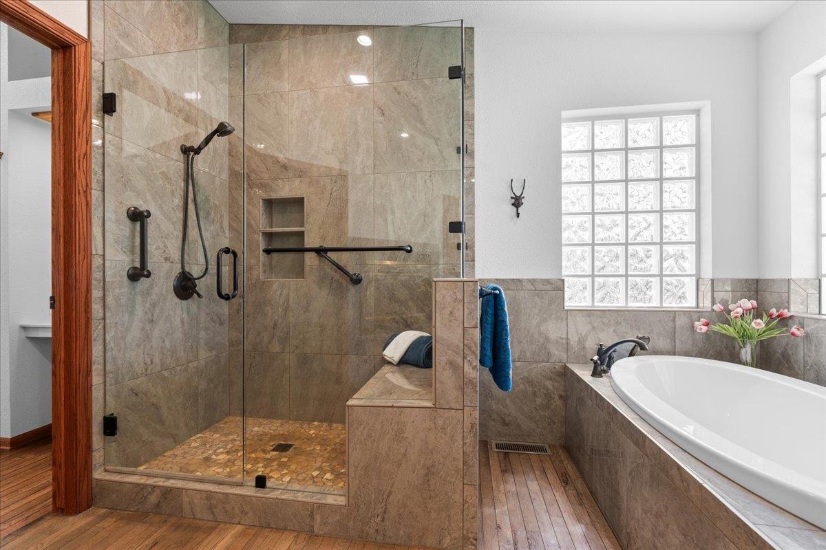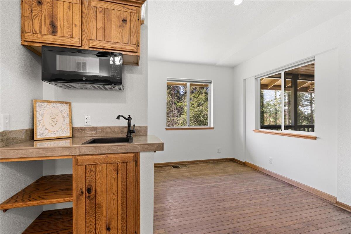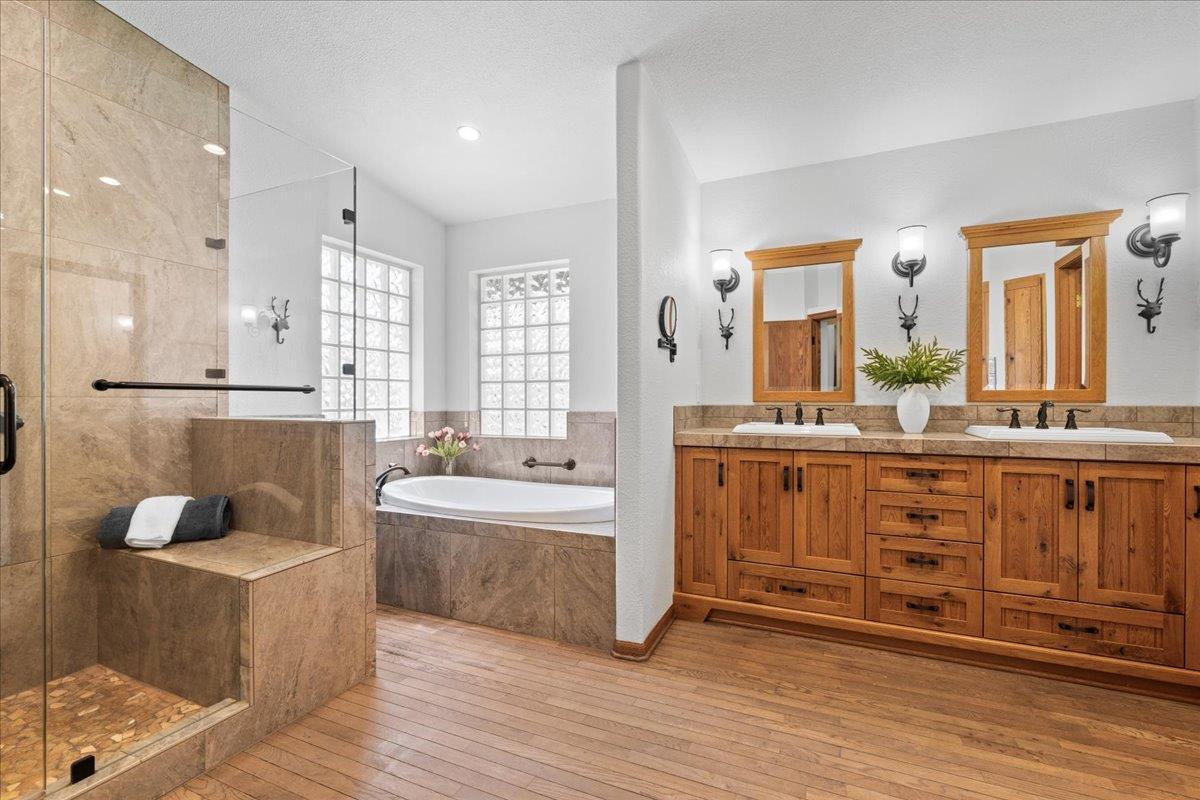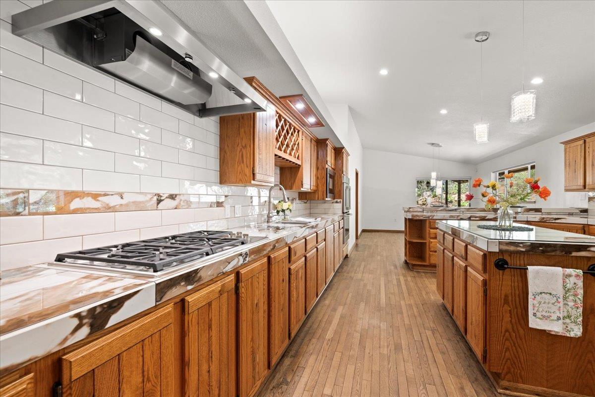 Room for the whole family! This beautifully designed home features rich wood flooring throughout and a stunning double-sided fireplace that anchors both the living and dining rooms. The updated chefs kitchen is a true centerpiece, showcasing gorgeous countertops, newer appliances, a built-in refrigerator, Wolf gas cooktop, and a spacious island perfect for gathering and entertaining. Each bedroom offers its own private bathroom, providing comfort and convenience for family and guests alike. The luxurious primary suite lives up to its name with a cozy sitting area, spa-inspired bathroom featuring double sinks, a walk-in shower, soaking tub, and a double-sided fireplace creating a serene retreat youll never want to leave. Enjoy peace of mind with a newer roof, newer HVAC system, and new water heater, adding comfort and efficiency to this exceptional home. Situated on 1.5 usable acres, this property offers both space and functionality with gardens, fruit trees, and outbuildings. The seller has enjoyed access to 1/2 miners inch of irrigation water, adding tremendous value for landscaping or hobby farming. Conveniently located near Highway 49 for an easy commute, with a fire station just across the highway for added peace of mind. Car enthusiasts and hobbyists will appreciate the attached 3-car garage plus an additional attached RV garage- plenty of room for all your toys. Dont miss this incredible opportunity to own a truly special property!