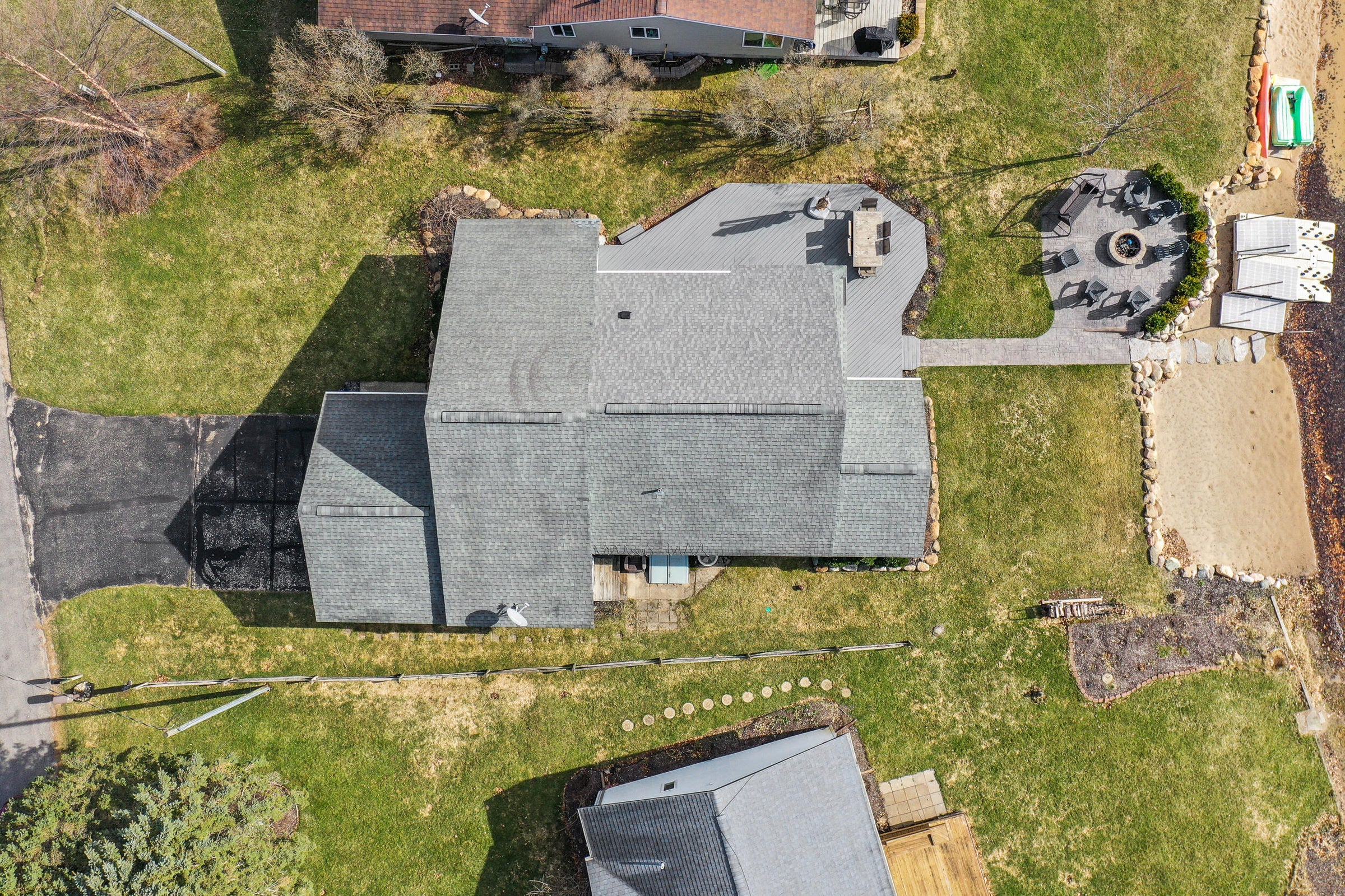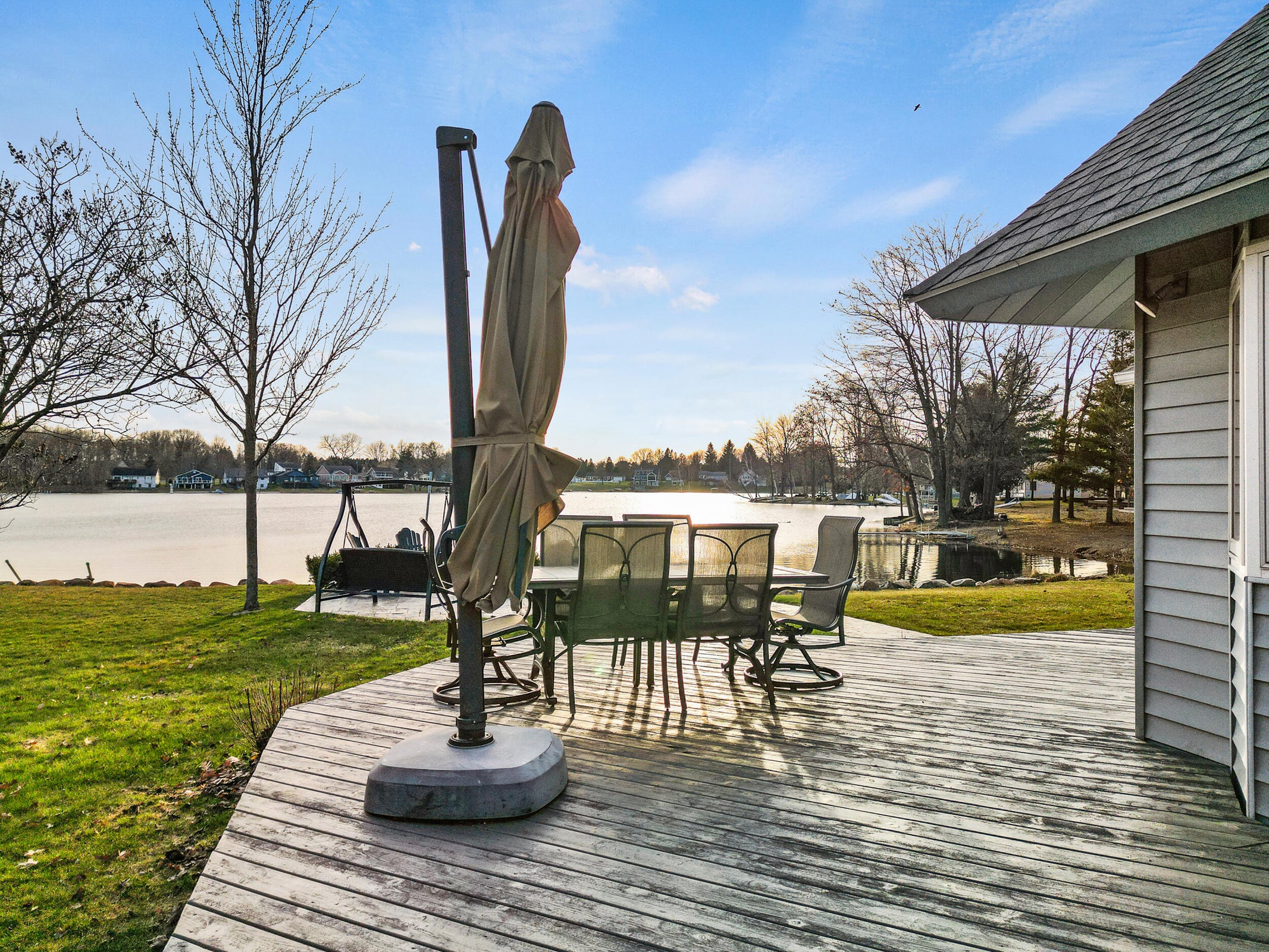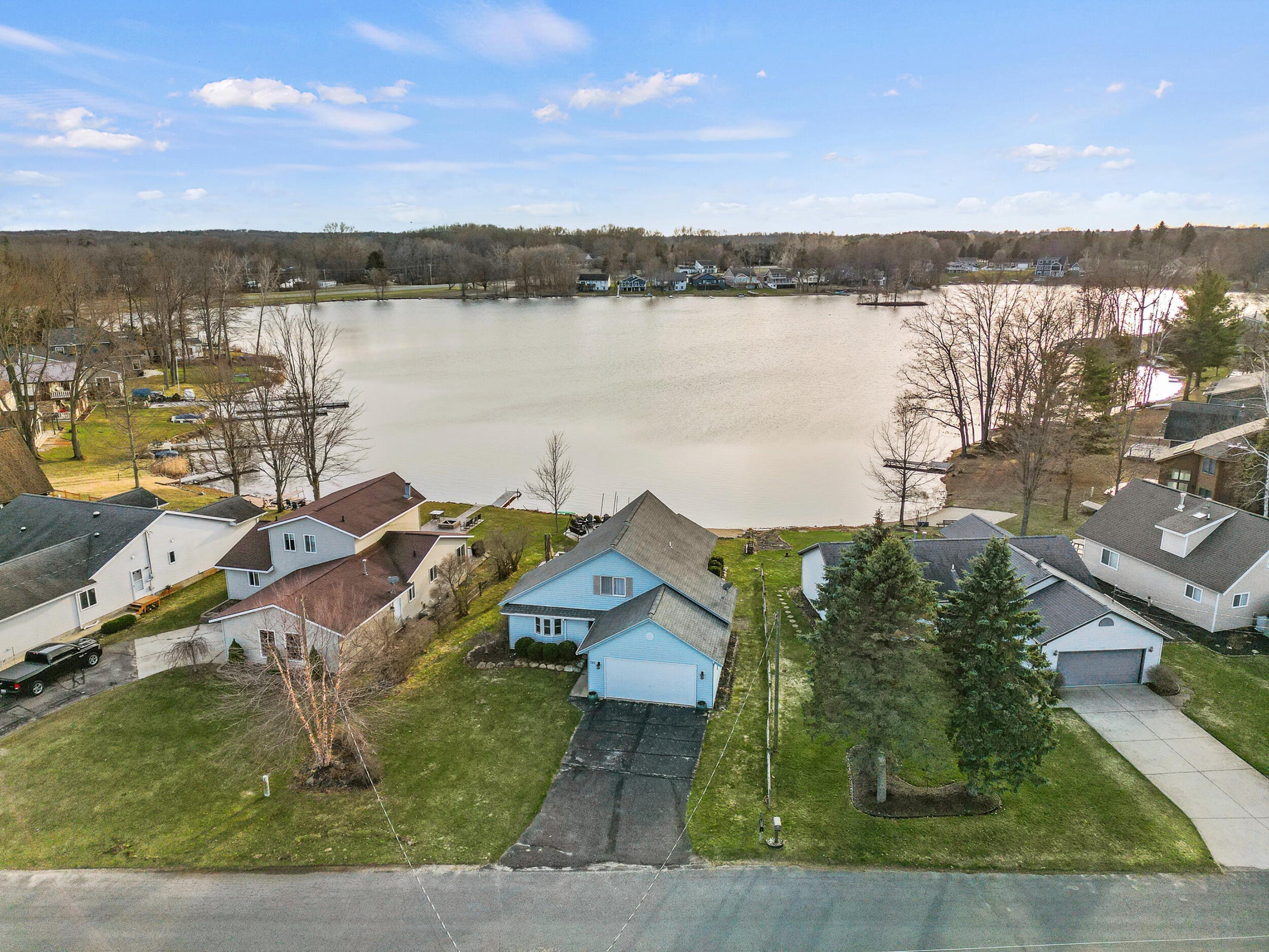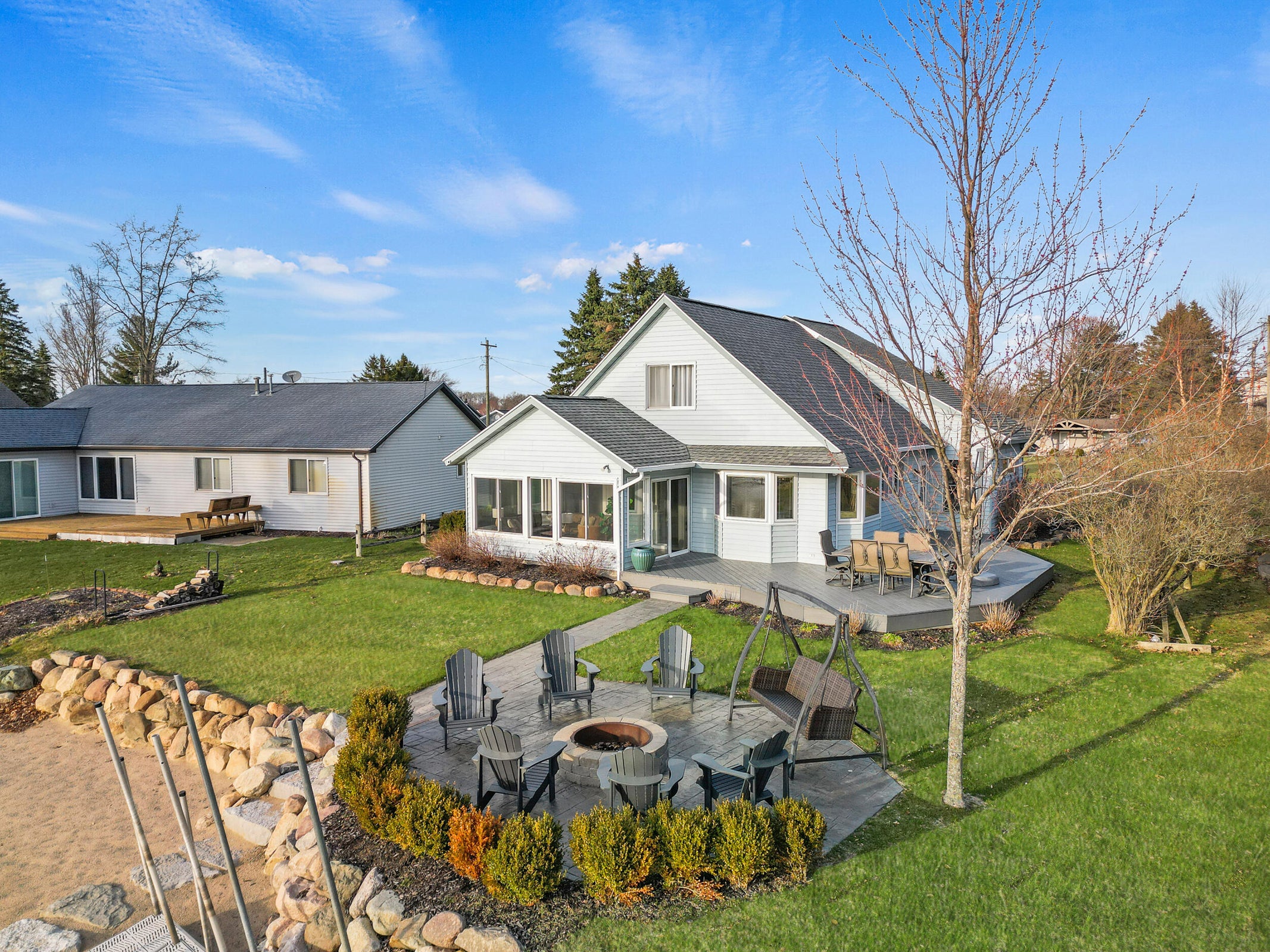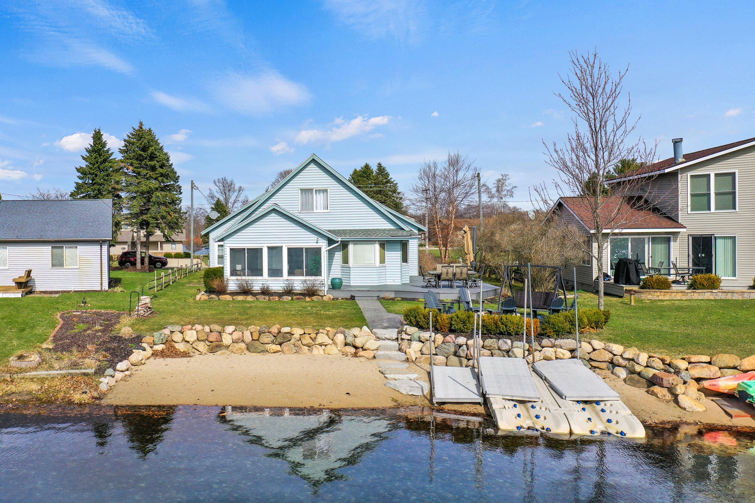 Prime waterfront in the heart of the Canadian Lakes resort. Located in west central Michigan and private to members and their guests, this home is ideally located between the Canadian Lakes shopping area and Tullymore Golf Resort. Originally built in 1986 with updates in 1990 and a complete overhaul from 2023-2025, this classic chalet blends timeless character with a clean, contemporary feel. Main level living is a plus with a primary bedroom and laundry. The upper level boasts two large bedrooms and a spacious second bathroom making this ideal for guests. Large and deep closets offer the always important storage.A four-season sunroom captures panoramic water views while the home sits on a quiet, no-wake stretch with all-sports activity just around the peninsula. The kitchen shines with quartzite tops, center island, and Bosch and Samsung appliances. LVP flooring and Berber carpet throughout add style. Exterior highlights include a massive 1,000 sq ft deck, stamped concrete patio, fire pit, and beautifully landscaped shoreline with boulders and flagstone steps leading to your sandy beach. This is potentially a turn-key opportunity for the right buyer. Just pack your suitcase, head north and enjoy! Experience all that Canadian Lakes offers--54 holes of golf, clubhouses, dining, and more. Some amenities are inclusive with membership and so inquire within.