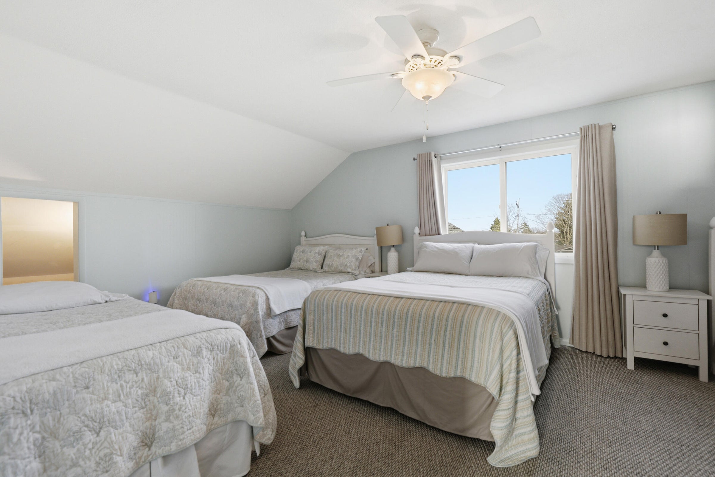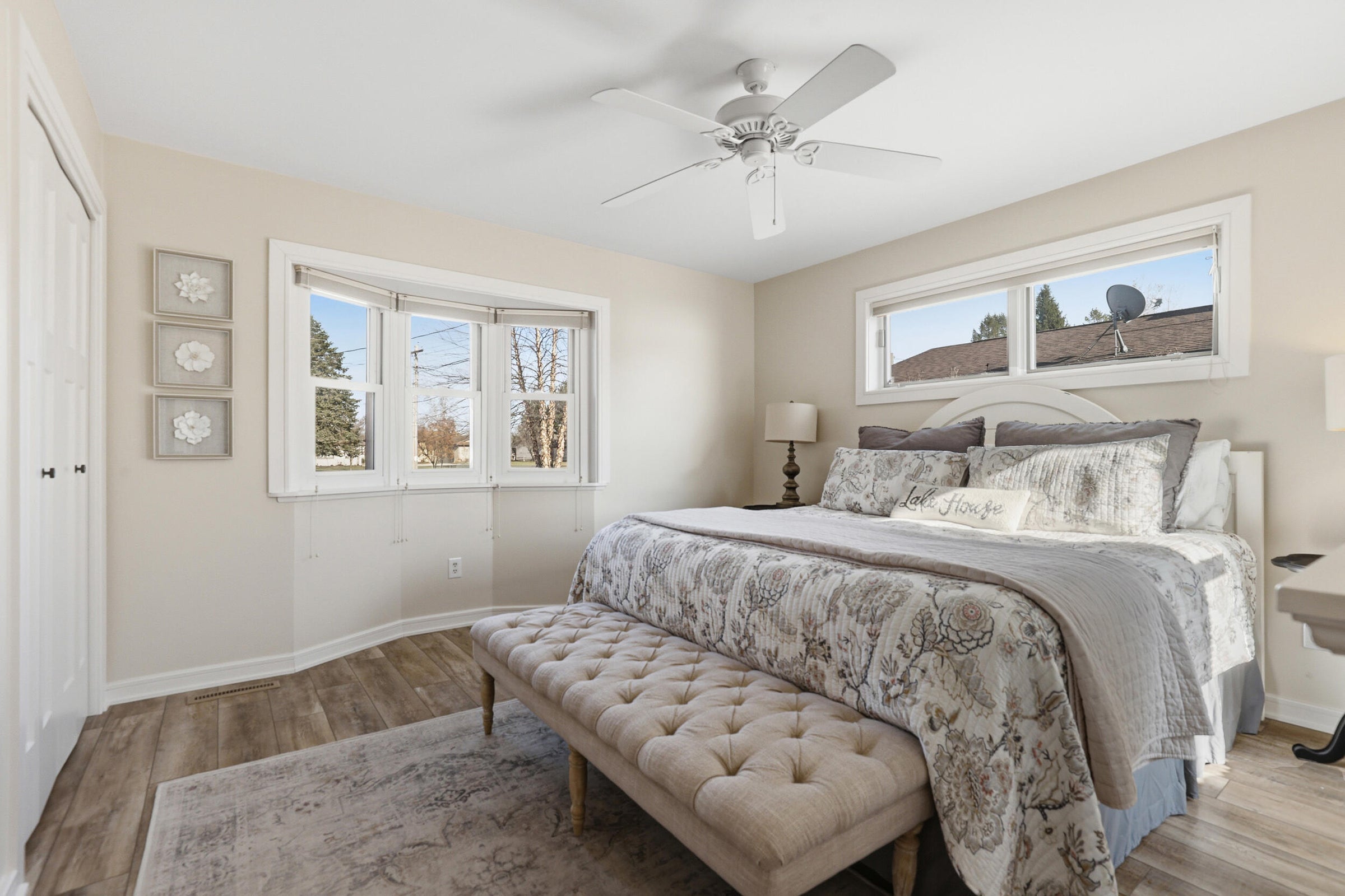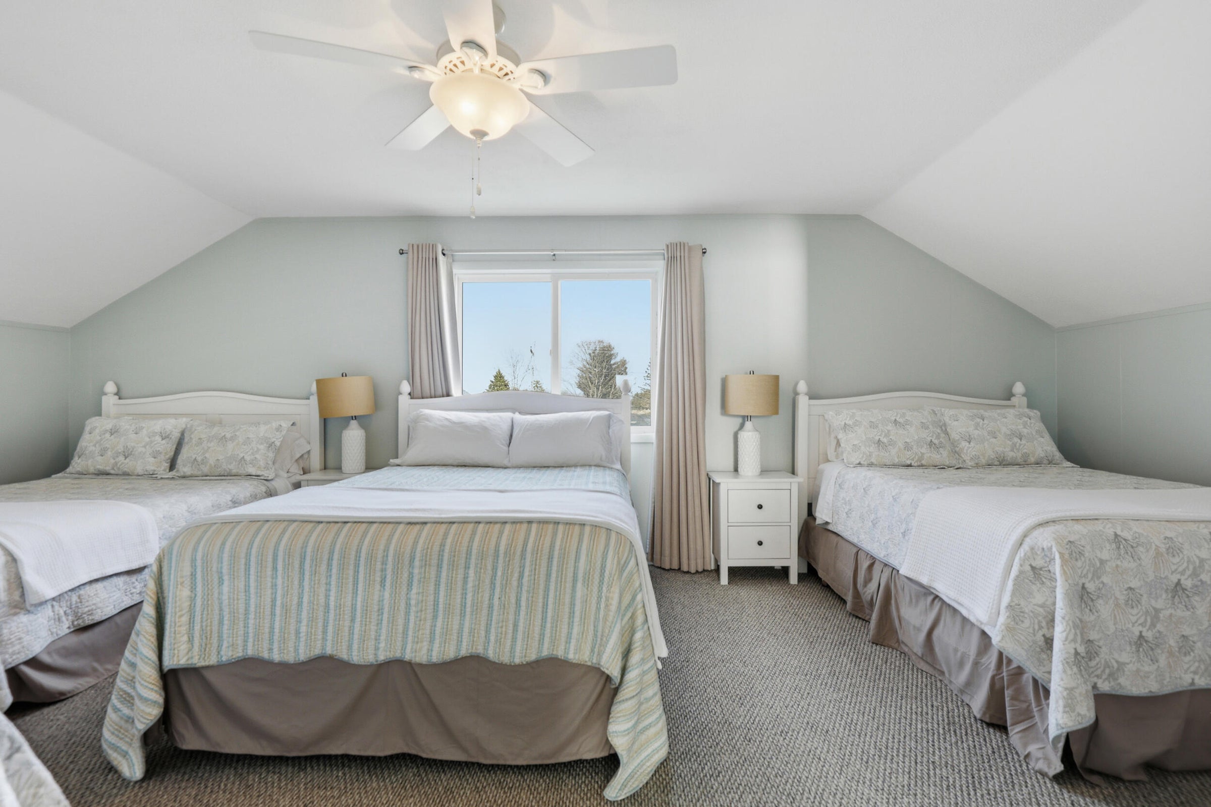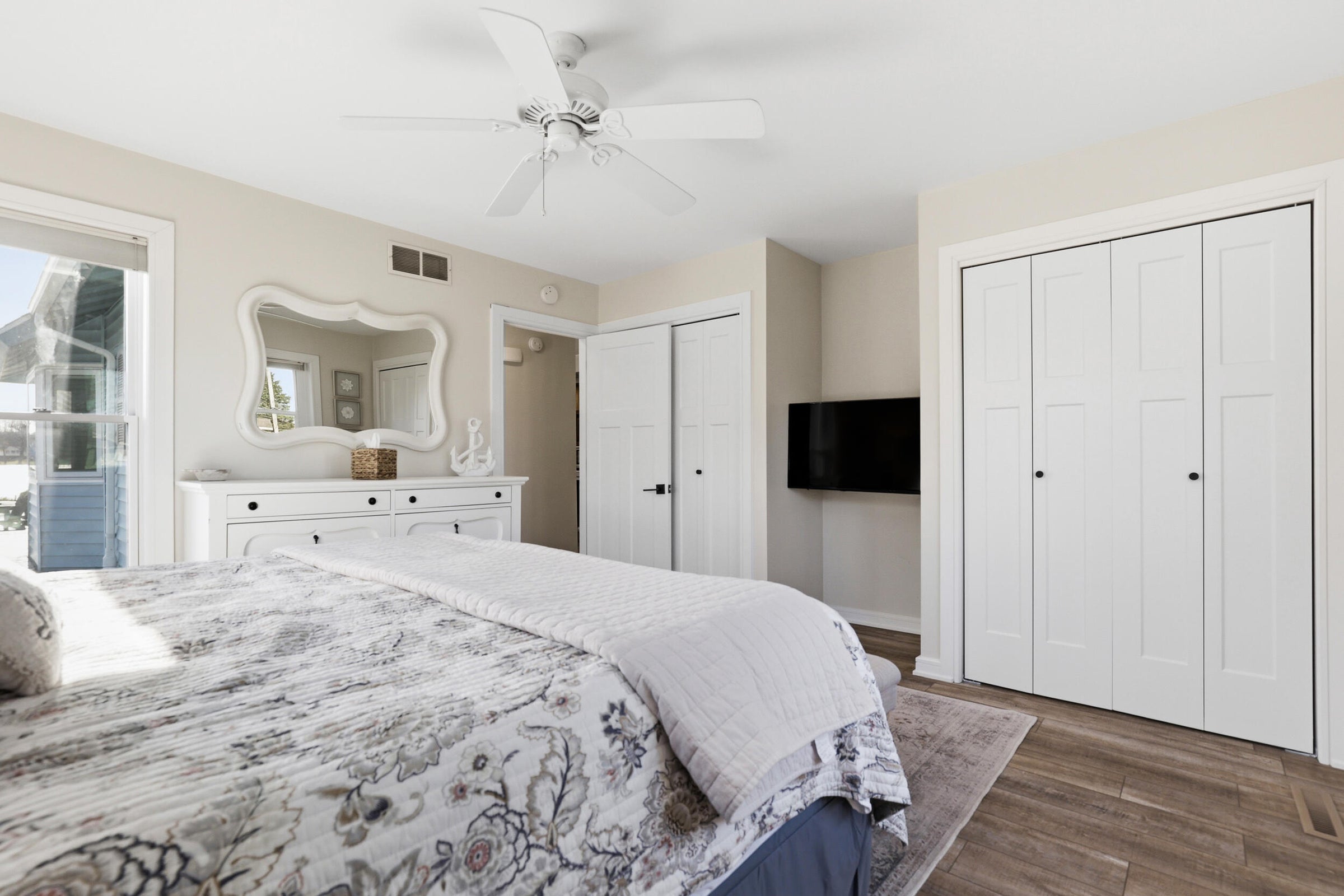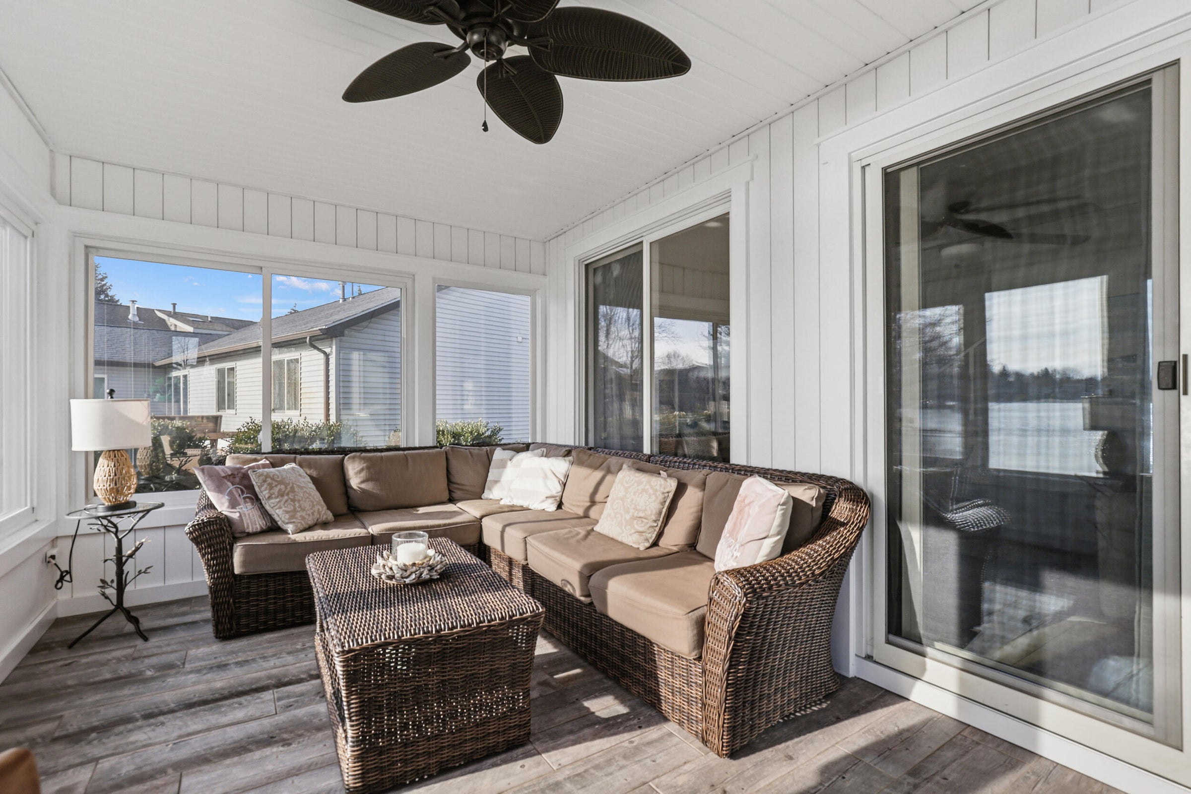 Prime waterfront in the heart of the Canadian Lakes resort. Located in west central Michigan and private to members and their guests, this home is ideally located between the Canadian Lakes shopping area and Tullymore Golf Resort. Originally built in 1986 with updates in 1990 and a complete overhaul from 2023-2025, this classic chalet blends timeless character with a clean, contemporary feel. Main level living is a plus with a primary bedroom and laundry. The upper level boasts two large bedrooms and a spacious second bathroom making this ideal for guests. Large and deep closets offer the always important storage.A four-season sunroom captures panoramic water views while the home sits on a quiet, no-wake stretch with all-sports activity just around the peninsula. The kitchen shines with quartzite tops, center island, and Bosch and Samsung appliances. LVP flooring and Berber carpet throughout add style. Exterior highlights include a massive 1,000 sq ft deck, stamped concrete patio, fire pit, and beautifully landscaped shoreline with boulders and flagstone steps leading to your sandy beach. This is potentially a turn-key opportunity for the right buyer. Just pack your suitcase, head north and enjoy! Experience all that Canadian Lakes offers--54 holes of golf, clubhouses, dining, and more. Some amenities are inclusive with membership and so inquire within.