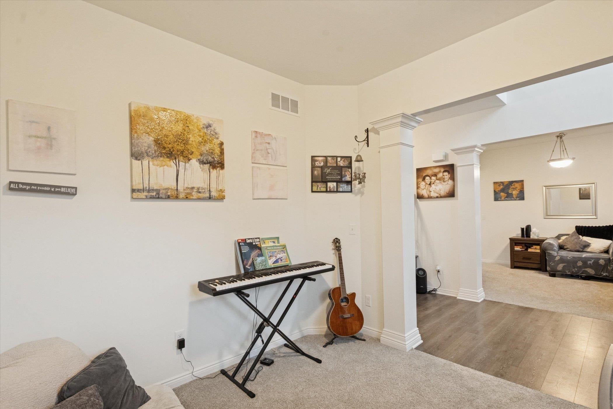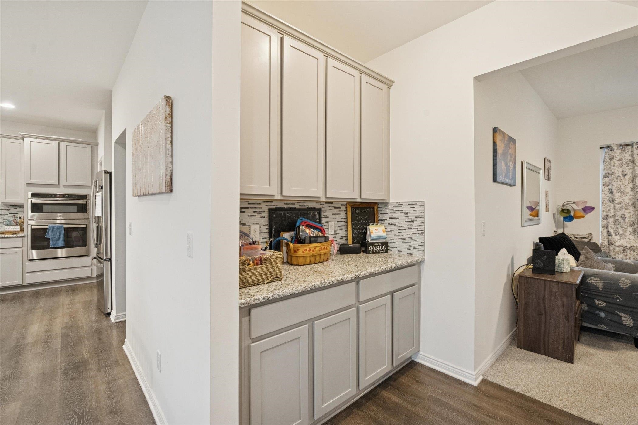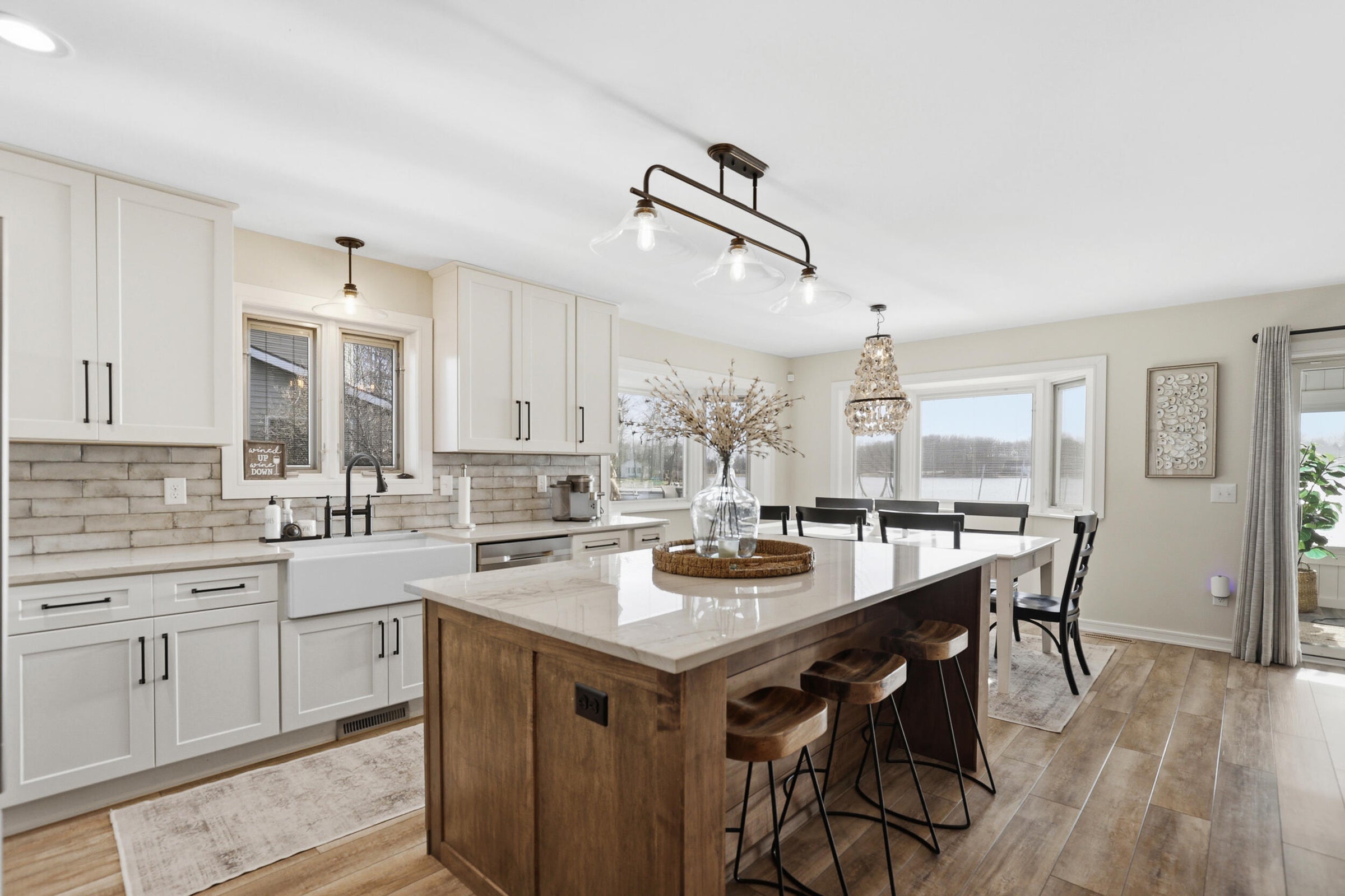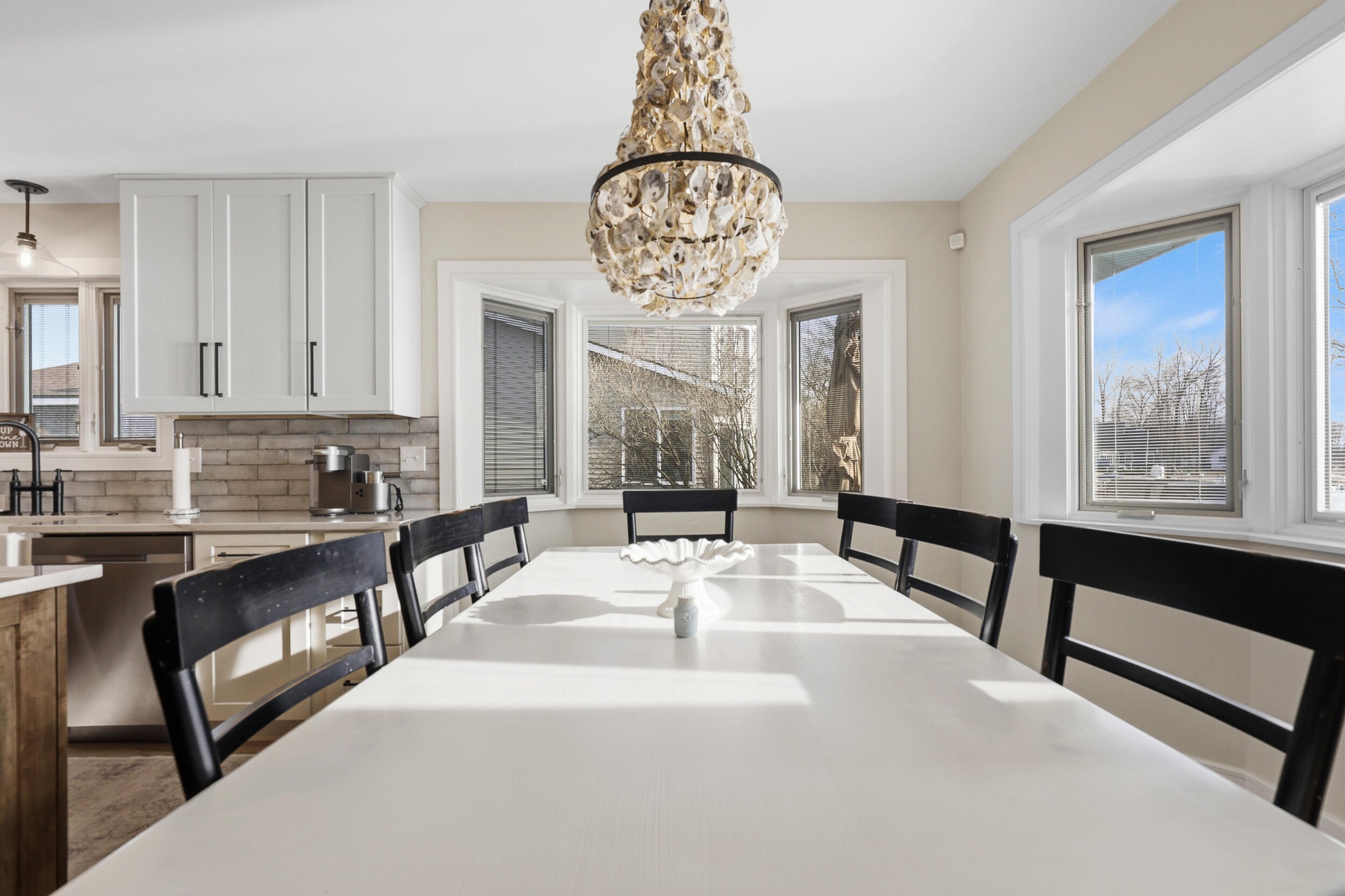 Room for the whole family! This beautifully designed home features rich wood flooring throughout and a stunning double-sided fireplace that anchors both the living and dining rooms. The updated chefs kitchen is a true centerpiece, showcasing gorgeous countertops, newer appliances, a built-in refrigerator, Wolf gas cooktop, and a spacious island perfect for gathering and entertaining.