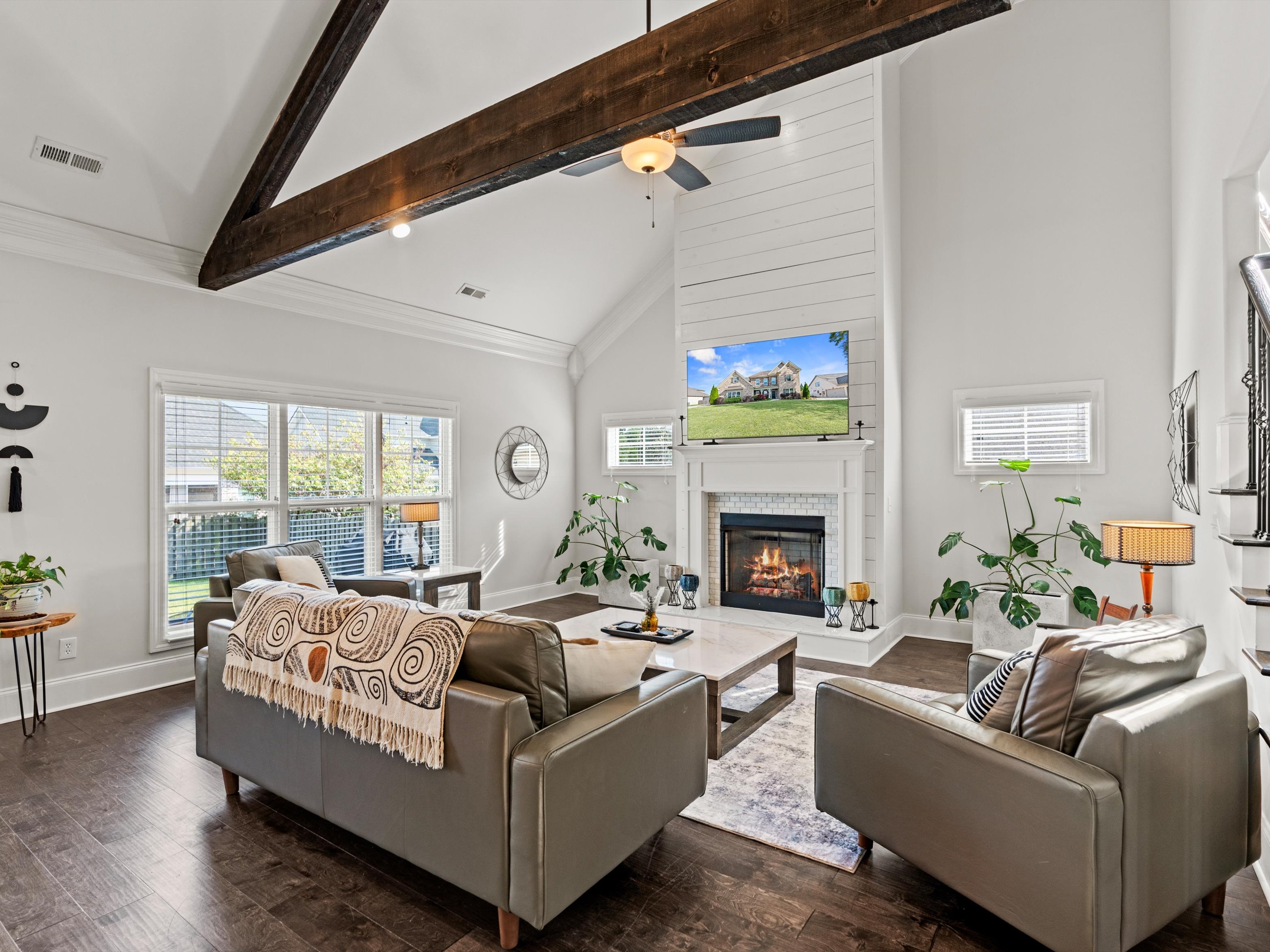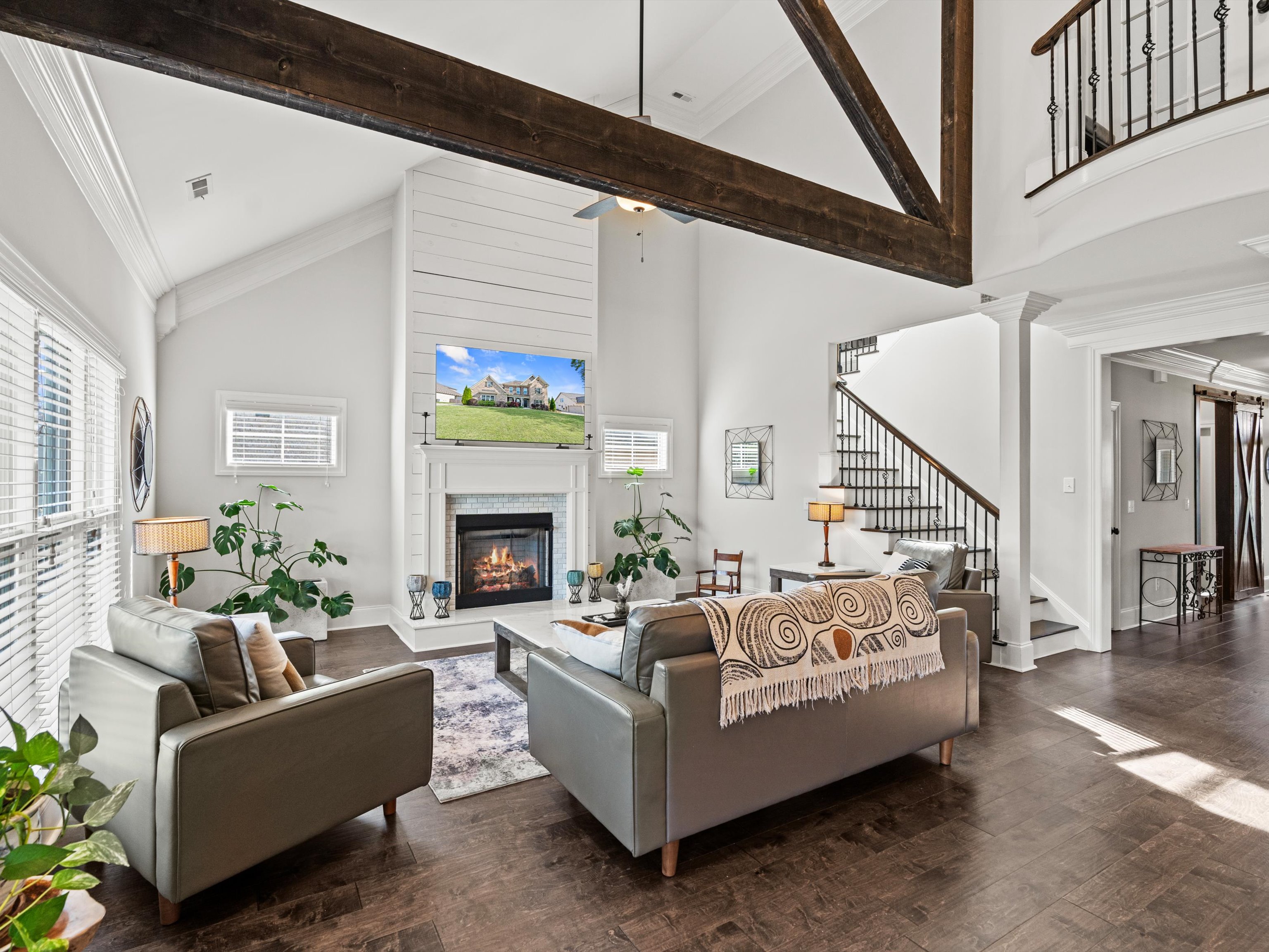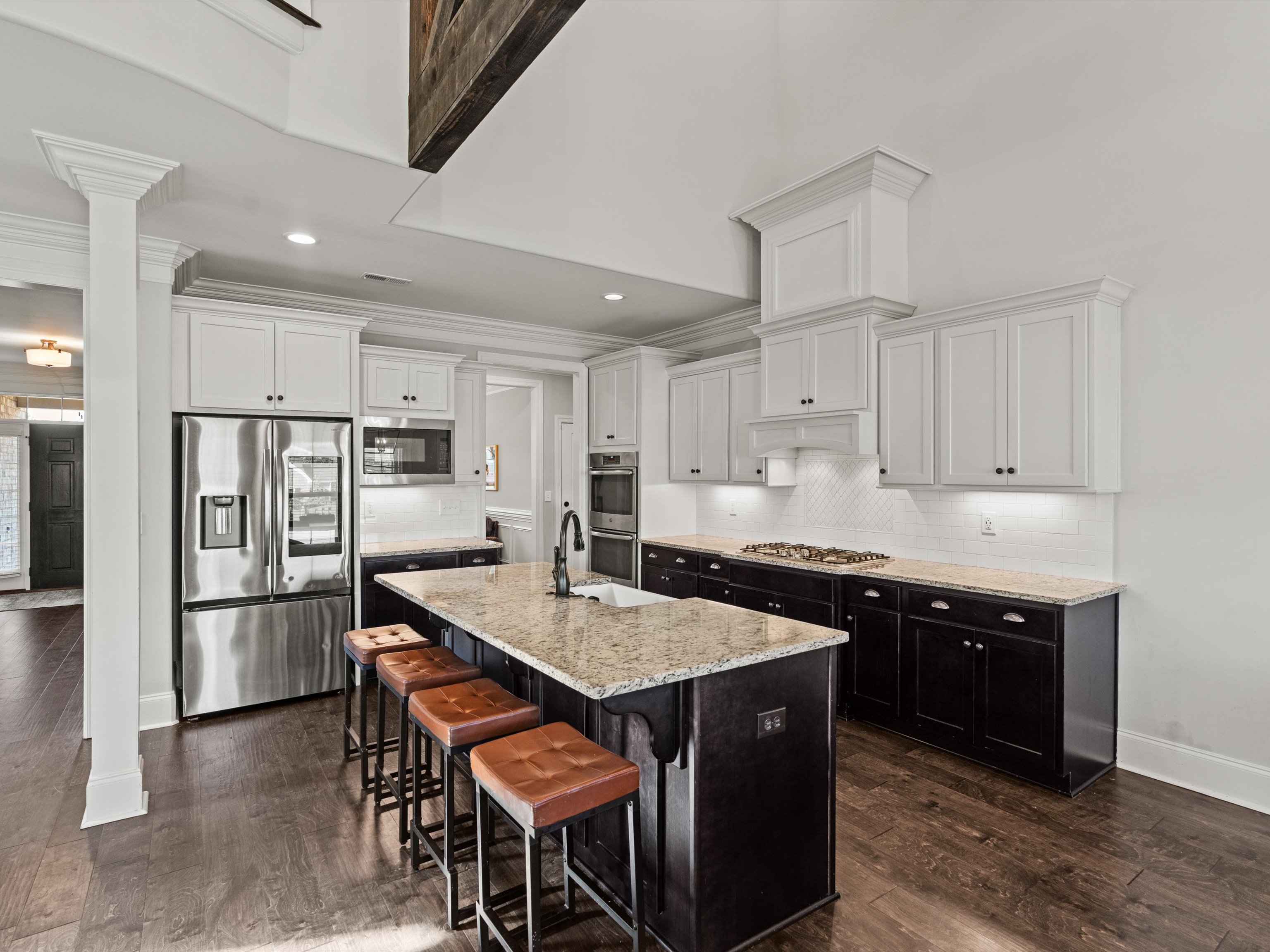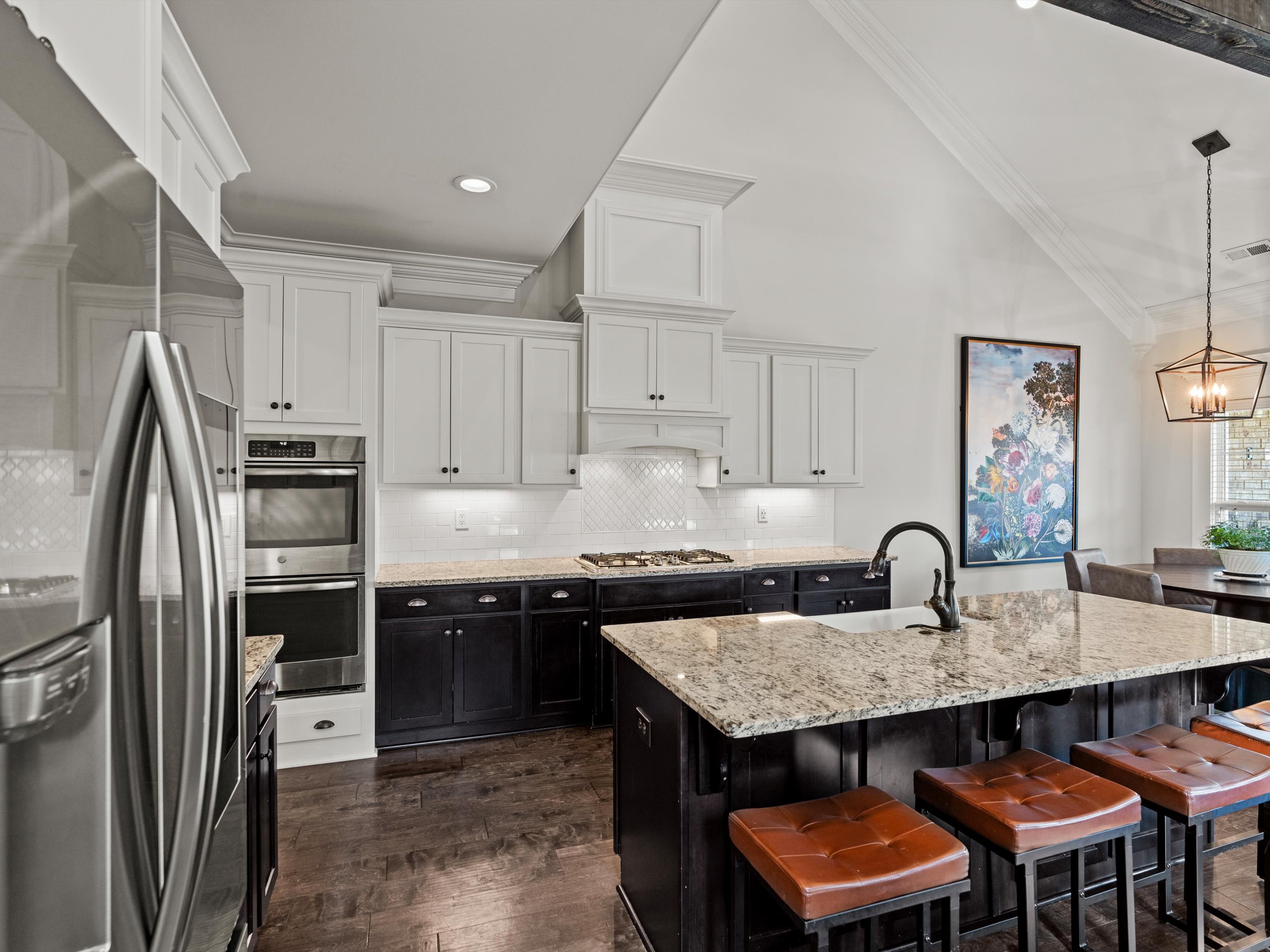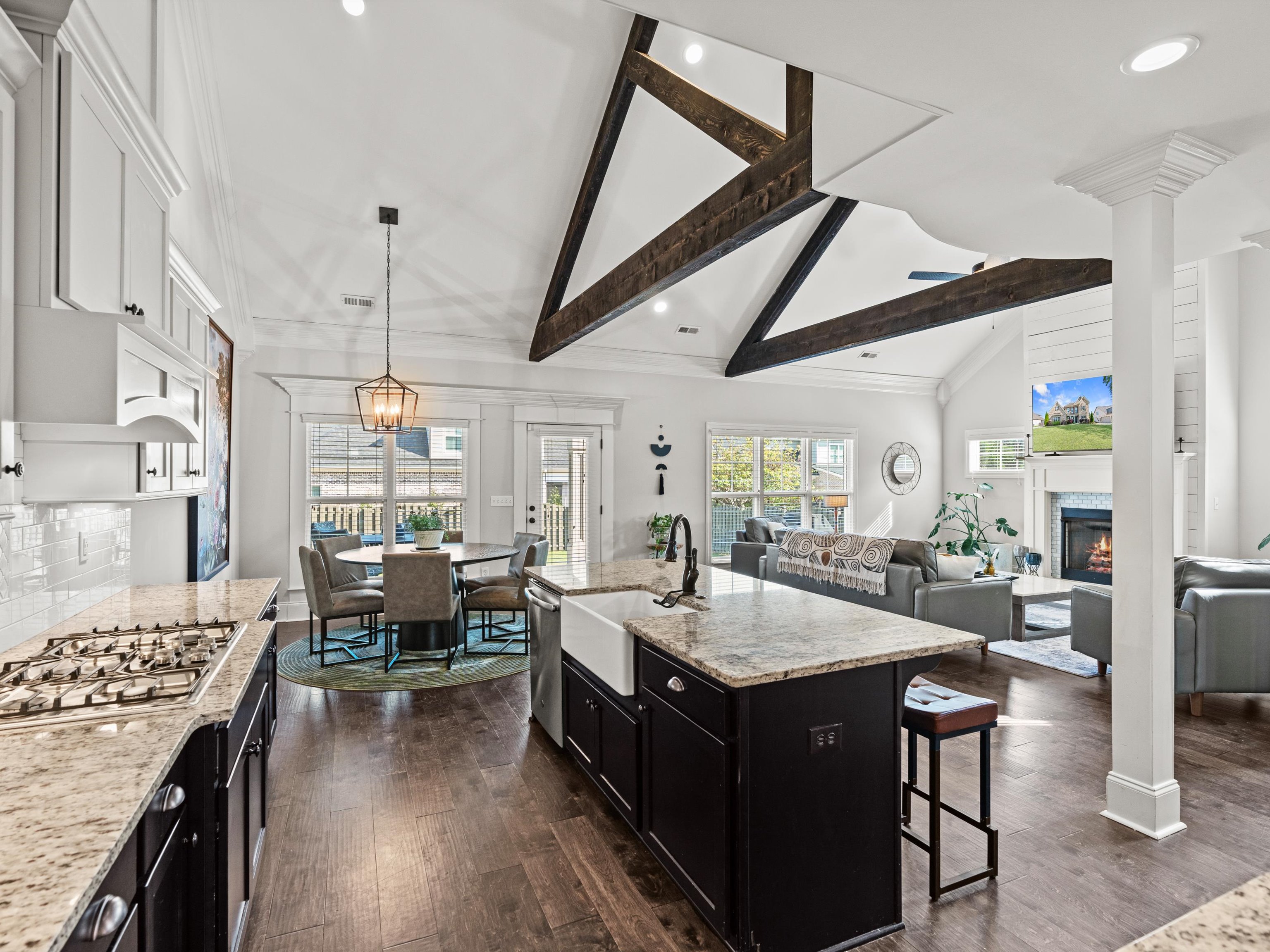 Located in prestigious McMullen Cove, this beautifully designed 4BR/3BA home offers 3,420 sqft with a spacious open layout, main-level primary suite, and large upstairs bonus room. The gourmet kitchen features granite countertops, island seating, and abundant cabinetry, opening to a vaulted living area with fireplace and custom trim details.
