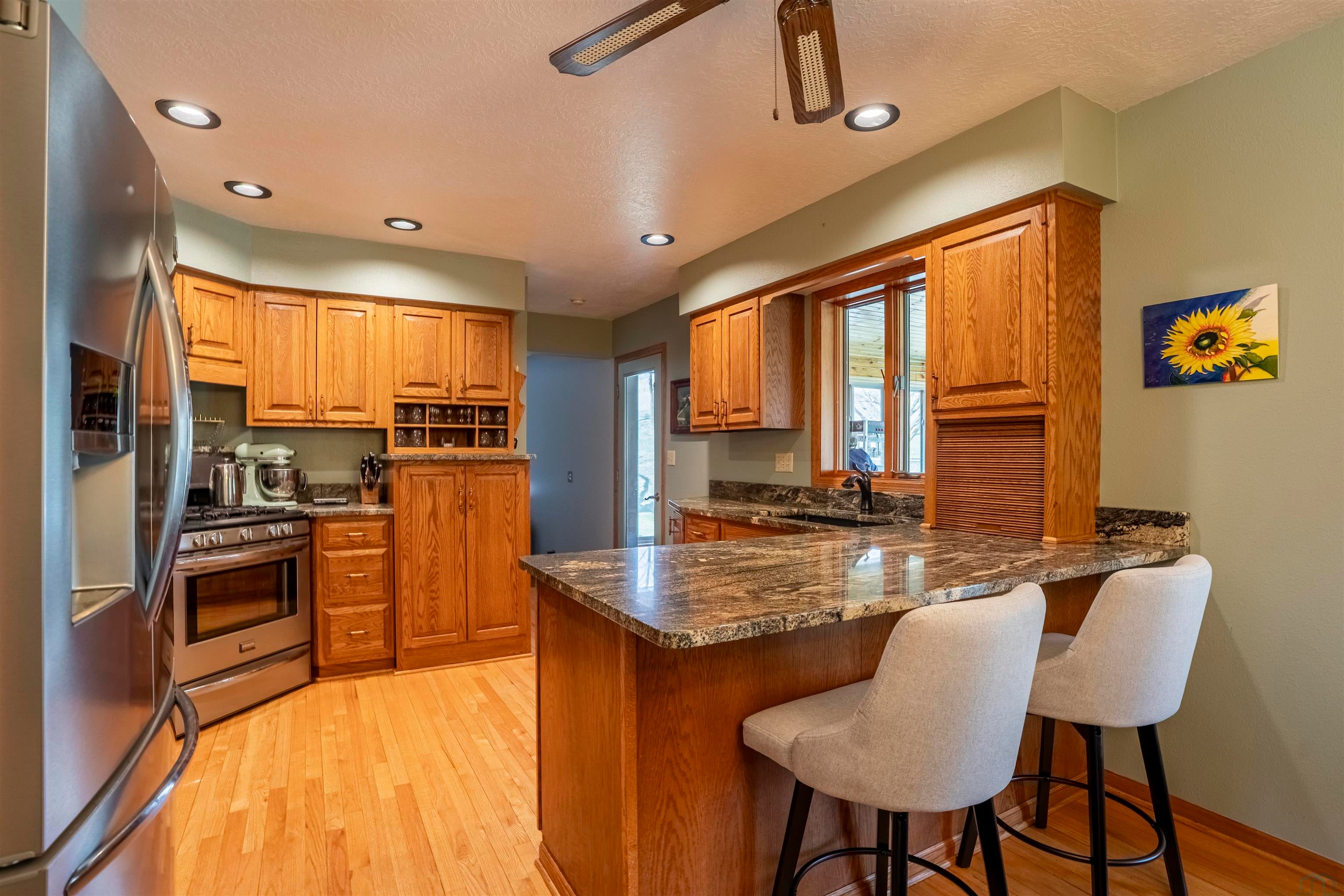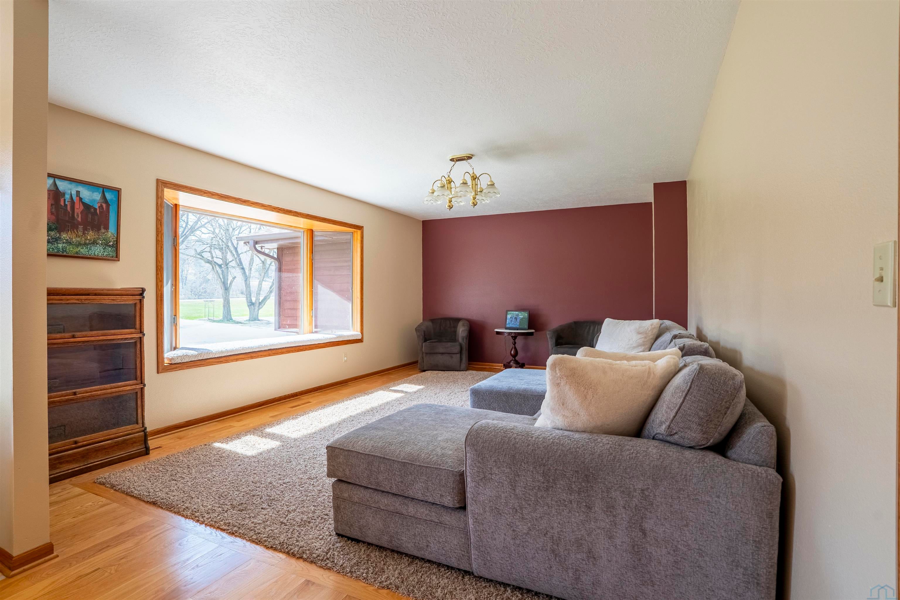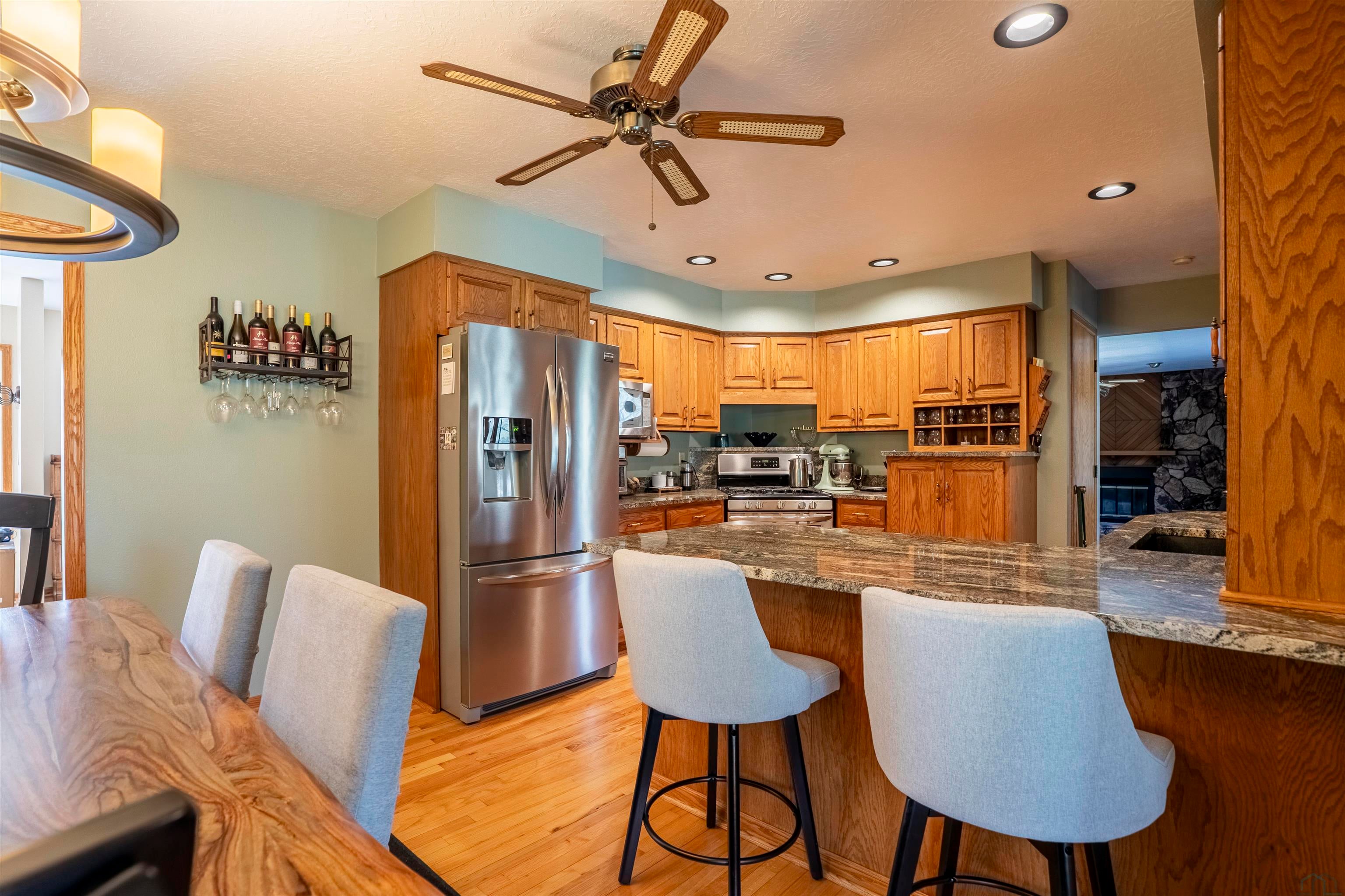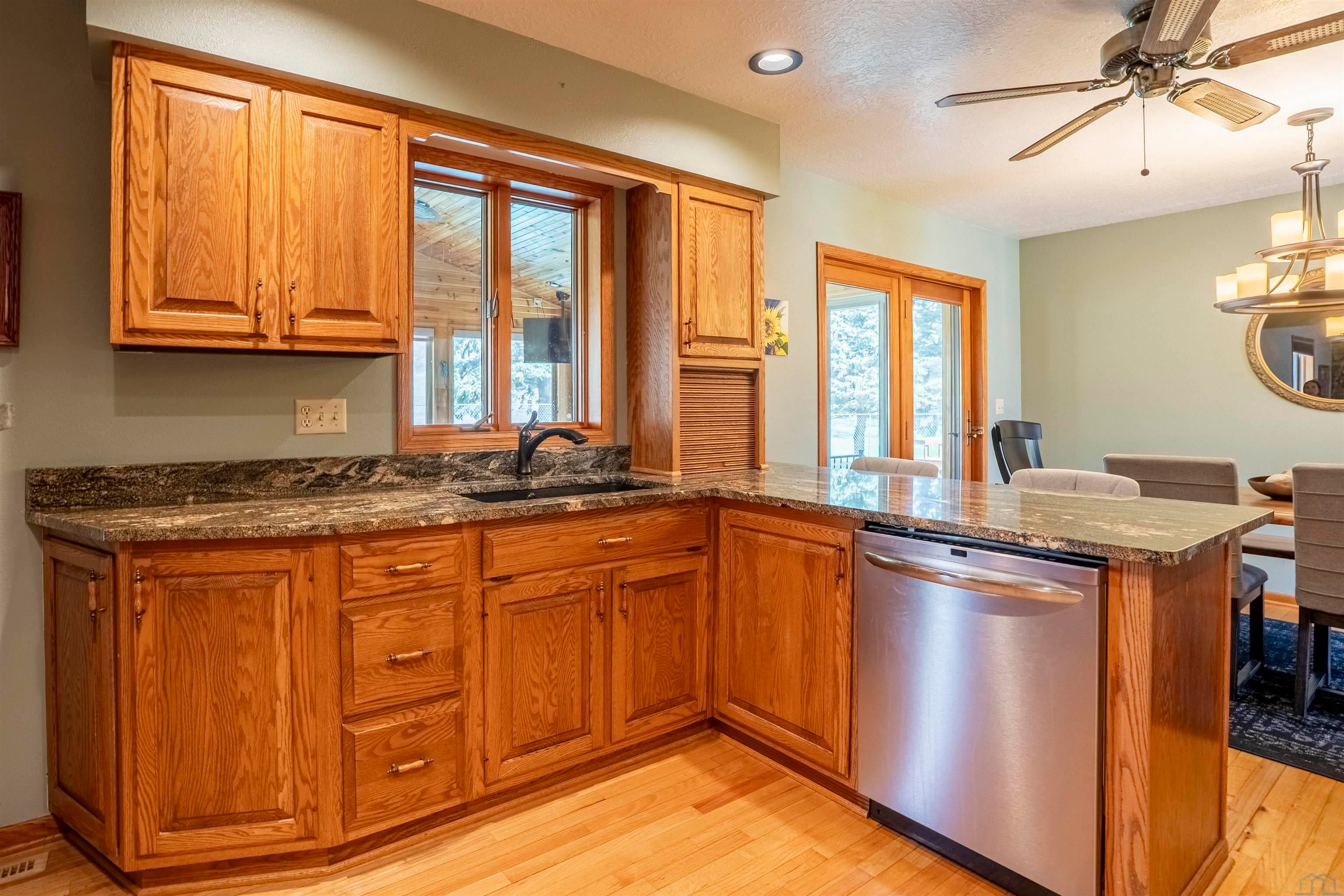 This home is currently listed as a Delayed Showing. Under no circumstances will any showings be allowed until 4/24/26 @ 9am. The seller will not review or accept any proposed Purchase Agreements/Offers until the conclusion of the first showing date. Seller is doing some cleaning and repairs prior to showings starting.Beautifully crafted 1-story walk-out home in the highly desirable South Central Ames Riggenberg Park development, offering 4 bedrooms, 3 bathrooms, and a 3-car attached garage. Designed with comfort and functionality in mind, the main floor features hickory hardwood floors, wide hallways, and an open-concept layout ideal for everyday living and entertaining.The spacious great room showcases vaulted ceilings, a gas fireplace, and seamless flow between the living area, informal dining space, and kitchen, with direct access to the covered deck. The kitchen is a standout with a large center island, maple cabinetry, granite countertops, corner pantry, and stainless steel appliances including a gas range (electric option available). A south-facing window over the sink fills the space with natural light.Privately located off the great room, the primary suite features tray ceilings, excellent natural light, and backyard views, along with a ? bath offering a large tiled shower, dual vanities, and an oversized walk-in closet. Two additional bedrooms, a full bath with tile floors and maple vanity, plus a main floor laundry and mudroom with garage access complete the main level. The garage is equipped with a built-in breaker for a future whole-home generator.The walkout lower level includes a large family room with wet bar and seating area, flowing into a custom theater room with stadium seating and sound-treated walls and ceiling. A fourth bedroom, full bath, and generous storage/mechanical space with radon mitigation add versatility.Enjoy the fully fenced backyard, mature landscaping, and fruit trees including cherry, apple, and a very productive especially tasty peach tree. The covered deck and concrete patio offer incredible western sunset views and back to Iowa State-owned green space for lasting privacy. Conveniently located near ISU, the Veterinary School, Research Park, Workiva, and easy access to Des Moines. Sellers are offering a 1-year AHS home warranty for added peace of mind. Annual HOA fees cover common area maintenance and park equipment by the beautiful pond just steps away to the south.