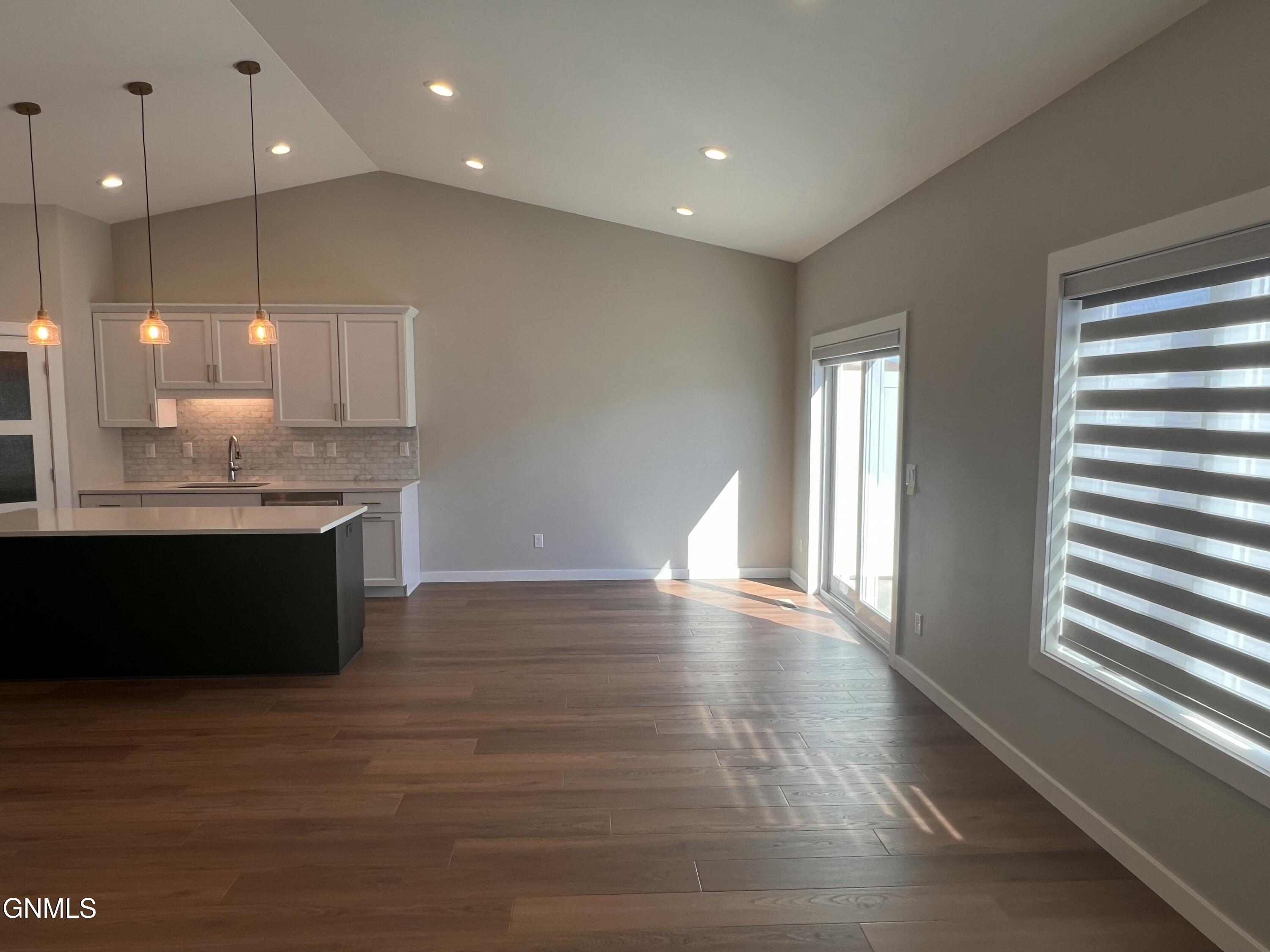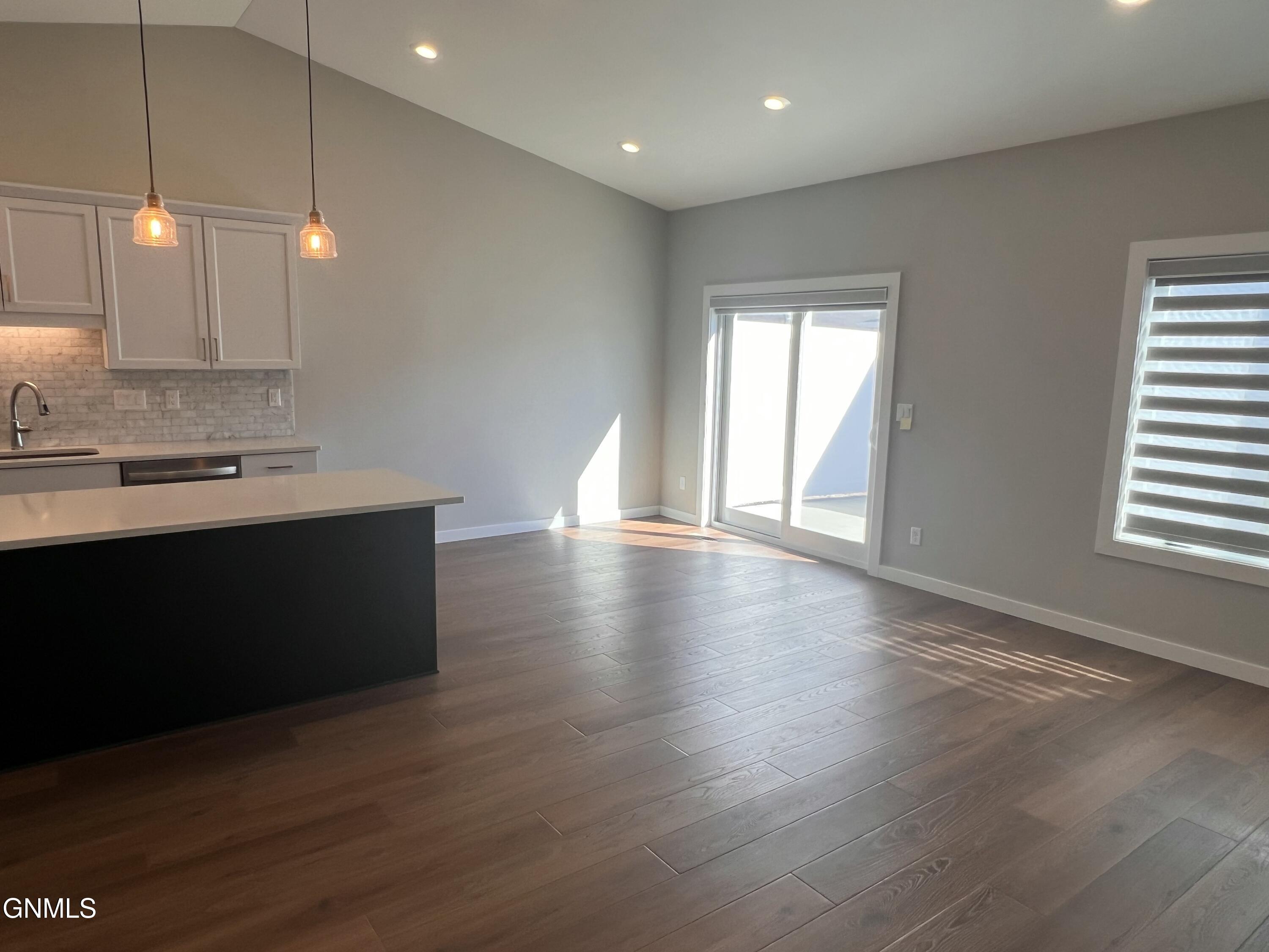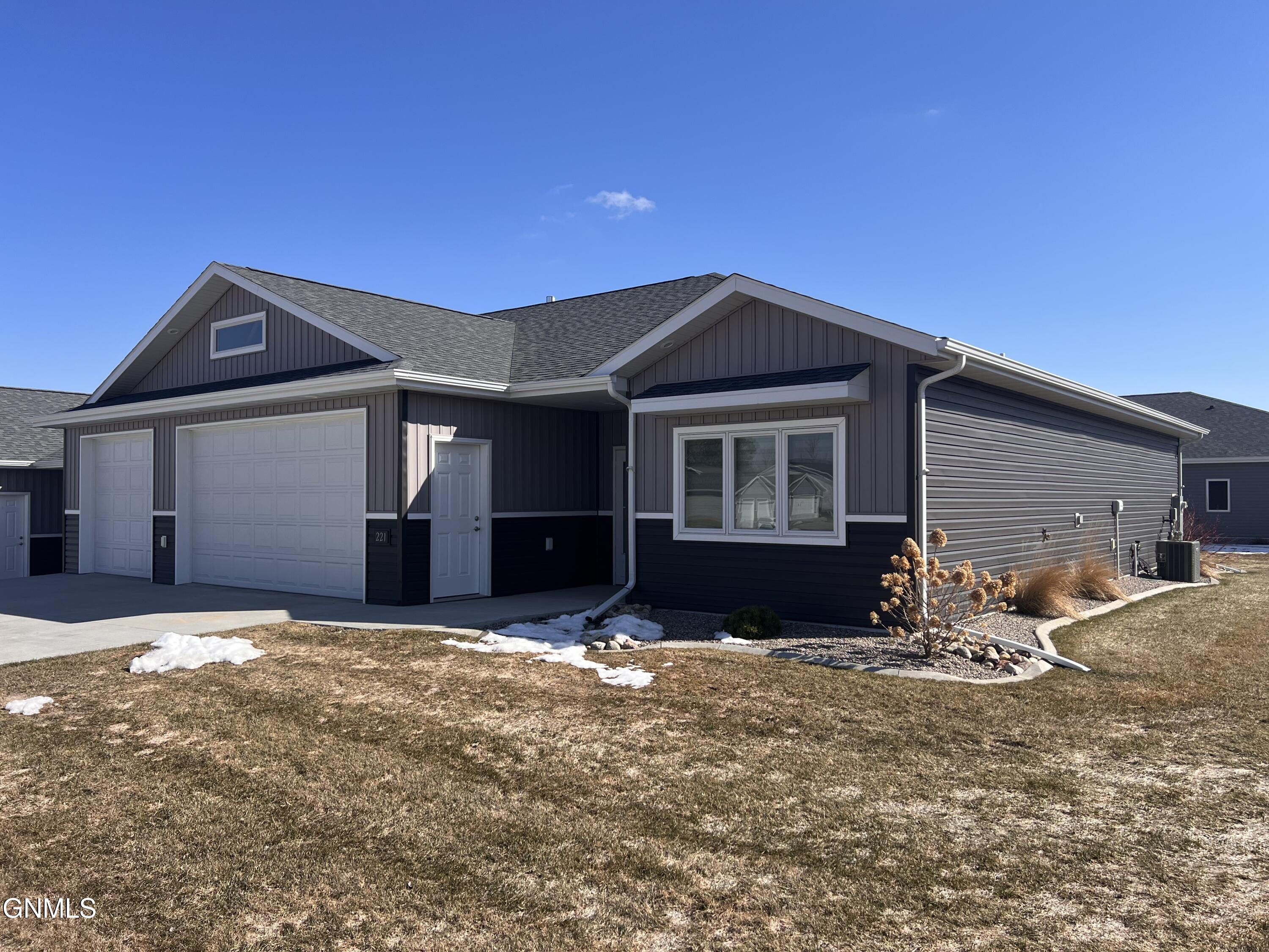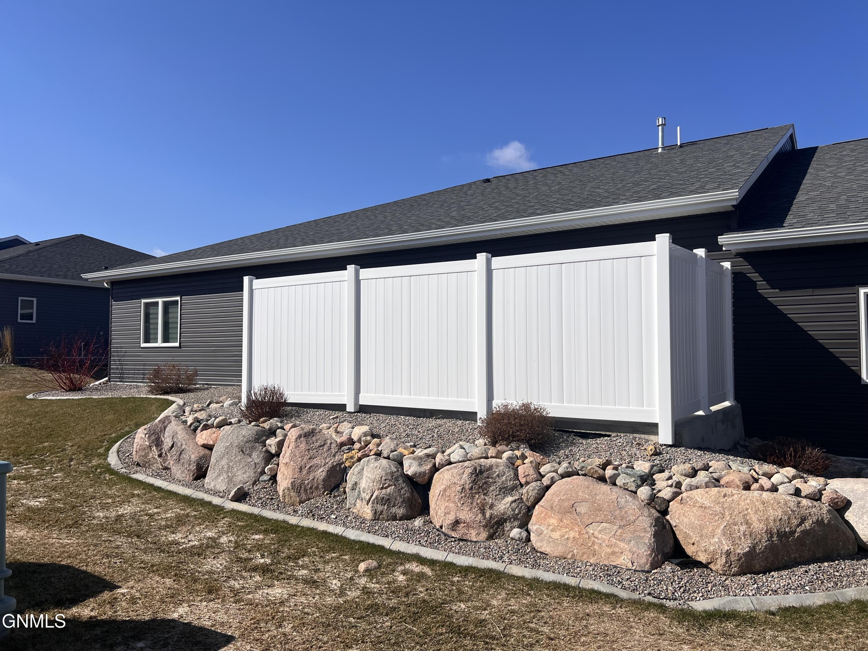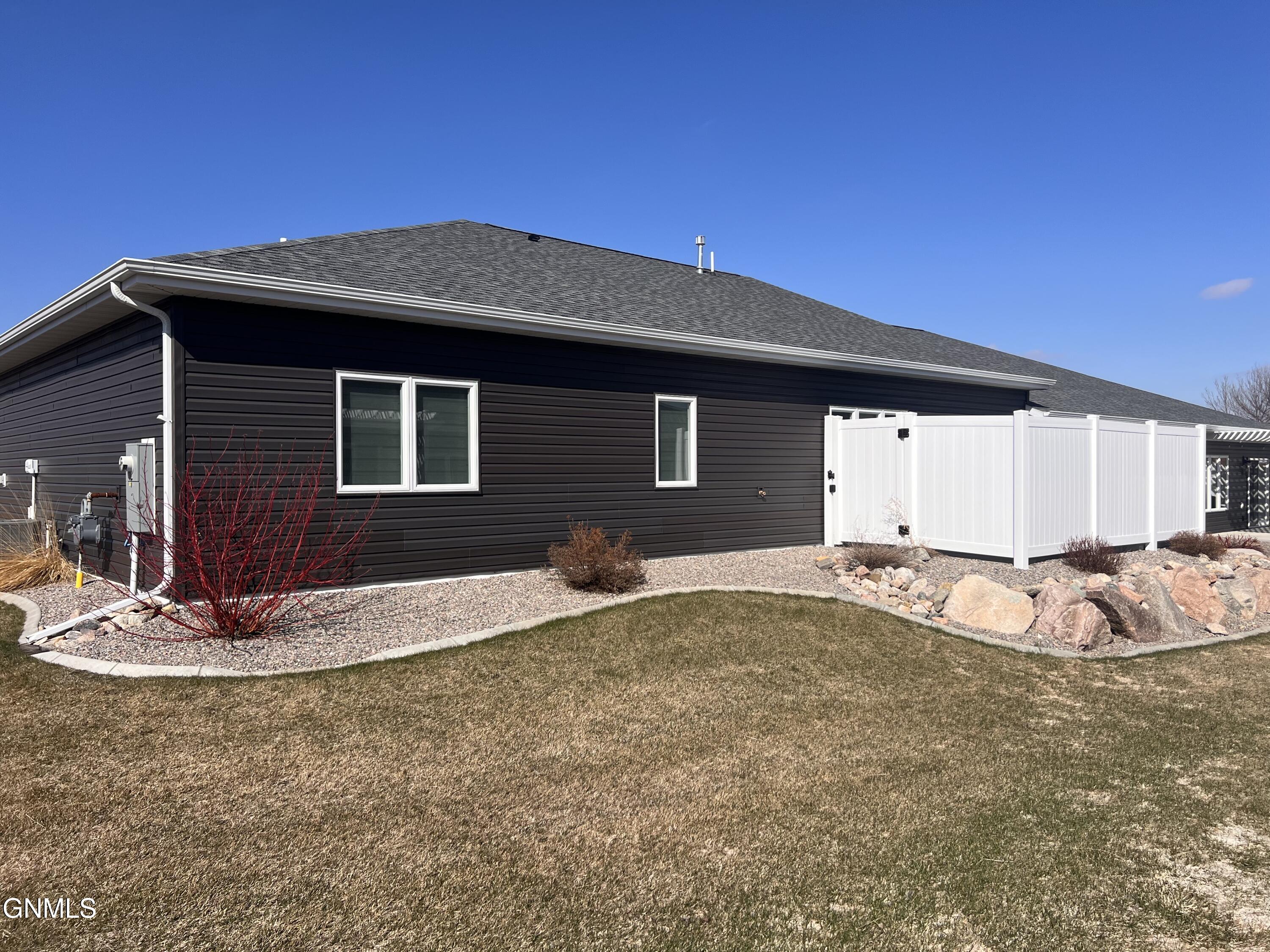 Patio home with no steps, located in north Bismarck. This maintenance free townhome community is for residents 55 & older. The homeowners association takes care of snow removal & lawn maintenance. The kitchen features include white cabinets, stone countertops, tile backsplash, under cabinet lighting, pantry, & a large island with seating & dark contrasting wood cabinets. The kitchen, dining, & living room have an open floor plan with vaulted ceiling & recessed lighting. The primary bedroom has a walk-in closet, large private bathroom with step-in shower, vanity with stone counter tops & dual sinks. There are 2 additional bedrooms, full bathroom, & a large dedicated laundry room with washer & dryer. A convenient mud room is located next to the garage with a built-in bench. The impressive 3-stall heated garage has an epoxy floor, storm/storage room, utility room, & hot/cold water with garage sink. The yard has underground sprinklers, rock landscaping, & a patio with privacy fence. Great opportunity to own this one-level home with modern high-end finishes.
