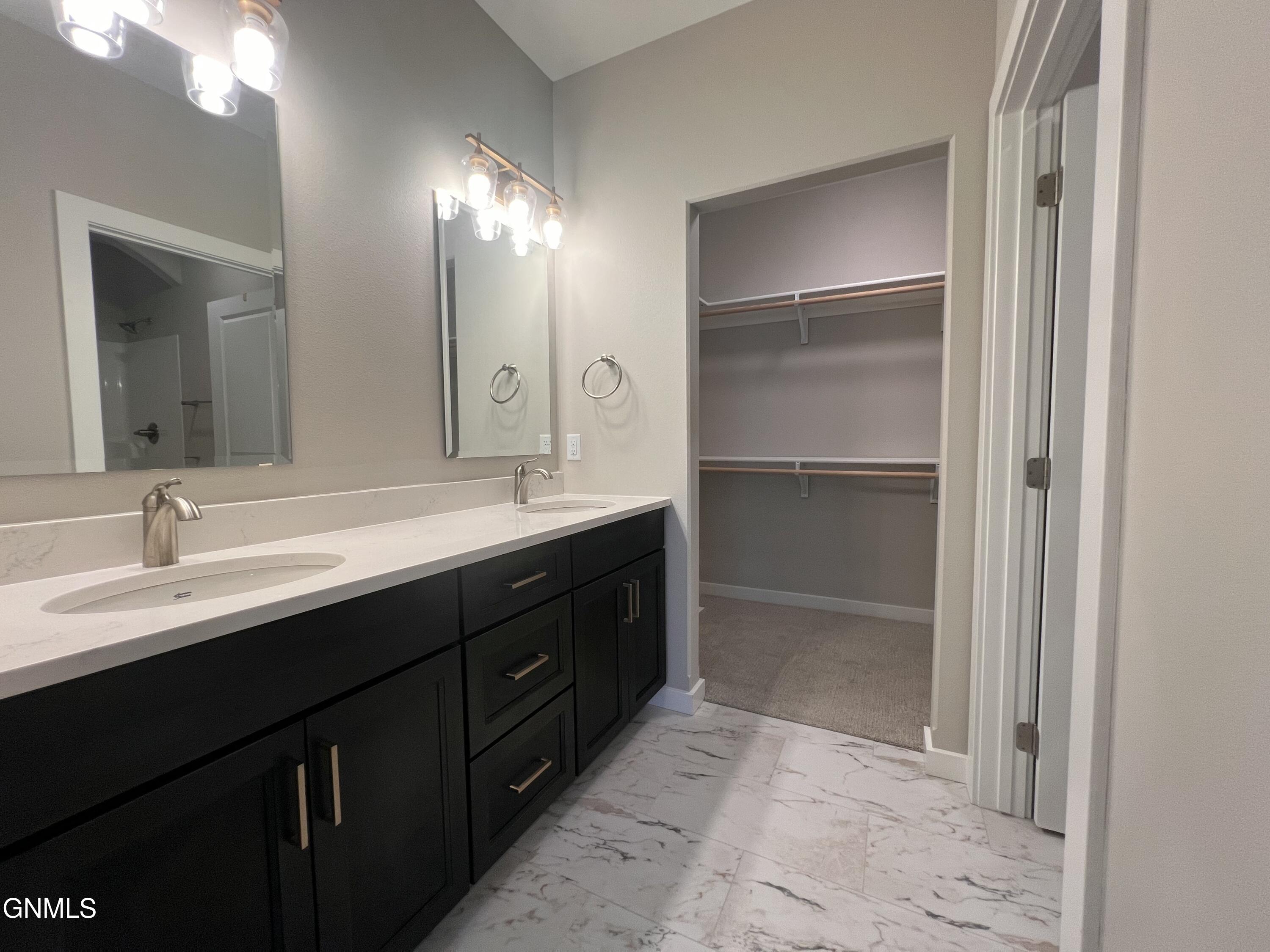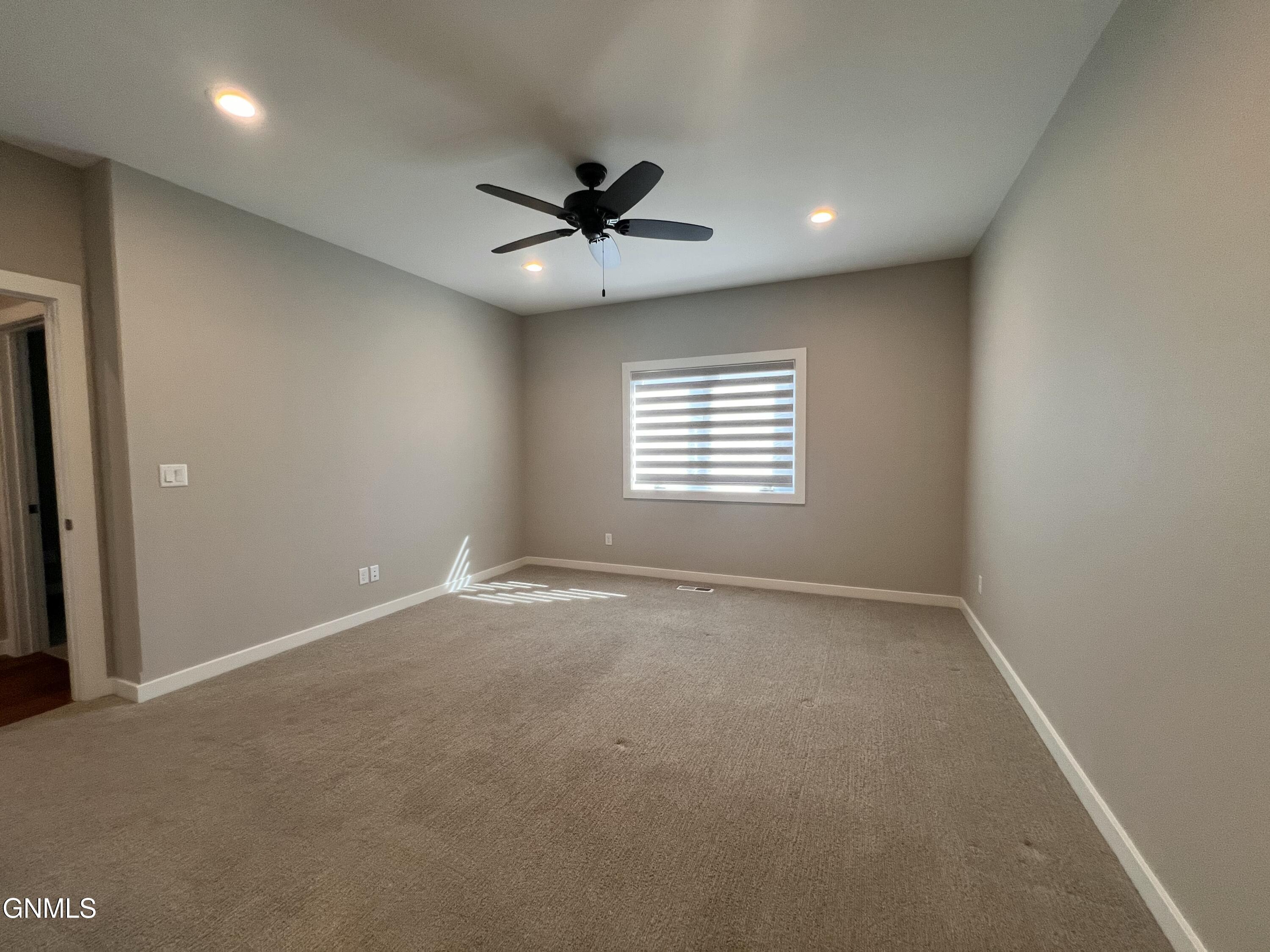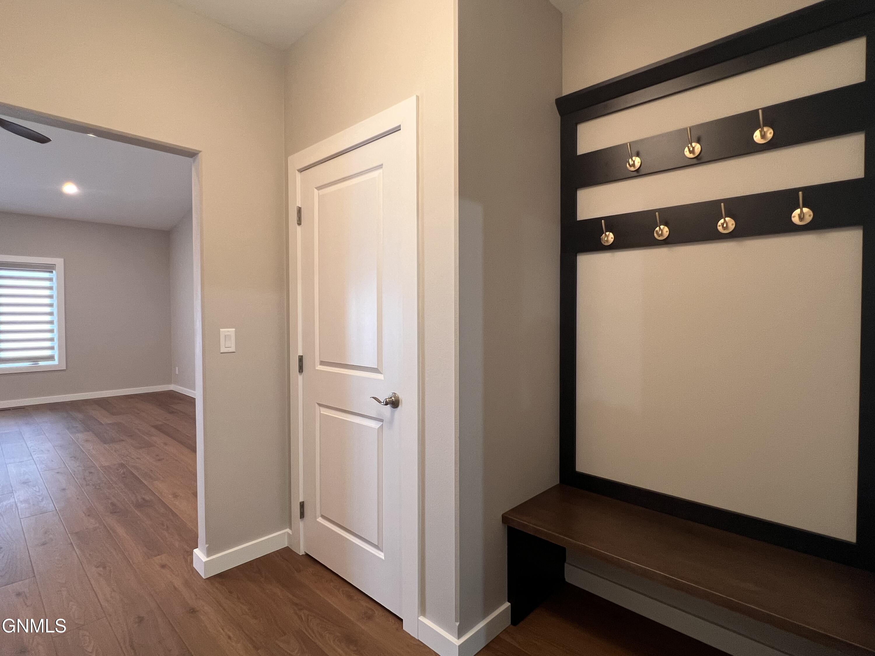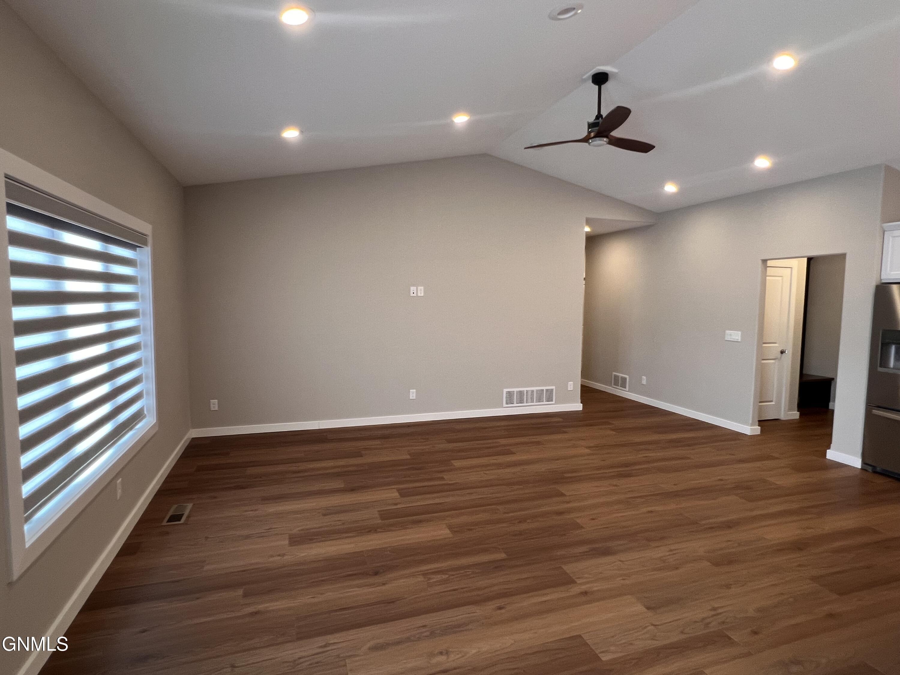 Patio home with no steps, located in north Bismarck. This maintenance free townhome community is for residents 55 & older. The homeowners association takes care of snow removal & lawn maintenance. The kitchen features include white cabinets, stone countertops, tile backsplash, under cabinet lighting, pantry, & a large island with seating & dark contrasting wood cabinets. The kitchen, dining, & living room have an open floor plan with vaulted ceiling & recessed lighting. The primary bedroom has a walk-in closet, large private bathroom with step-in shower, vanity with stone counter tops & dual sinks. There are 2 additional bedrooms, full bathroom, & a large dedicated laundry room with washer & dryer. A convenient mud room is located next to the garage with a built-in bench. The impressive 3-stall heated garage has an epoxy floor, storm/storage room, utility room, & hot/cold water with garage sink. The yard has underground sprinklers, rock landscaping, & a patio with privacy fence. Great opportunity to own this one-level home with modern high-end finishes.