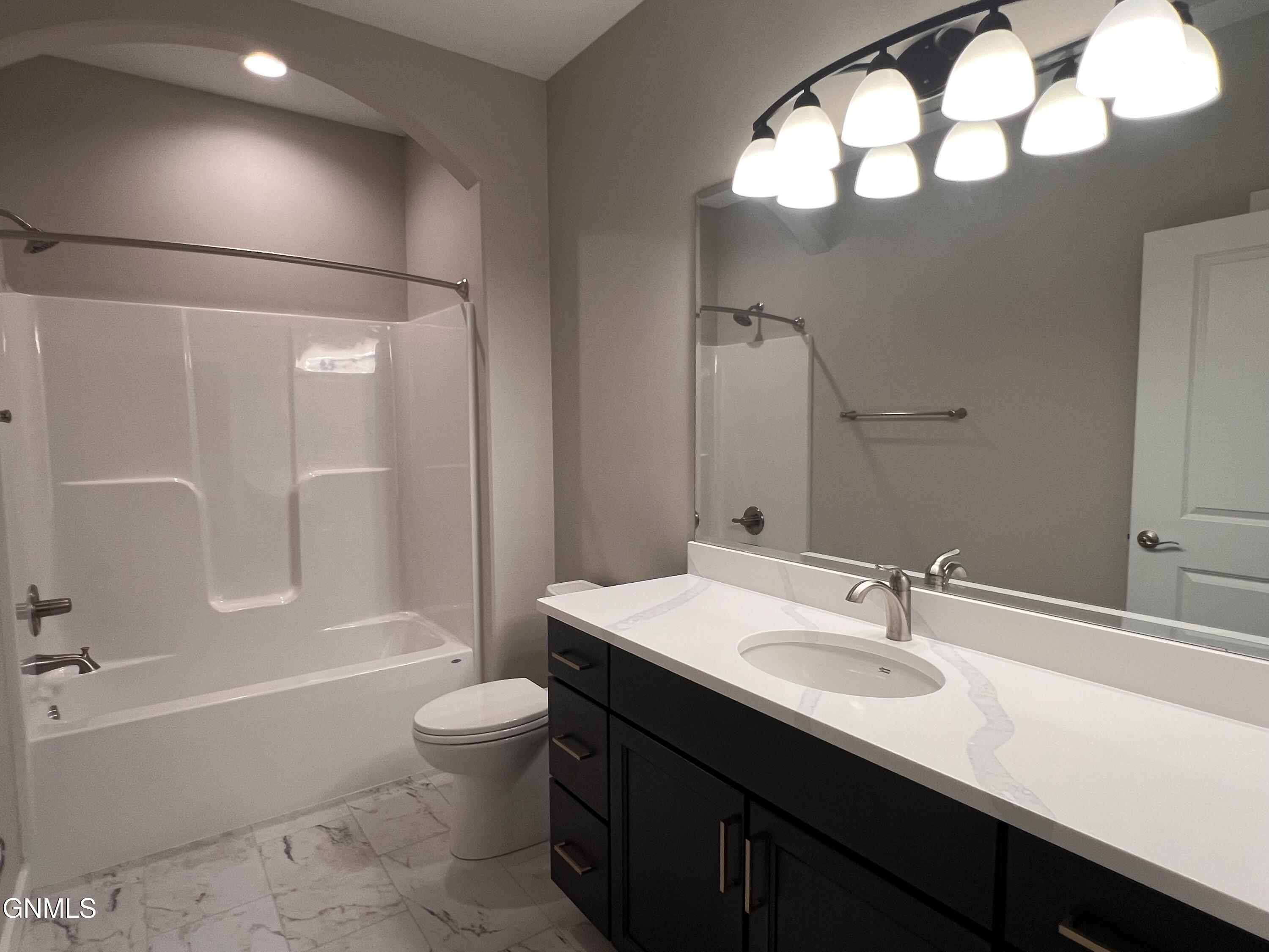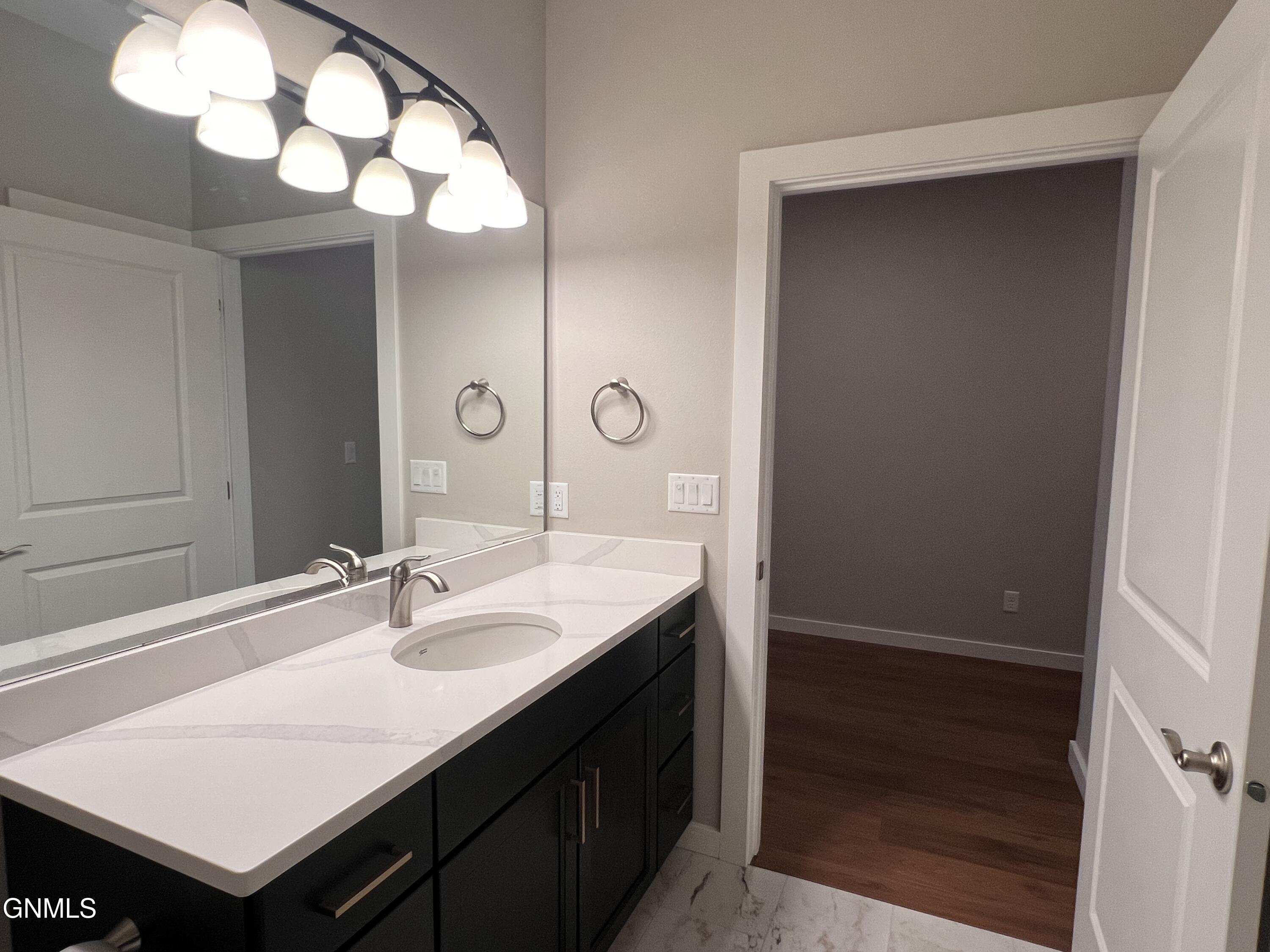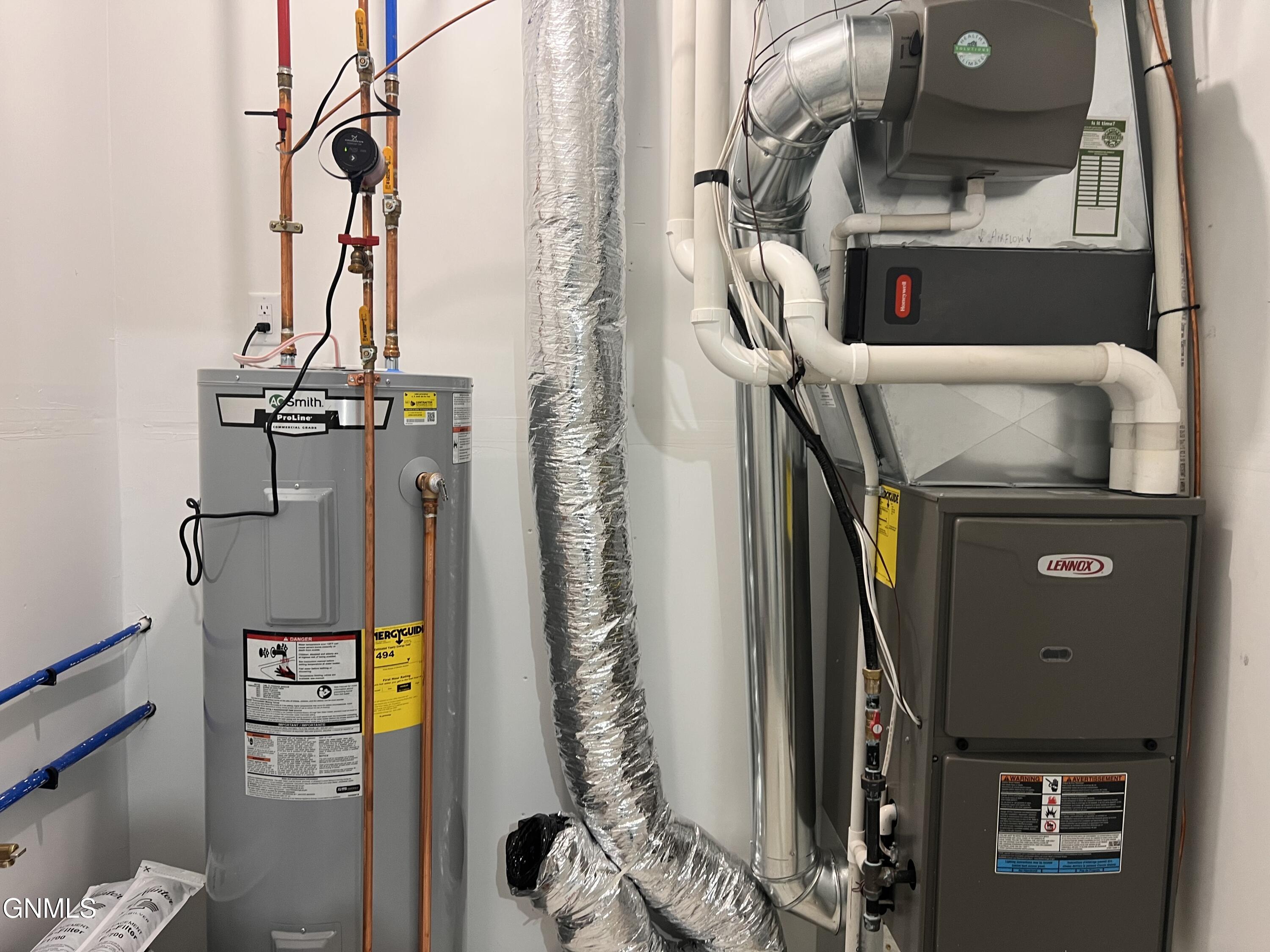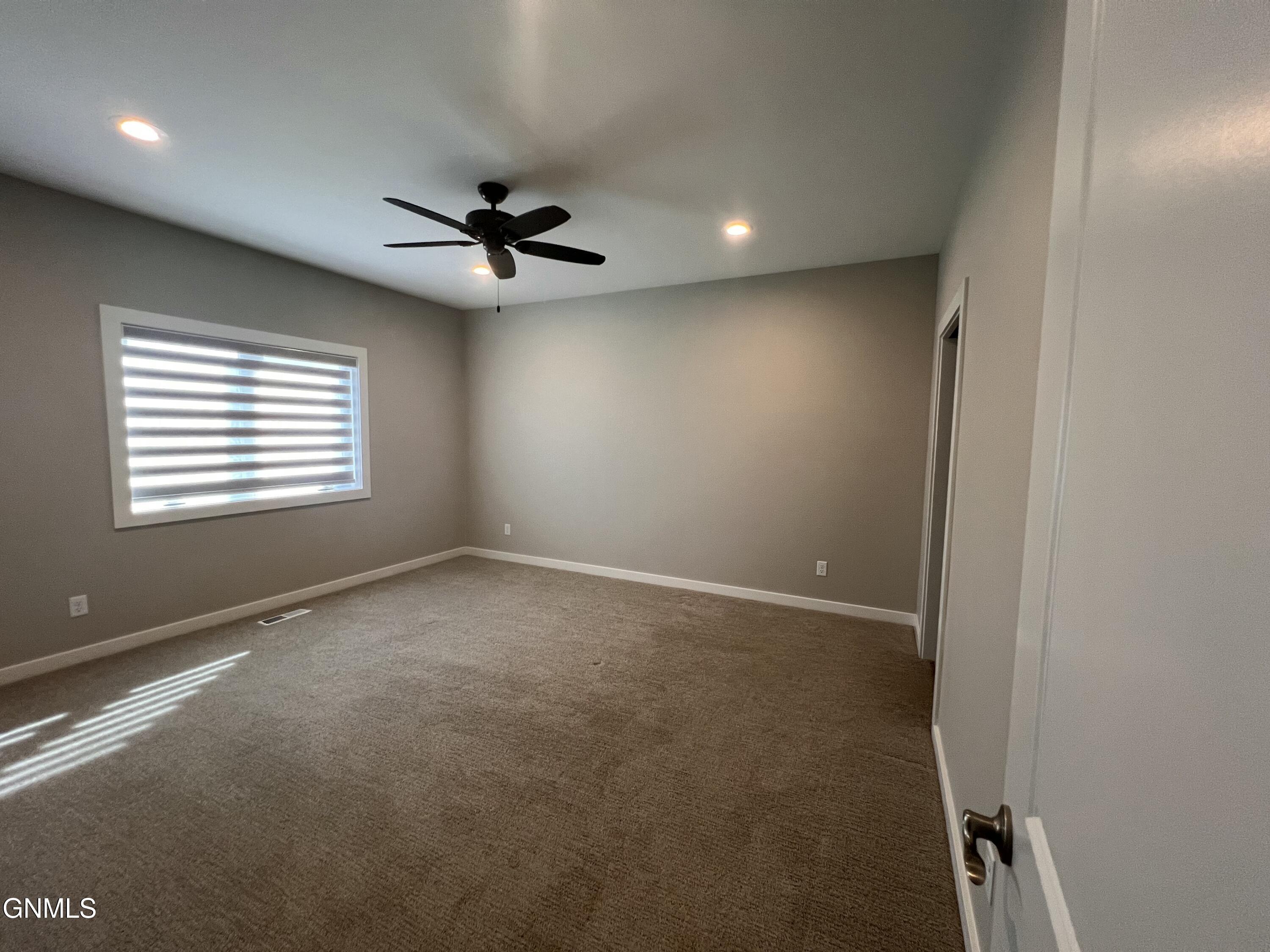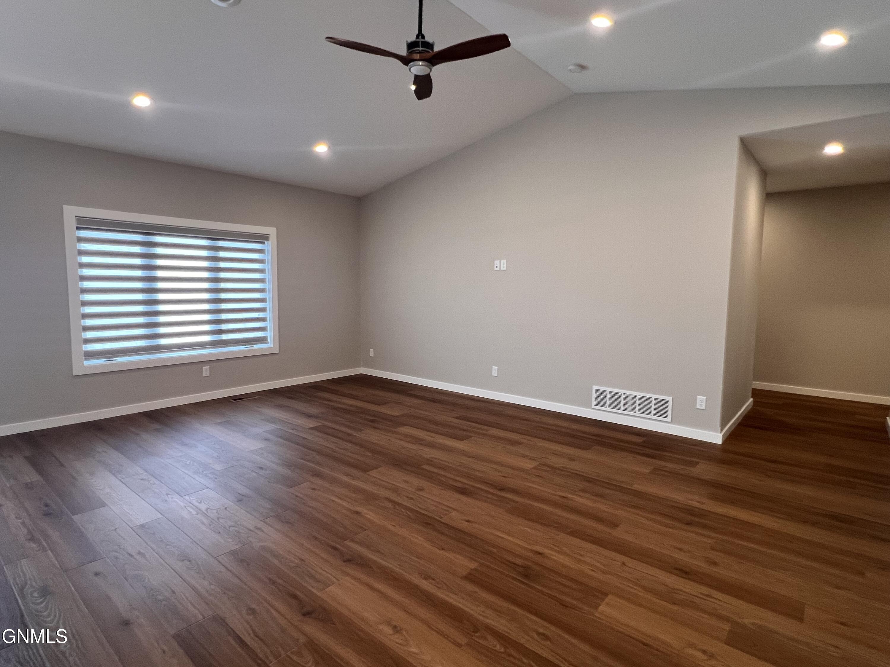Patio home with no steps, located in north Bismarck. This maintenance free townhome community is for residents 55 & older. The homeowners association takes care of snow removal & lawn maintenance. The kitchen features include white cabinets, stone countertops, tile backsplash, under cabinet lighting, pantry, & a large island with seating & dark contrasting wood cabinets. The kitchen, dining, & living room have an open floor plan with vaulted ceiling & recessed lighting. The primary bedroom has a walk-in closet, large private bathroom with step-in shower, vanity with stone counter tops & dual sinks. There are 2 additional bedrooms, full bathroom, & a large dedicated laundry room with washer & dryer. A convenient mud room is located next to the garage with a built-in bench. The impressive 3-stall heated garage has an epoxy floor, storm/storage room, utility room, & hot/cold water with garage sink. The yard has underground sprinklers, rock landscaping, & a patio with privacy fence. Great opportunity to own this one-level home with modern high-end finishes.