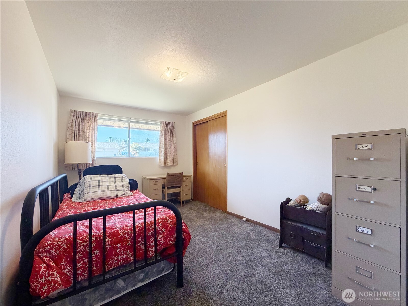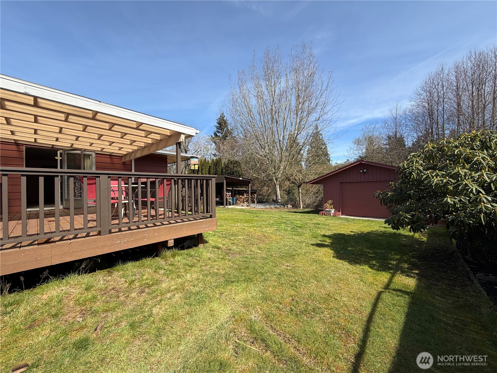Classic Ramber offers desirable one level living. This spacious home has it all. Formal living room with oversized picture window and cozy fireplace insert. The dining room is adjacent to the kitchen and walk-in pantry. French doors lead to the extra-large primary suite complete with ¾ bath, walk-in closet and slider doors to the deck. There are 3 additional bedrooms and a full bath. Fresh paint, new carpet and lots more. The floor plan allows for flexibilty in how you use many of the rooms. An entertainment sized, covered deck to enjoy all spring, summer & fall. Beautiful, fully fenced backyard with detached garage/shop, carport, woodshed & fruit trees. Conveniently located nearby all amenities including shopping, schools, parks, Boeing and public transportation.