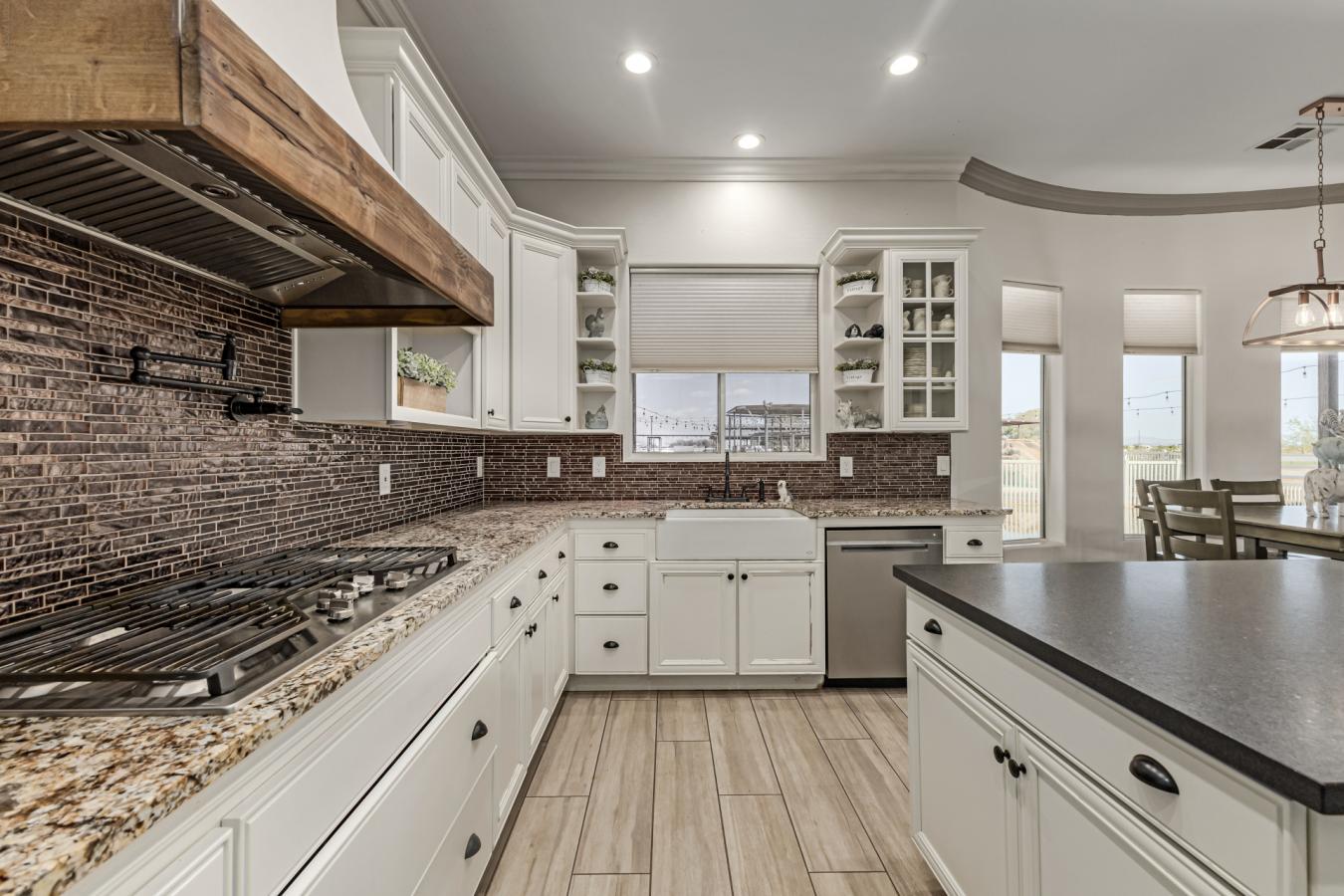 Completed in 2024 by McIntyre Development, nothing quite says Arcadia Living like this custom French-inspired farmhouse, where curb appeal meets refined interior design. A cedar-shake roof, crisp white masonry, and black steel windows frame an expansive front lawn and elevated patio-perfect for morning coffee and golden-hour gatherings.