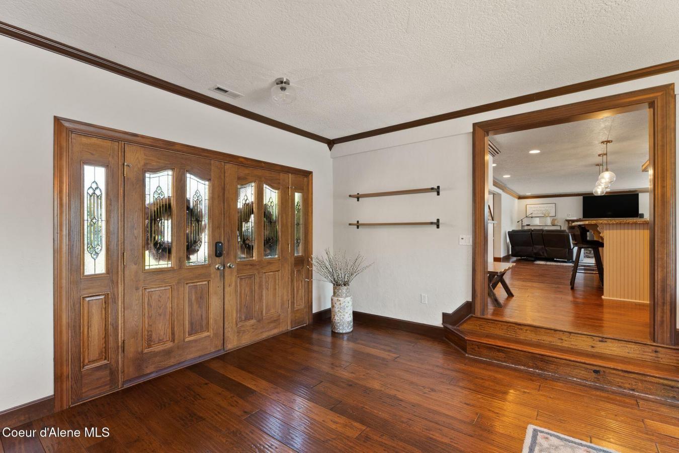 An exceptional chance to own over 100 feet of premier Spokane River frontage in the heart of our community. Set on nearly a 1/2 acre with a rare flat lawn to the water lot, this south-facing estate captures all-day sun and expansive river views while offering the convenience of in-town living. With over 4,500 square feet, this thoughtfully designed home blends space, flexibility, and a refined waterfront lifestyle. The expansive deck spans the rear of the home, creating a seamless indoor-outdoor experience ideal for entertaining, sunset gatherings, and elevated riverfront living. The residence features 6 bedrooms and 5 bathrooms, along with 2 laundry rooms for ultimate functionality. Two full kitchens and two separate entrances provide discreet guest accommodations, multigenerational options, or luxury income potential-a rare and valuable asset in this high-demand waterfront market. A circular driveway enhances curb appeal and arrival experience, while the attached RV shop offers premium storage for recreational vehicles, boats, or collector vehicles-an exceptional amenity for North Idaho living. Properties offering this combination of in-town location, usable waterfront, southern exposure, and versatile luxury living are increasingly rare along the Spokane River. This is a distinctive opportunity in one of North Idahos most sought-after waterfront corridors.