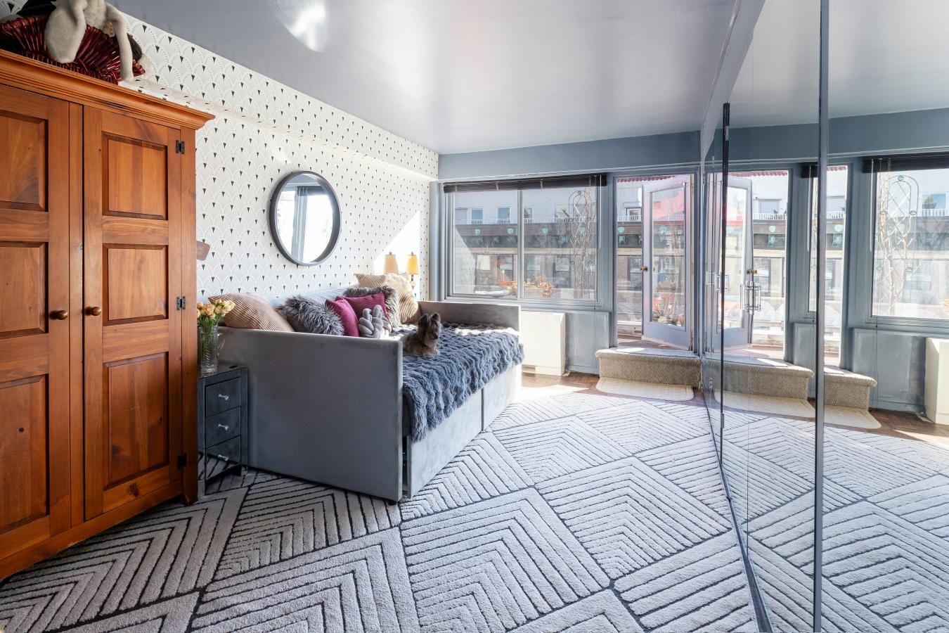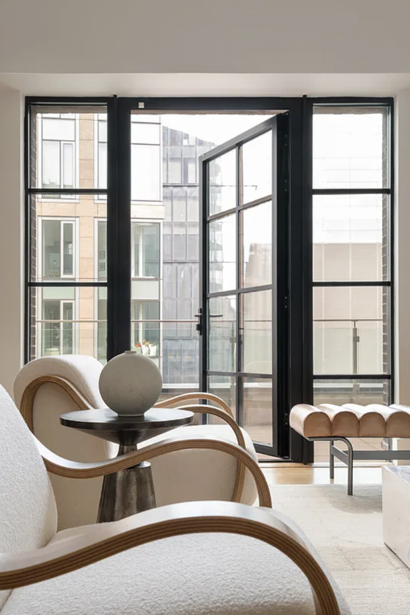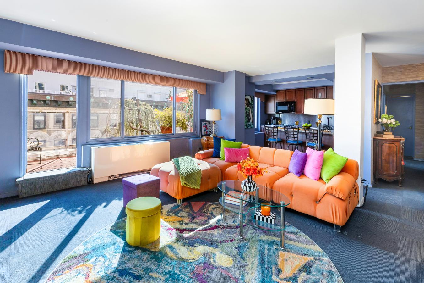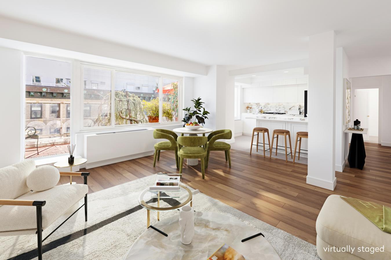 The Penthouse at 517 West 29th Street offers a rare combination of scale, design, and outdoor living, unfolding across a beautifully composed two-bedroom, two-bathroom duplex. With approximately 1,645 square feet of interior space and soaring 12-foot ceilings, this home has an airy, loft-like feel. Oversized windows capture sweeping skyline views and a direct vantage over the High Line.