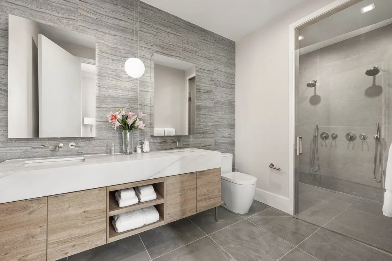This huge, sunny, newly renovated, 3-bedroom, 3.5-bathroom apartment is a 2,175 square foot corner apartment with mesmerizing wide-open views of New York Citys most beautiful skyline from floor-to-ceiling windows throughout the entire apartment, as well as from two balconies. The north and eastern exposures are equally gorgeous day and night. Enter the gracious foyer, replete with abundant storage and a chic powder room, into the bright oversized corner living and dining room with walls of windows. The open kitchen is absolutely stunning and well-designed, with a sculptural Absolute Black granite island that can be extended, white Corian counters, glossy white cabinets, and top-of-the-line appliances including a Sub-Zero refrigerator, Miele oven and cooktop with fully-vented hood, Miele dishwasher, and Sub-Zero wine cooler. There are soaring 11 ceilings, solid white oak newly finished hardwood floors, oversized bedrooms, and generous closet space, including walk-ins. The sun-flooded king-sized primary bedroom is situated apart from the second and third bedrooms and has a large balcony. The spectacular en-suite windowed master bath has elements of glass, mirrors, travertine, marble, and radiant-heated floors. The second and third bedrooms are large, have sweeping views, and have en-suite baths. There is a 4-pipe heating and cooling system for year-round multi-zone climate control. The washer/dryer is housed in a utility closet. All rooms have custom drapery, and all of the closets are beautifully fitted. One of the most exciting and fascinating condominiums in Manhattan, 56 Leonard, was designed by architects Herzog & de Meuron and reflects a unique design. There are 145 unique residences, all with outdoor space, abundant light, and breathtaking views of the cityscape, rivers, bridges, and beyond. This full-service building has a live-in super, doorman, and concierge and 17,000 square feet of amenities, including a 75 lap pool with a sundeck, a gym, a screening room, a lounge, a dining room, and a playroom as well as an on-site parking garage.