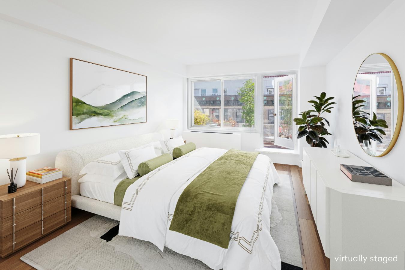 Glorious Terrace on Riverside Drive Newly offered is a most glamorous residence located at 60 Riverside Drive on the corner of 78th Street. A truly unique home that is defined by its exceptional outdoor space. Stretching over 27 feet and running the full length of the apartment, the terrace offers a rare, penthouse-like experience, with sunshine, and River views- and ample space to garden, lounge and entertain. You arrive at a vast nearly 20 foot square living and dining room which is anchored by a ventless clean ethanol fireplace set within a full wall of custom millwork for gallery like display and ample storage. An entire wall of windows overlooks the magical garden positioned 19 floors above the Park. The open kitchen is well maintained and functional, with wood cabinetry and black appliances, significant storage and cook space and a dining peninsula for four. A special window overlooks the garden here as well. The bedroom features a wall of glass with integrated custom storage and its own direct access to the terrace- offering a special and serene retreat. Custom closets provide endless wardrobe storage for all of your fine clothing and shoes. Additional features include consistent natural light throughout, direct terrace access from both the living room and bedroom, custom closet buildouts and integrated storage, and through wall climate control for year-round comfort. 60 Riverside Drive is a full-service co-op with 24-hour doorman, live-in resident manager, and a full staff. Residents enjoy a garage with Riverside Drive access, laundry on each floor, storage, and bicycle facilities. A garage is located less than one block away for convenience. Two assessments are currently in place: 148/month (ongoing) and 204.50/month (in place through 2035).