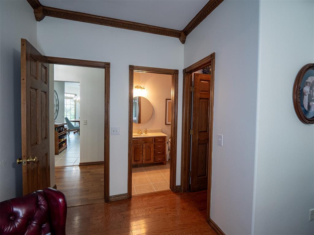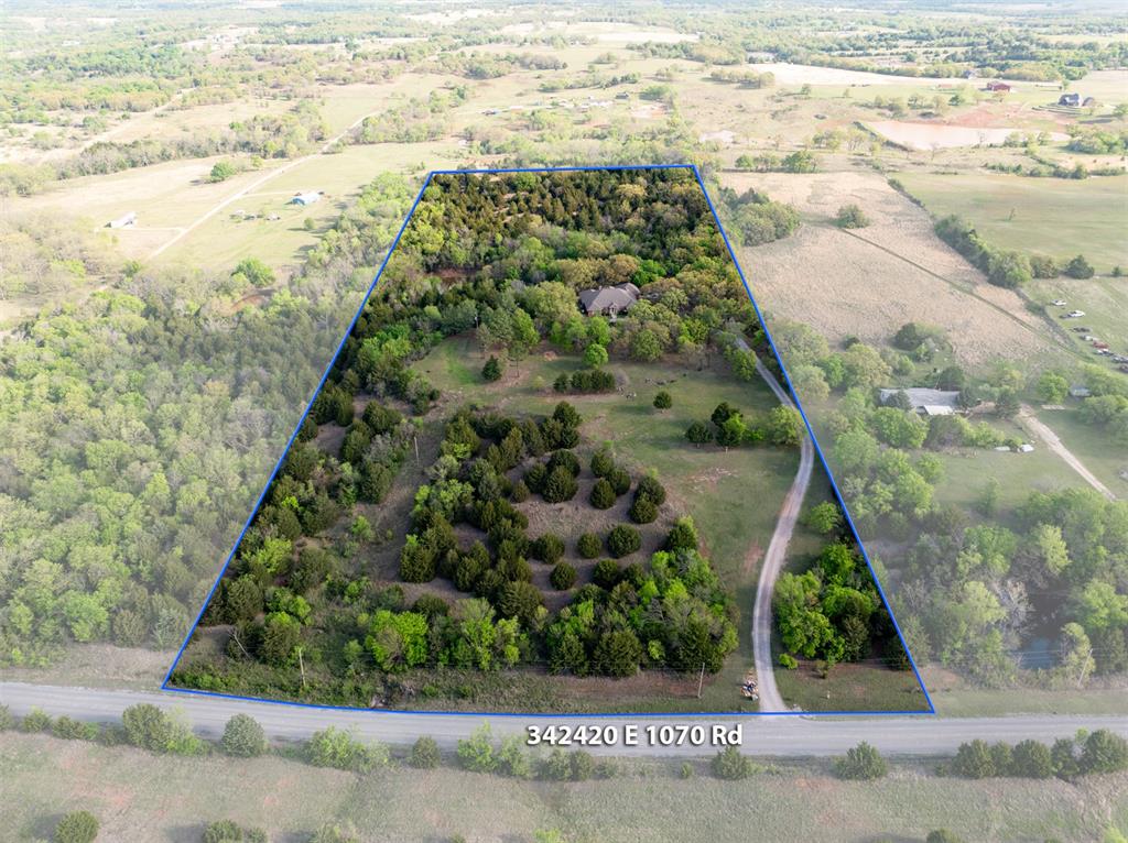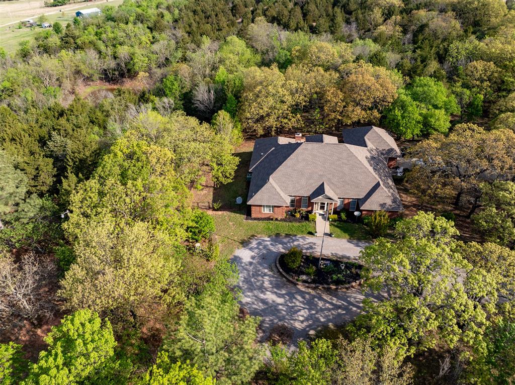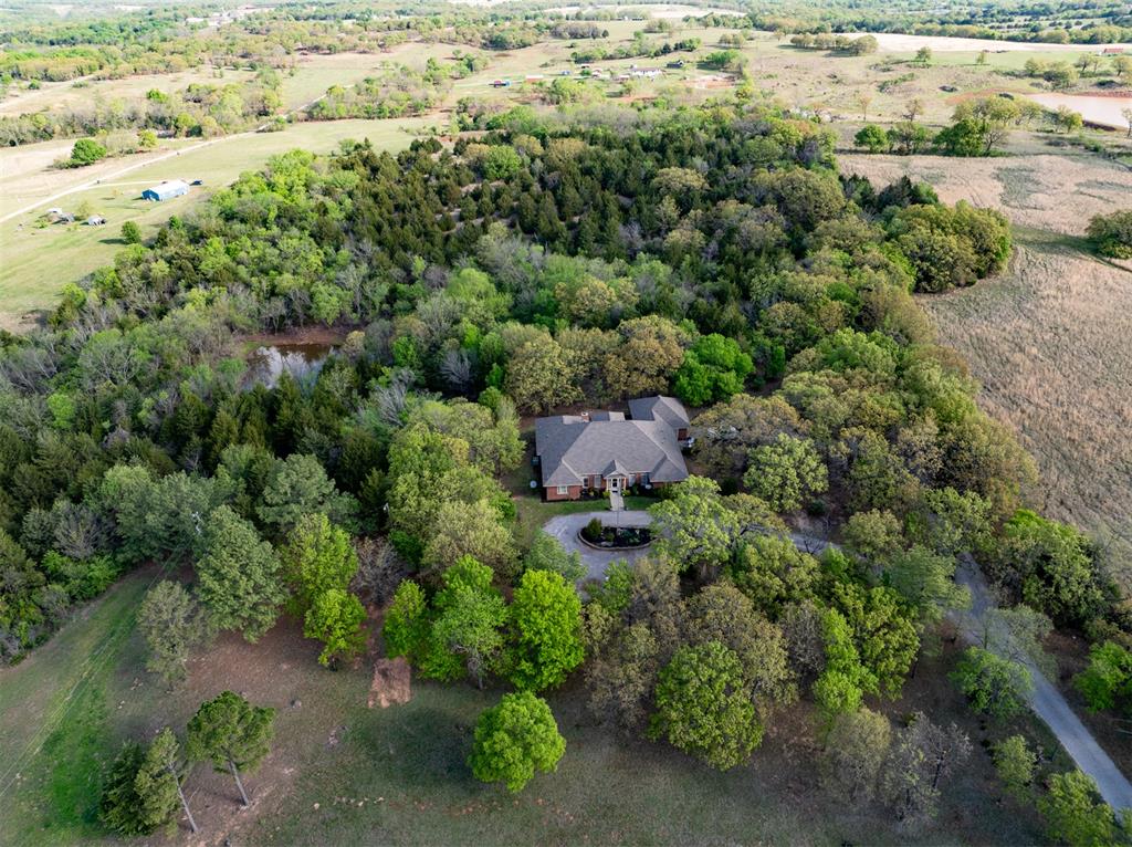 Welcome to your future estate! This stunning, one-owner custom brick home sits on 20 scenic acres, offering the perfect blend of space, privacy, and functionality. Inside, you'll find four spacious bedrooms and three full bathrooms, along with a versatile formal dining room that can easily serve as a home office, flex space, or second living area. The home features abundant storage throughout, with numerous closets and convenient attic access.A storm shelter is located on the property, providing peace of mind during Oklahoma weather.Step outside to enjoy a large deck overlooking a peaceful pond—an ideal spot for relaxing or entertaining. The property is beautifully treed, offering endless opportunities for hiking, hunting, or simply enjoying nature. Exterior electrical outlets are conveniently installed throughout the home, perfect for holiday lighting or outdoor projects.Set well back from the road, the home features a circular drive that enhances both privacy and curb appeal. This is a rare opportunity to own a private retreat with room to live, work, and explore.