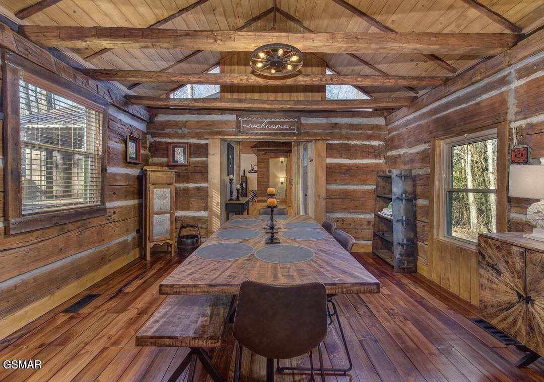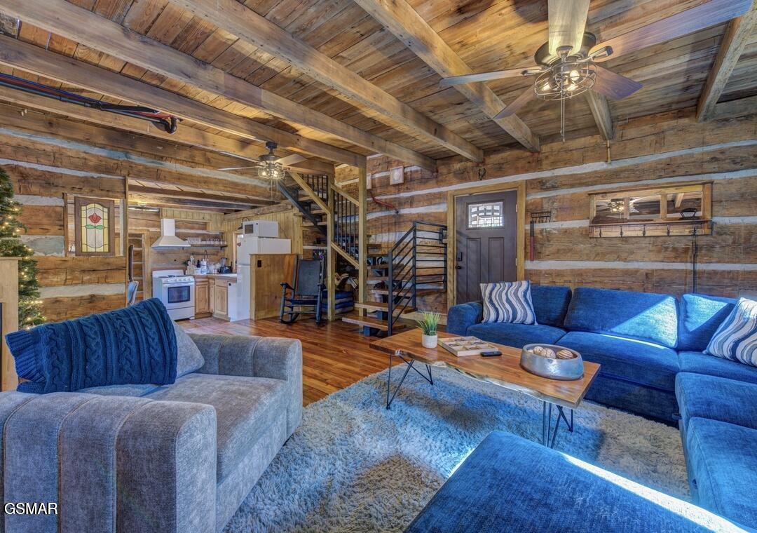 Step into history with this truly one-of-a-kind, authentic log cabin originally built in the early 1800s and thoughtfully relocated to its serene setting along Cricket Creek in Cosby. Constructed from hand-hewn, hand-sewn logs, this is a rare opportunity to own a ''true'' log cabin--rich in character and craftsmanship, unlike modern builds.Expanded with custom additions in the late 1990s and recently remodeled again in 2025, the home seamlessly blends historic charm with modern comfort. Recent updates include new plumbing (PEX) with all new fixtures, updated electrical with new fixtures throughout, a recent roof, and decking--offering peace of mind while preserving the home's timeless character.Offering 3 spacious en-suite bedrooms plus additional sleeping space, 3 full baths and a half bath, the property comfortably sleeps up to 8 and is currently established on a rental program.The original cabin showcases four rooms built from centuries-old timbers, while newer additions feature cathedral ceilings, expansive windows with wooded views, and thoughtful design throughout. Relax on the classic front porch with rocking chairs or enjoy the peaceful sounds of the seasonal stream from the back porch, all set on approximately two acres of wooded privacy.Ideally located with easy access to Cosby hiking trails, Great Smoky Mountains National Park, and nearby Gatlinburg attractions, this property offers both convenience and a true mountain escape.Adding to its legacy, the home was once owned by renowned artist Mary Todd Beam, further enhancing its historical and cultural significance.Additional highlights include a shared well, HVAC replacement (July 2022), and an effective year built of 1984 due to updates and reconstruction.Whether you're seeking a distinctive short-term rental investment or a private mountain retreat, this extraordinary cabin delivers unmatched authenticity, history, and charm.
