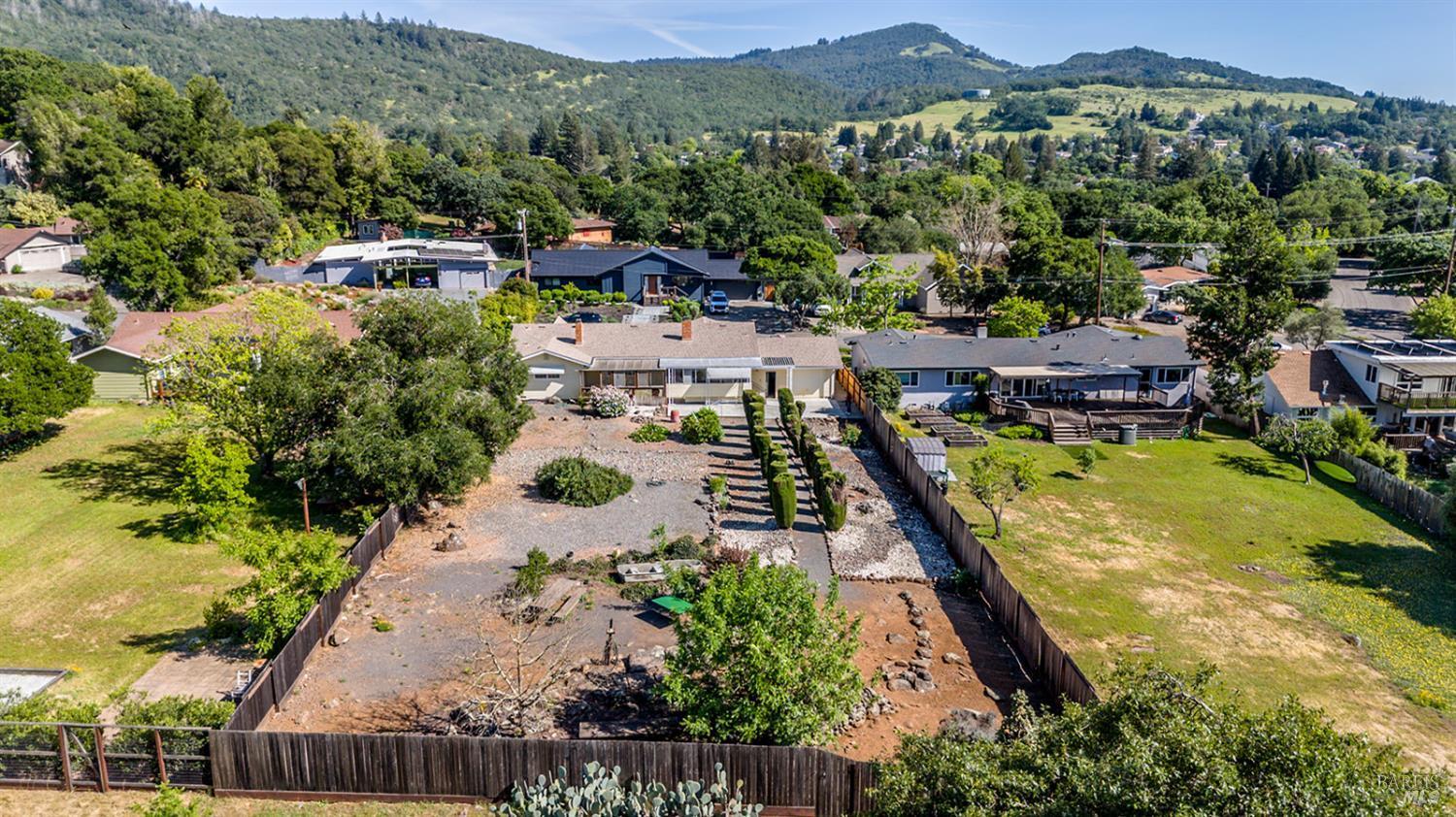 Secluded on the side of the mountain near Highway 37 - Handicap friendly, fenced 3 bed/2 bath (2244 SF) main home w/office and 2 car oversized attached garage; and 2 bed/1.5 bath (960 sf) guest house. Main home - appliances in kitchen stay; washer/dryer stacked; 9x9 pantry equipped with Elfa shelves/drawers for the particular chef; open design with freestanding wood burning stove.