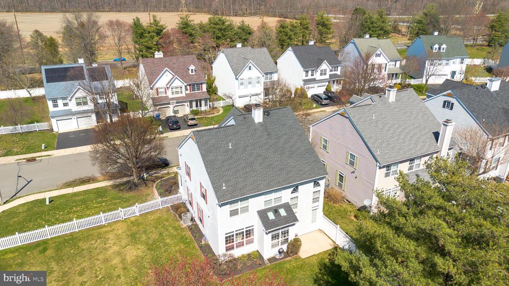 Welcome to this beautifully maintained 4-bedroom, 2.5-bath home located in the highly sought-after Princeton Crossing community of Plainsboro. A welcoming foyer with hardwood flooring and dual insulated storm doors sets the tone for the thoughtfully updated interior, leading into a stunning remodeled kitchen completed approximately six years ago, featuring granite countertops, upgraded cabinetry with glass accents and a built-in wine rack, convenient pull-out drawers, a designer ceramic tile backsplash, and stainless steel appliances including a newer built-in microwave and dishwasher (1 year old) along with a stove and refrigerator (5 years old), all complemented by skylights, halogen recessed lighting, and three stylish pendant lights. All bathrooms have been completely renovated with high-end finishes including ceramic tile flooring and showers, granite countertops, modern vanities, updated lighting, glass shower doors, and new fixtures throughout. The home offers carpeting throughout, recessed lighting in the bedrooms, kitchen, and family room, and upgraded lighting fixtures across all living spaces, while the family room is enhanced with a ceiling fan for added comfort. Upstairs, the spacious primary bedroom features a vaulted ceiling, creating an airy and elegant retreat, along with custom drapes and pleated shades throughout the home, pull-down attic stairs for additional storage, and a 1-year-old thermostatically controlled ceiling fan. Additional upgrades include a 2-year-old HVAC system with a built-in humidifier, a 1-year-old hot water heater, and a 1-year-old washer and dryer, along with wiring for an ADT security system and a 5-zone sprinkler system for easy maintenance. Enjoy outdoor living with a charming covered front porch, paver walkway and patio, and a rear concrete patio, all set within a fully fenced yard offering privacy and space for entertaining. Completing the home is a 2-car garage equipped with two openers, motion detectors, and keypads, along with an unfinished basement providing endless potential for future customization, all conveniently located near major highways, shopping, and top-rated Plainsboro schools.