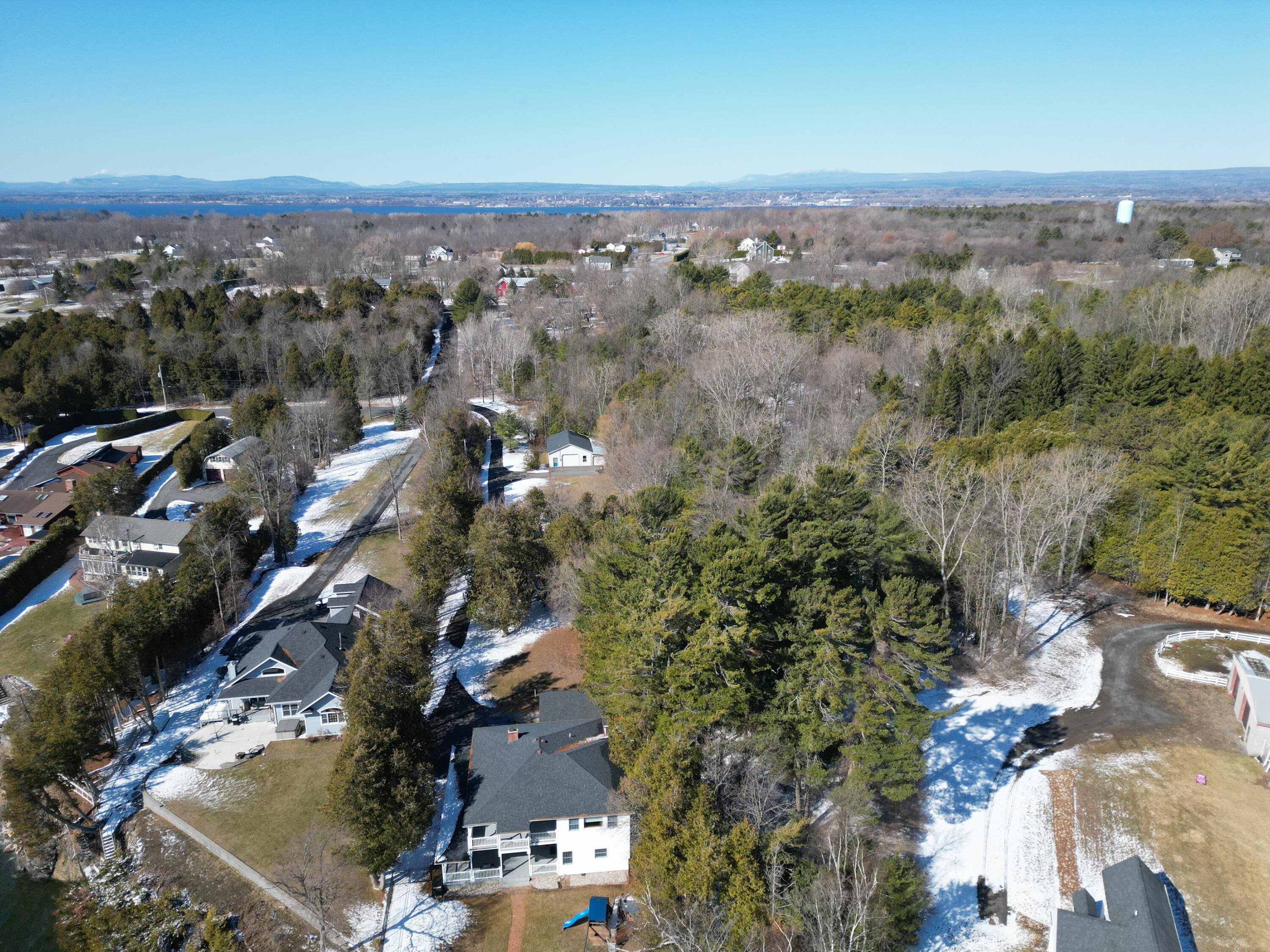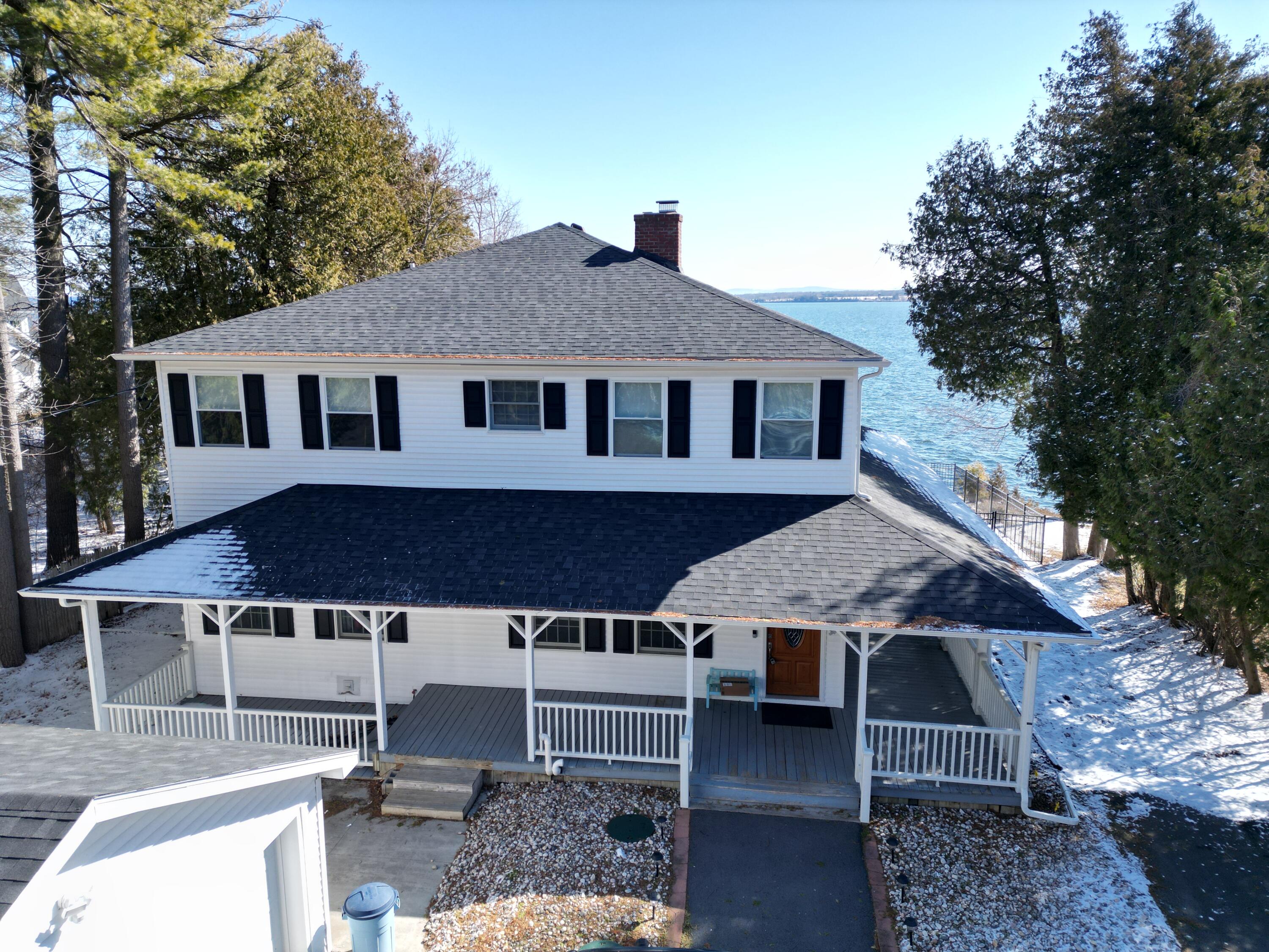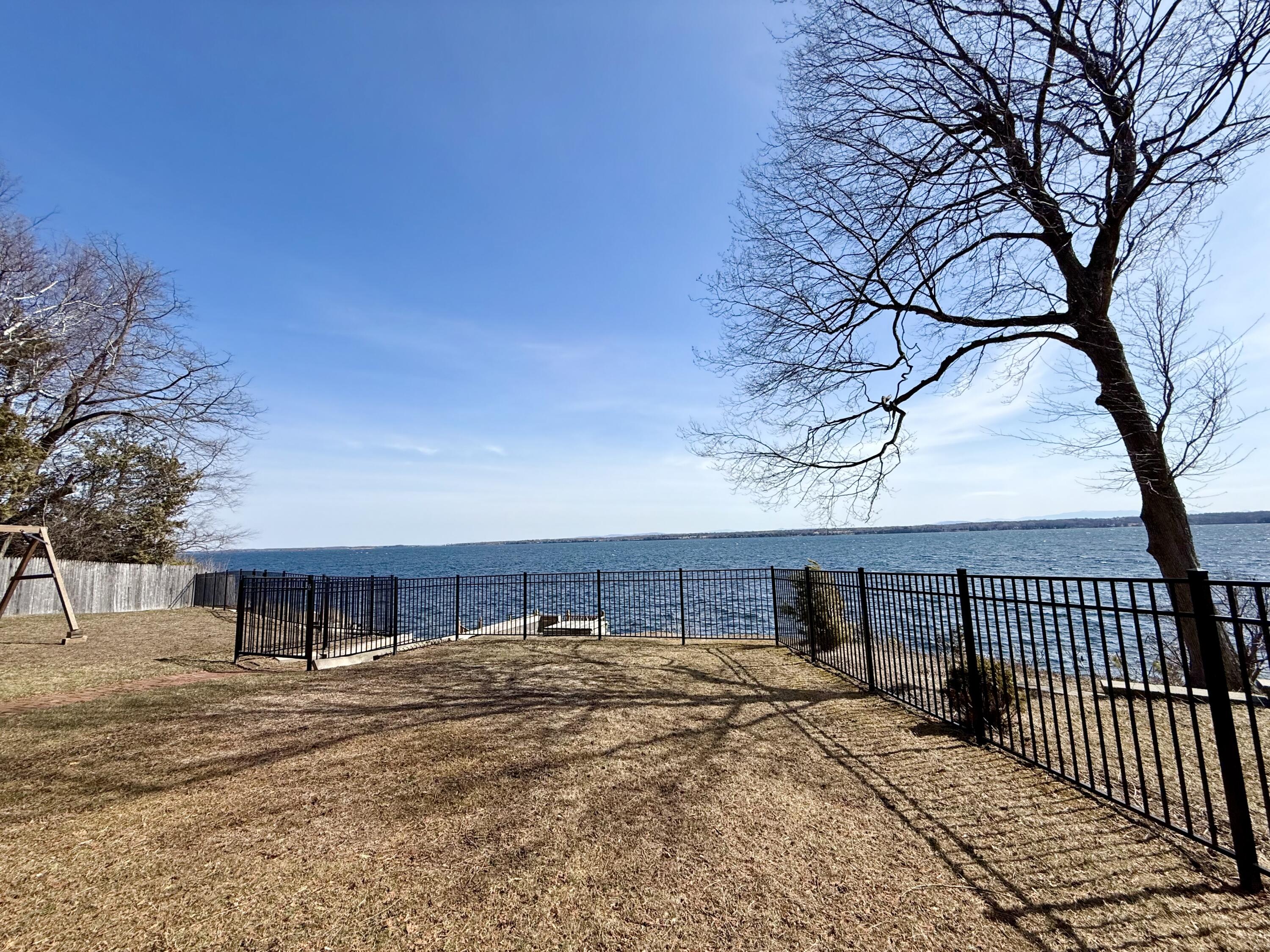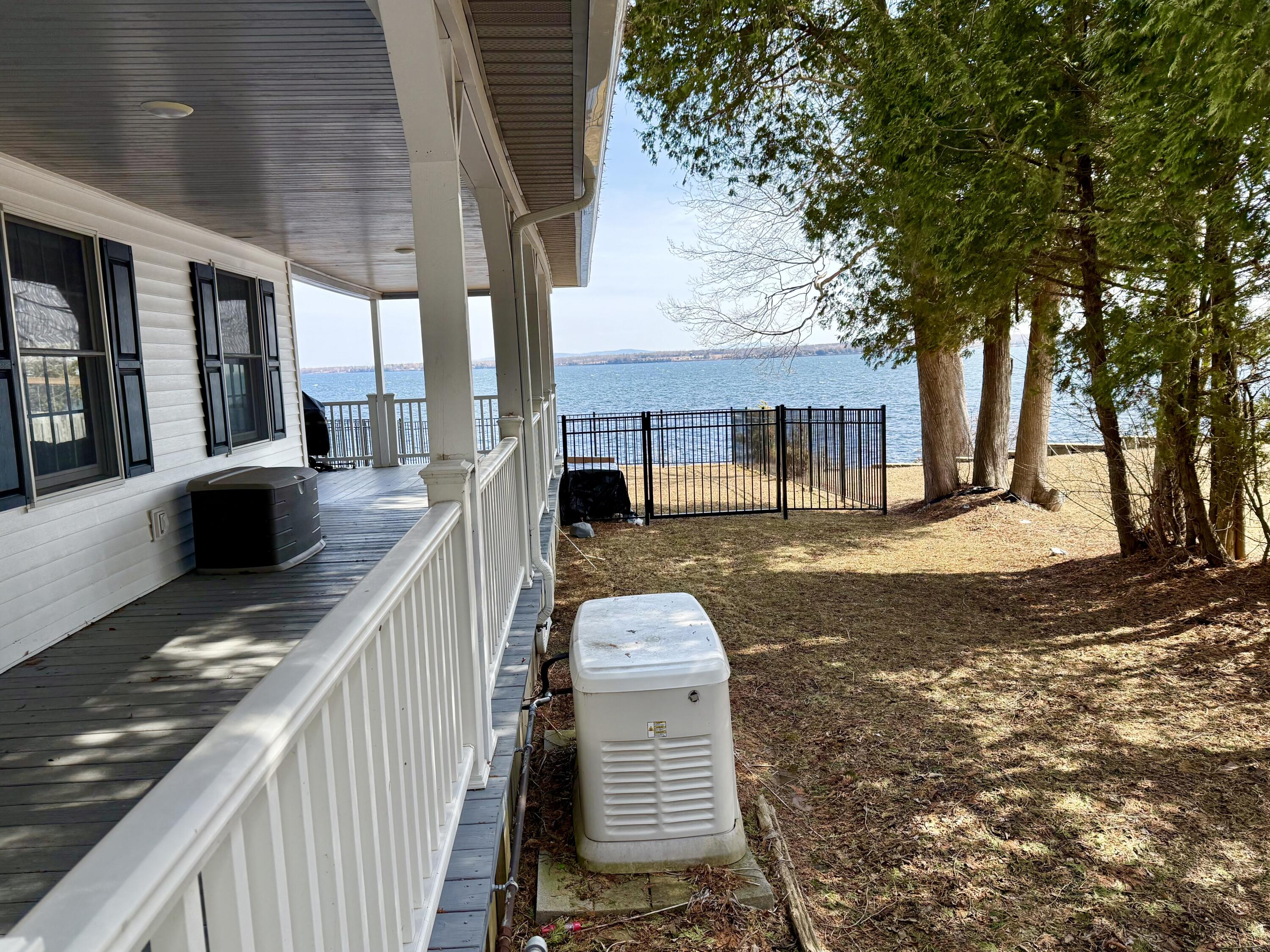 Experience the best of lakefront living on the shores of Lake Champlain, where every day feels like a retreat and every space is designed for both relaxed living and unforgettable entertaining. The first floor welcomes you with elegant Italian tile flooring and a spacious living room centered around a cozy fireplace, all framed by stunning lake views. Expansive glass doors open to a porch, creating a seamless indoor-outdoor flow--perfect for morning coffee by the water or hosting guests at sunset. The kitchen is a true gathering space, featuring quartz countertops, a gas stovetop, and double wall ovens, all open to the dining area with breathtaking views of the lake and surrounding mountains. Large sliding doors lead to the deck, making entertaining effortless while embracing the beauty of waterfront living. A first-floor bedroom, half bath with new vanity and sink, and a convenient new full bath with laundry complete this level. Upstairs, new hardwood flooring enhances a bright and inviting family room with sliding doors that lead to a spacious upper deck--an ideal spot to unwind and take in panoramic lake views. The primary suite offers a private retreat with its own bathroom and a generous walk-in closet. Two additional bedrooms and a full bath provide ample space for everyday living or guests. Lake access stairs lead to dock and solar powered hydraulic boat lift. New septic system. See feature sheet for all upgrades. Close to Ferry to Vermont. Home has audio/video surveillance.