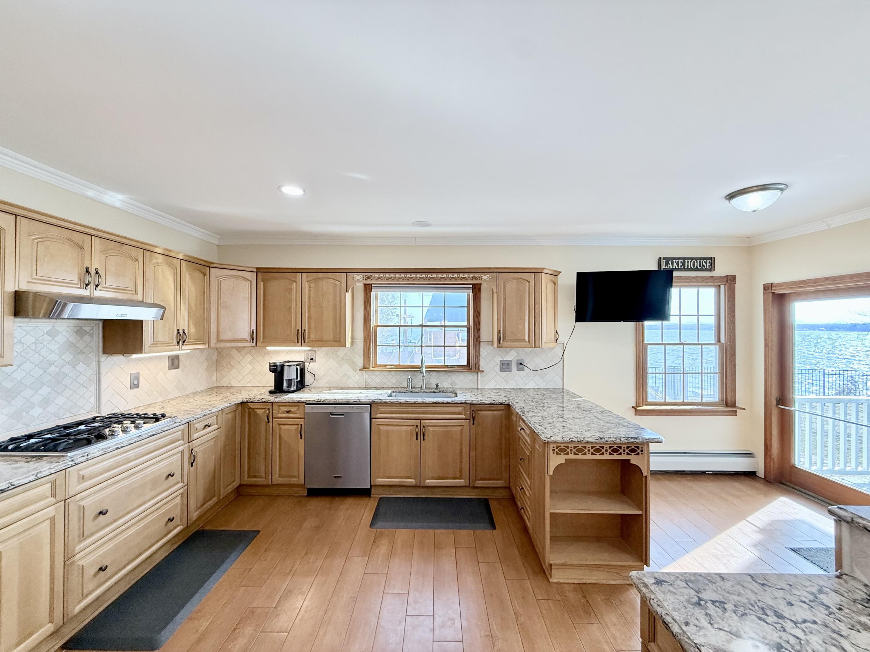 Experience the best of lakefront living on the shores of Lake Champlain, where every day feels like a retreat and every space is designed for both relaxed living and unforgettable entertaining. The first floor welcomes you with elegant Italian tile flooring and a spacious living room centered around a cozy fireplace, all framed by stunning lake views.