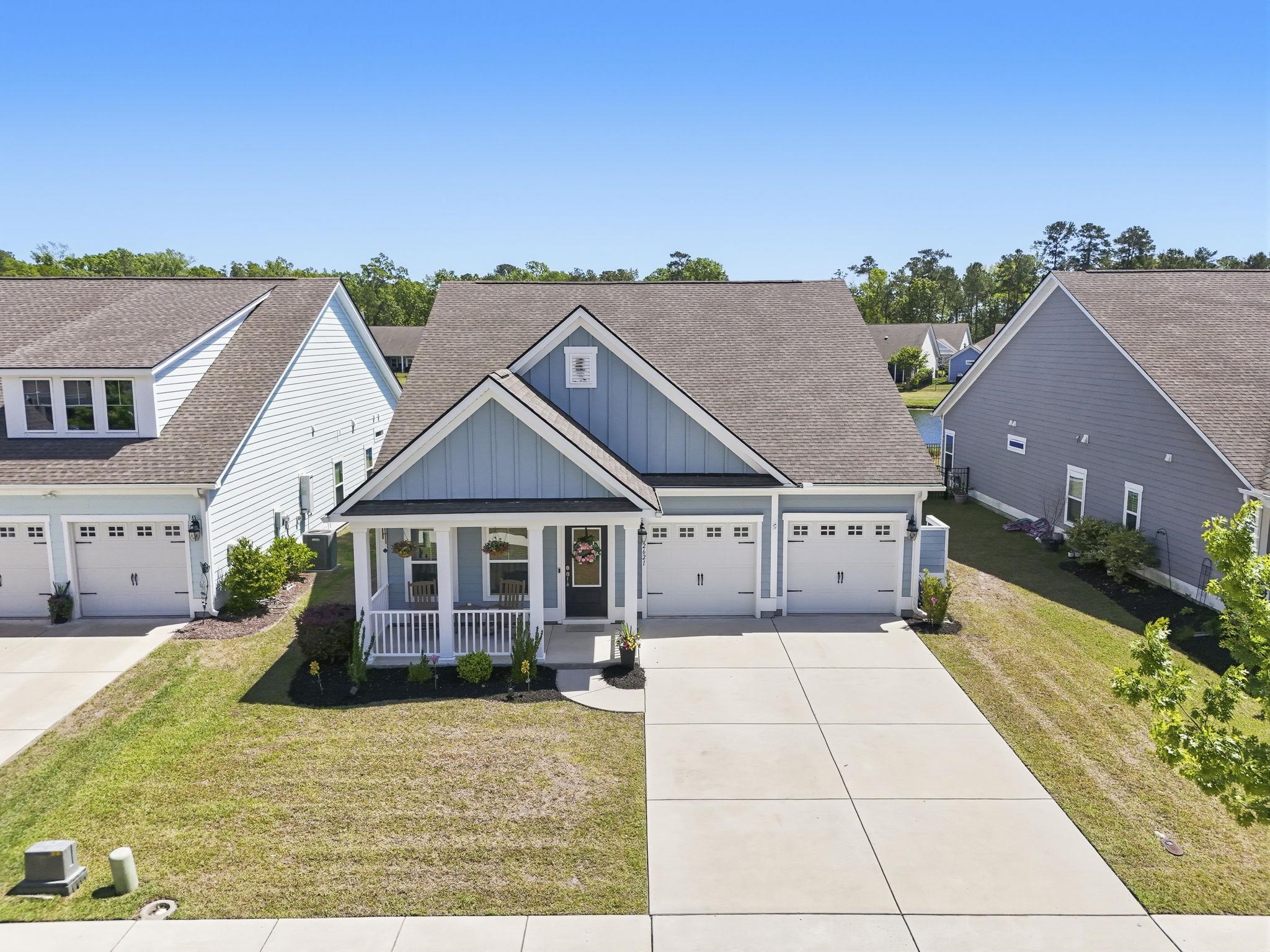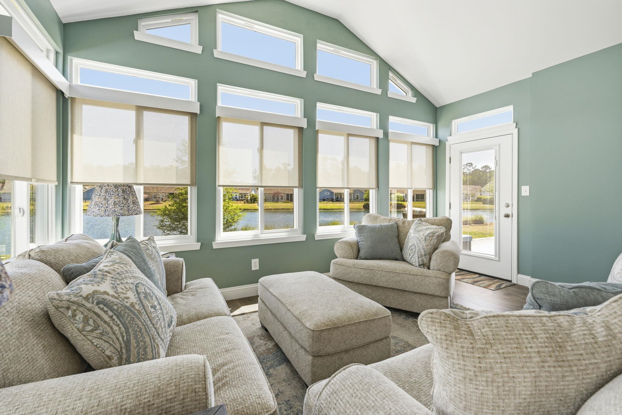 This stunning Annandale model in Belle Harbor sits on a premium pond-front lot and features a massive, recently added 17x22 all-season Sunroom with its own mini-split HVAC for year-round comfort. This Wi-Fi-certified smart home features an open-concept layout with 4 bedrooms, 3 full baths, luxury vinyl plank flooring, granite countertops, and stainless steel appliances. It also includes a tankless water heater and a professionally finished garage with fresh paint and epoxy flooring. Step outside to your inviting paver patio and firepit overlooking the serene center pond. Located just a short golf cart ride from the beach and the vibrant shops and dining of Market Common, this move-in-ready home offers the perfect blend of luxury and lifestyle! Just waiting for you to call it your home.