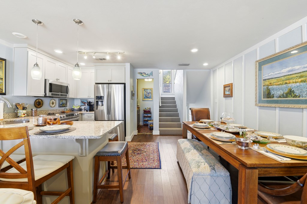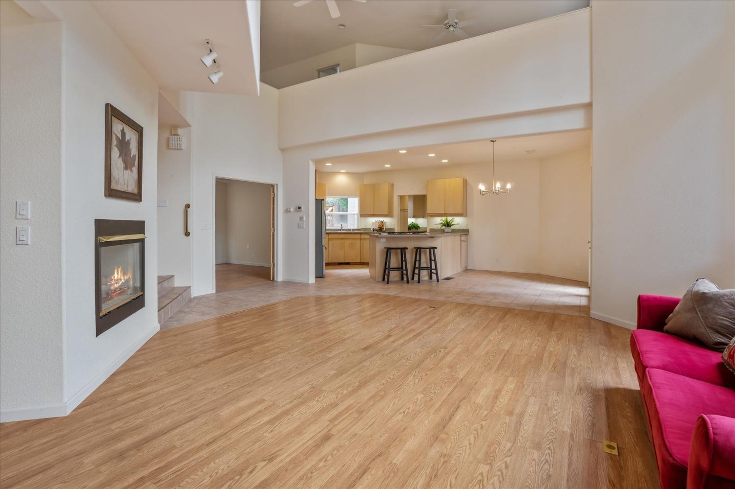 Move-in ready tri-level townhome featuring 3 bedrooms, 2.5 bathrooms, and approximately 1,860 sq ft of well-designed living space. The bright living room showcases laminate flooring and a dual-use gas and wood-burning fireplace that opens to a private balcony—perfect for relaxing or entertaining.