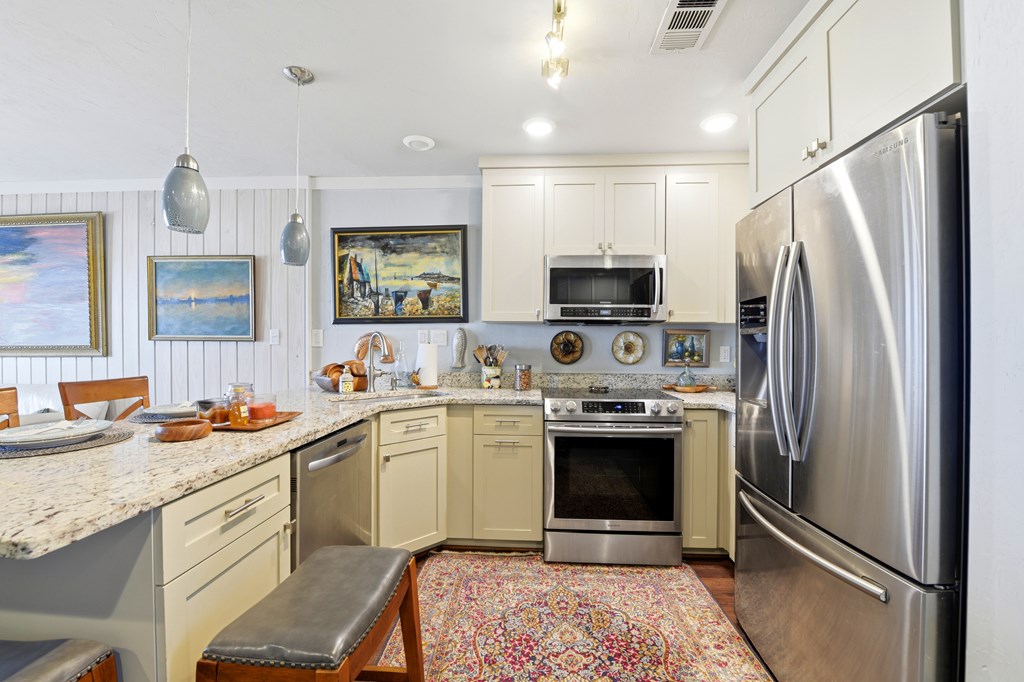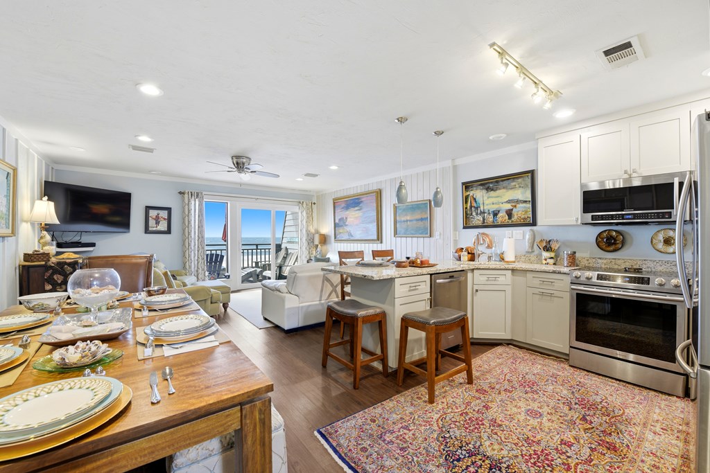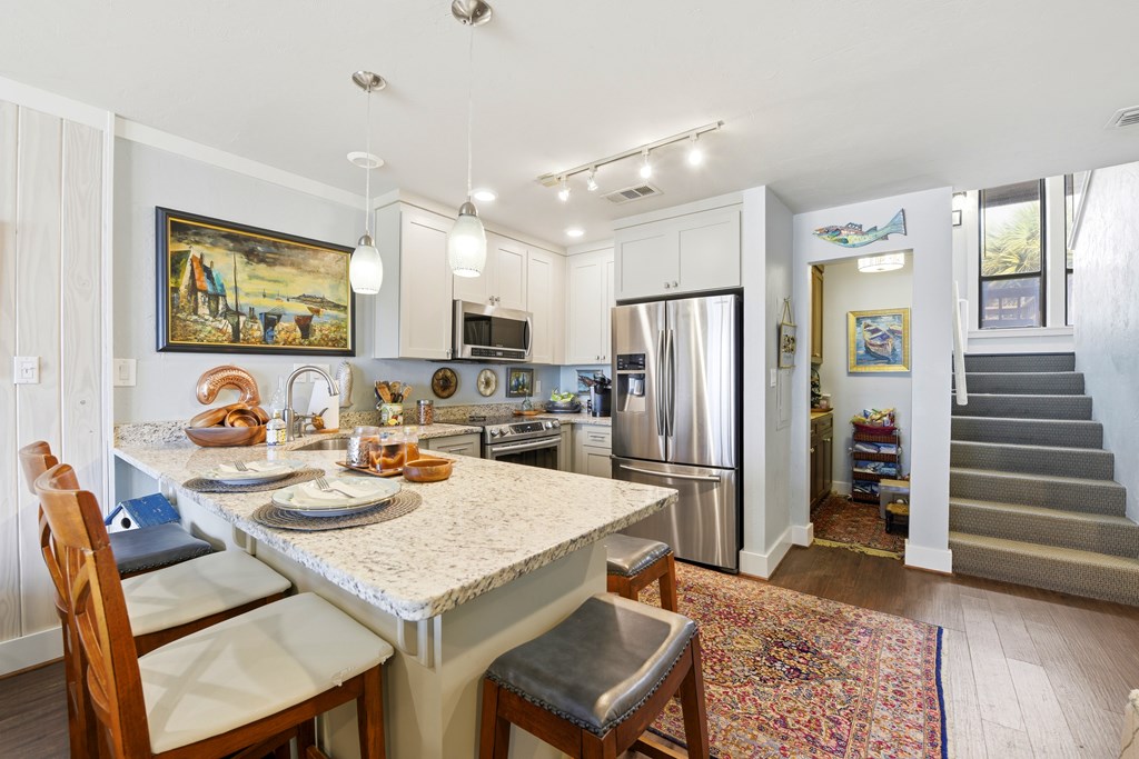 Directions: East on Gulf Beach Drive appraoximately 4 miles from the Lighthouse, lst drive-way F Building. Public Remarks: Renovated Beachfront Townhouse in Desirable East End Location! This beautifully updated 3 bedroom townhouse has been thoughtfully renovated from top to bottom, featuring all new electrical (including stylish light fixtures and ceiling fans), plumbing, luxury vinyl flooring, cabinets, granite countertops, and appliances. Enjoy the added value of a new upstairs deck, a spacious downstairs butler pantry, and raised ceilings in the kitchen, hallway, stairs, creating an open and airy feel throughout. Additional upgrades include a new roof (2025), new sliding glass doors upstairs and down, and updated windows. The fireplace has been removed to maximize space and functionality. Located at 300 Ocean Mile on the sought-after east end of the island, the community offers two swimming pools, eight park grills, convenient beach access walkovers, and miles of pristine white sandy beaches—all pet friendly. This is coastal living at its best! HOA includes sewer utilities, basic cable, garbage pick up. Showings to be made by appointment. Realtor Remarks: All dimensions taken from Public Records. Vacant most of the time, but call office 850 927 3100 for availability. No wind or flood insurance. Possible owner financing.