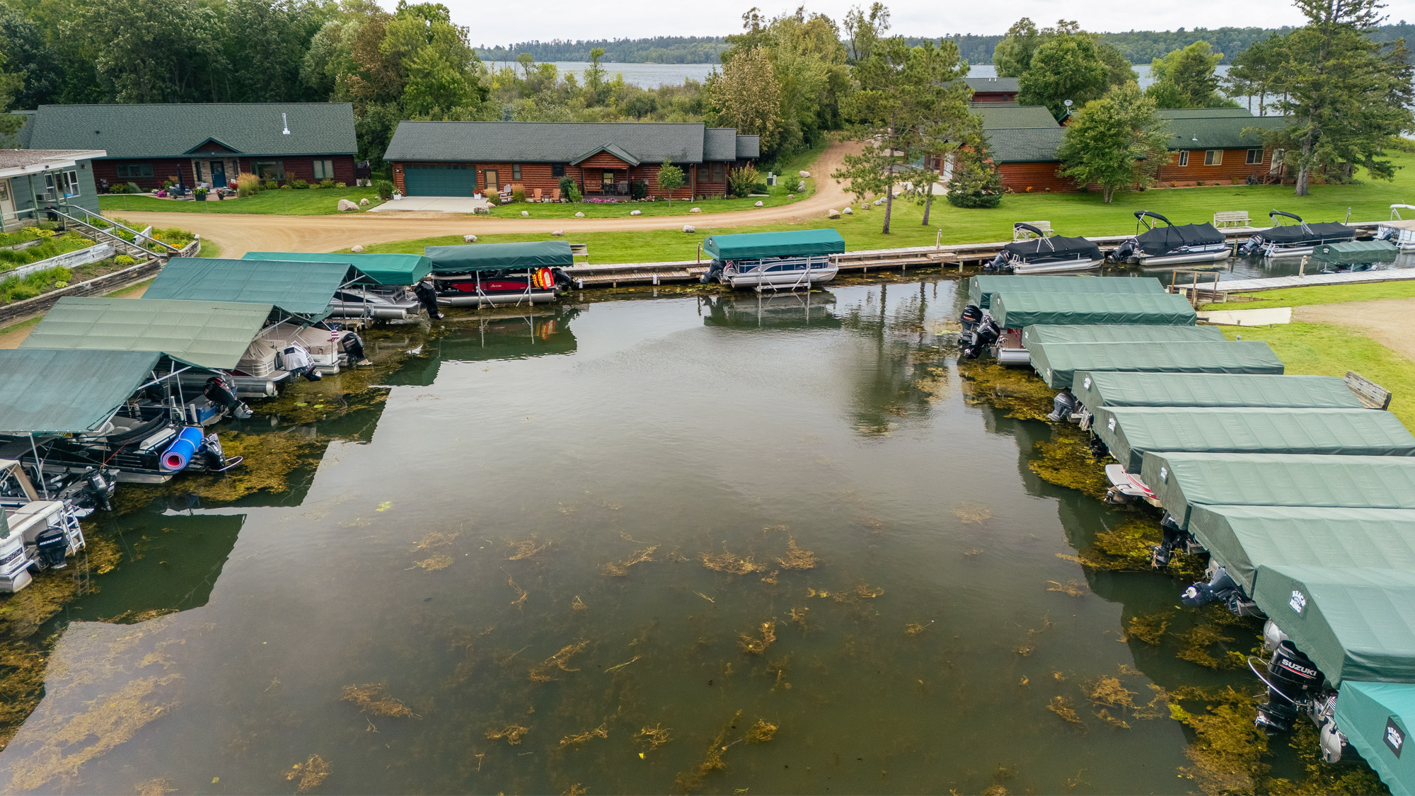 East on Hwy 2 to Cass Lake, left on Grant Utley Ave NW, road changes to 61st Ave NW, right on 167th St NW, right into Toms Harbor.