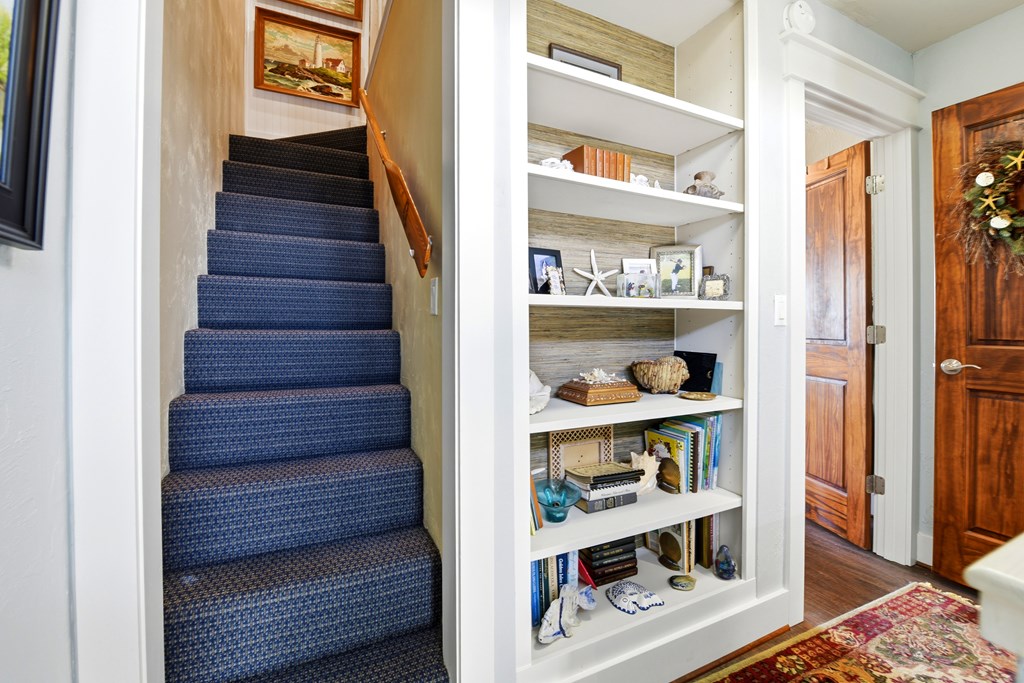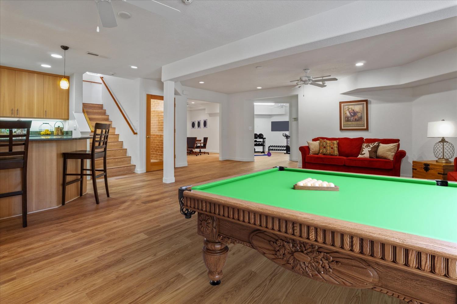 Stunning Blossom Valley Home!Striking blend of wood,stone,pavers,mature landscaping,lighting accents.Custom wood gates-both sides.Step inside to experience the open-concept great room w/direct line of sight from entry to rear oasis.