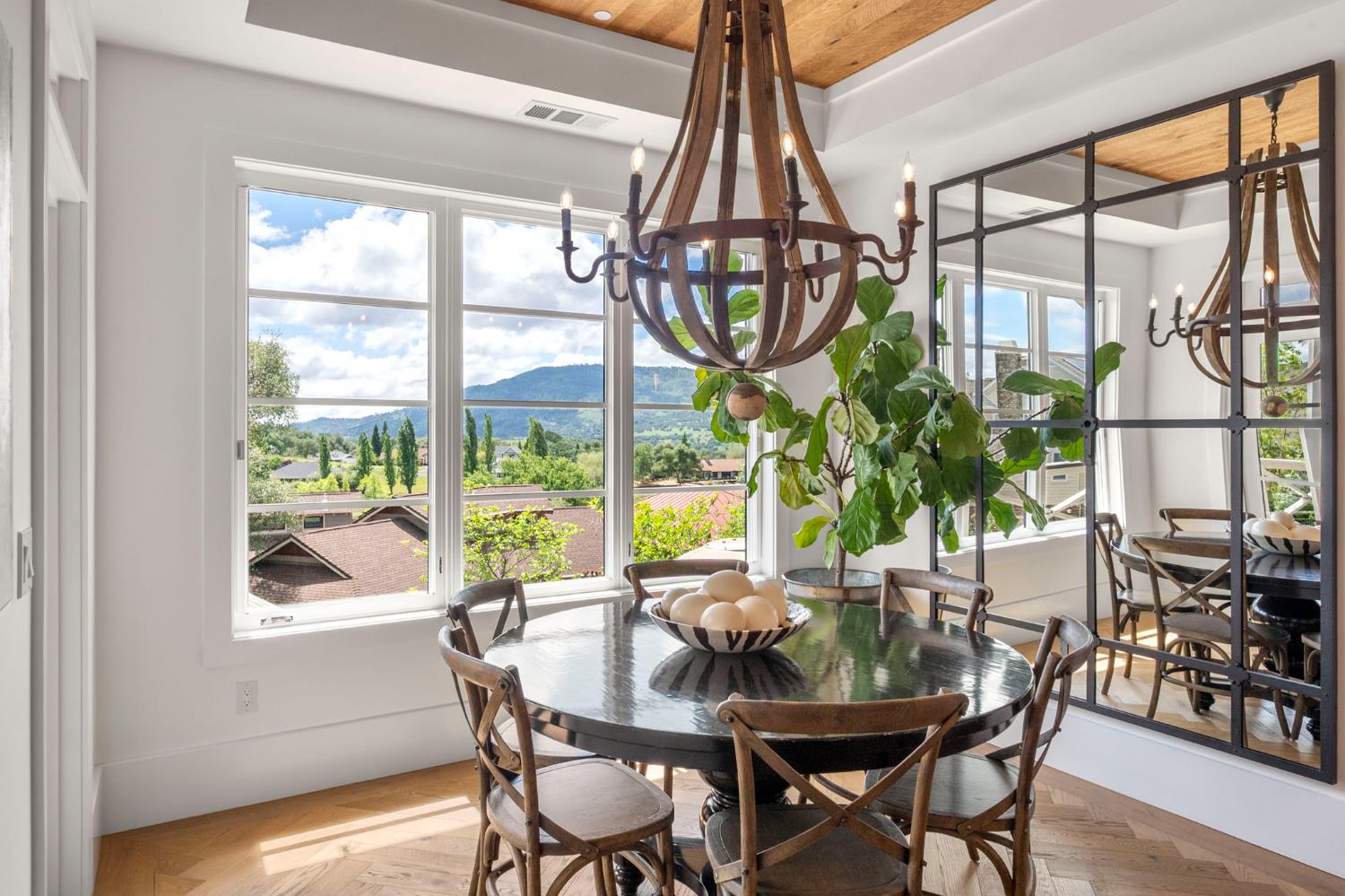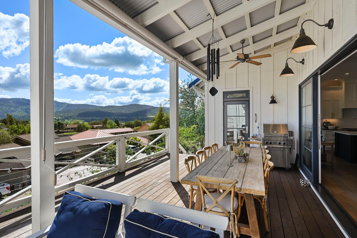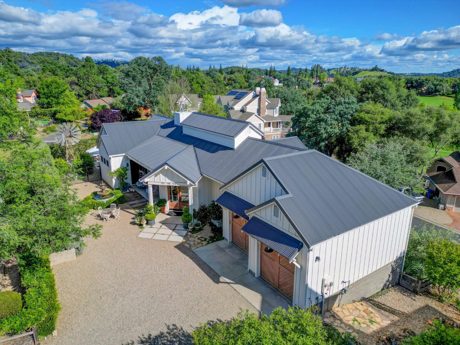 Modern Farmhouse elegance meets turnkey resort-style living in the heart of Greenhorn Creek, with breathtaking views of Bear Mountain framed through expansive windows that flood the home with natural light. This beautifully crafted 2,450 sq ft single-level home offers 2 bedrooms plus an office (currently used as a 3rd bedroom) and 2.5 baths, thoughtfully designed with quality finishes and energy efficiency throughout. Built in 2021 by respected local contractor Rolleri Construction, this is your rare chance to enjoy a custom build without the time, stress, or cost of starting from scratch. No HOA means no restrictions and no extra fees. Just move in and live your best life. The great room impresses immediately with 12-foot coffered ceilings, exposed beams, a propane fireplace, and white oak hardwood floors that run throughout. Custom cabinetry, designer lighting, and top-tier fixtures from Grohe, Rohl, and Waterworks complete the picture. The chefs kitchen is exceptional: Sub-Zero refrigerator, 48 Viking 6-burner range, dual Fisher & Paykel dishwashers, Shaws Farmhouse sink, Waterworks bar sink, and a walk-in pantry with stainless prep sink and water purifier. Luxury details continue throughout: custom low-E Marvin clad windows and doors, 10-foot ceilings, solid wood interior doors, Kallista soaking tub, Toto washlet, and custom built-in walk-in closets. Energy efficiency shines with 20 owned solar panels, Navien tankless water heater, dual-zone HVAC, Tesla EV charger, and extra insulation for year-round comfort. The corrugated metal roof adds farmhouse character while delivering decades of durability. Step outside to true resort-style living. The stunning pool, completed in 2025, features an electric cover for effortless maintenance. Thermory wood decking, a spa, lush privacy landscaping, outdoor lighting, and inviting patio spaces create a private retreat built for effortless entertaining. Located in the highly sought-after Greenhorn Creek Golf Community, this home delivers the ultimate foothill lifestyle where modern farmhouse design, breathtaking views, and resort-style living come together beautifully.