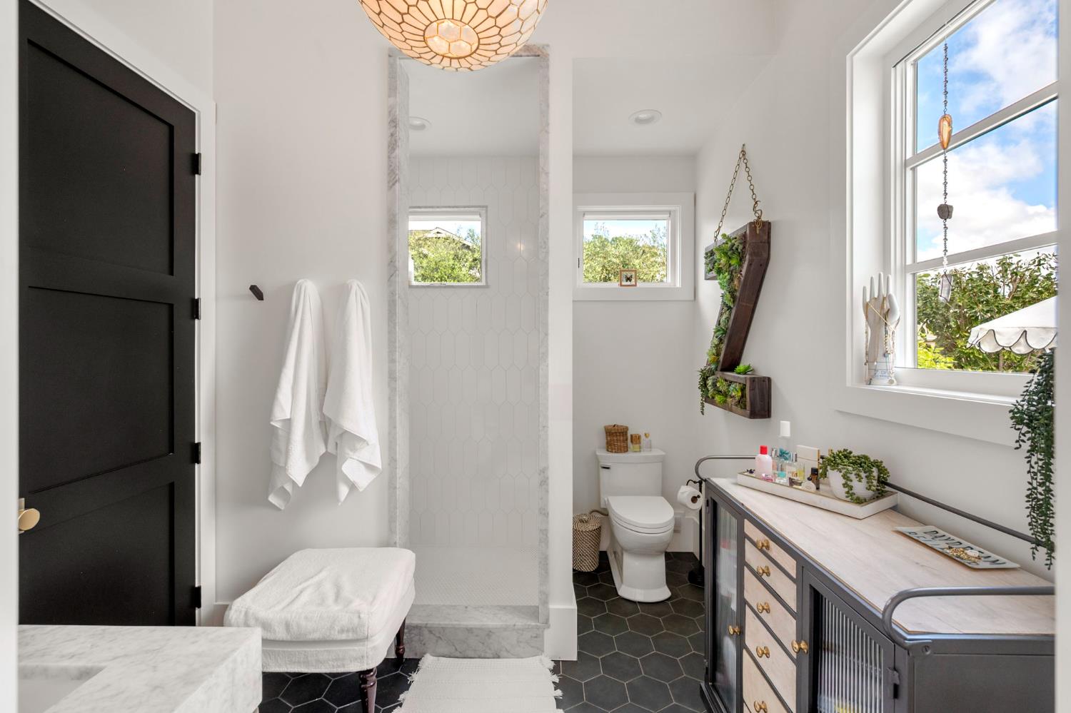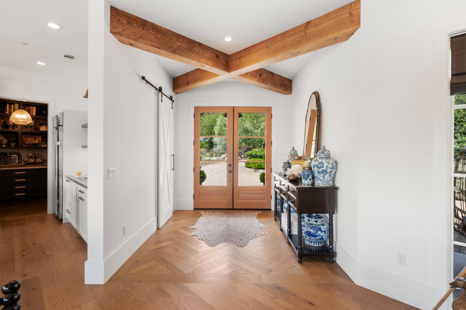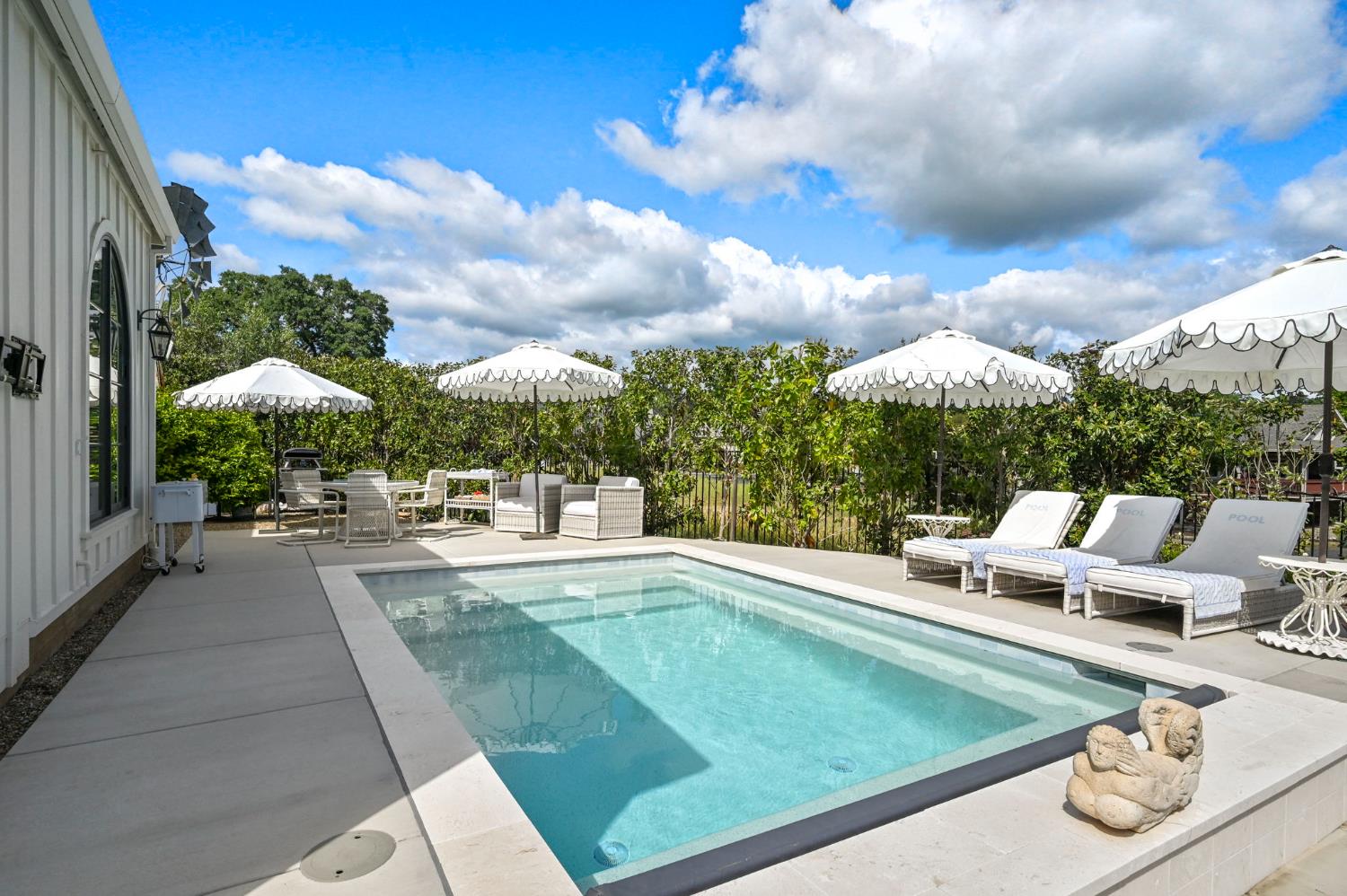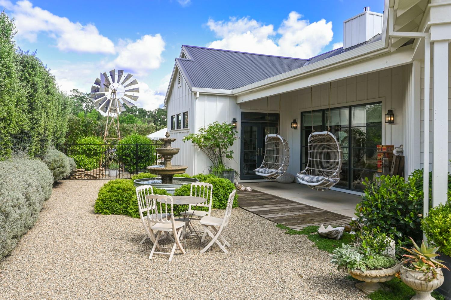 Modern Farmhouse elegance meets turnkey resort-style living in the heart of Greenhorn Creek, with breathtaking views of Bear Mountain framed through expansive windows that flood the home with natural light. This beautifully crafted 2,450 sq ft single-level home offers 2 bedrooms plus an office (currently used as a 3rd bedroom) and 2.5 baths, thoughtfully designed with quality finishes and energy efficiency throughout. Built in 2021 by respected local contractor Rolleri Construction, this is your rare chance to enjoy a custom build without the time, stress, or cost of starting from scratch. No HOA means no restrictions and no extra fees. Just move in and live your best life. The great room impresses immediately with 12-foot coffered ceilings, exposed beams, a propane fireplace, and white oak hardwood floors that run throughout. Custom cabinetry, designer lighting, and top-tier fixtures from Grohe, Rohl, and Waterworks complete the picture. The chefs kitchen is exceptional: Sub-Zero refrigerator, 48 Viking 6-burner range, dual Fisher & Paykel dishwashers, Shaws Farmhouse sink, Waterworks bar sink, and a walk-in pantry with stainless prep sink and water purifier. Luxury details continue throughout: custom low-E Marvin clad windows and doors, 10-foot ceilings, solid wood interior doors, Kallista soaking tub, Toto washlet, and custom built-in walk-in closets. Energy efficiency shines with 20 owned solar panels, Navien tankless water heater, dual-zone HVAC, Tesla EV charger, and extra insulation for year-round comfort. The corrugated metal roof adds farmhouse character while delivering decades of durability. Step outside to true resort-style living. The stunning pool, completed in 2025, features an electric cover for effortless maintenance. Thermory wood decking, a spa, lush privacy landscaping, outdoor lighting, and inviting patio spaces create a private retreat built for effortless entertaining. Located in the highly sought-after Greenhorn Creek Golf Community, this home delivers the ultimate foothill lifestyle where modern farmhouse design, breathtaking views, and resort-style living come together beautifully.