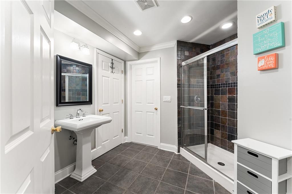 Nestled on a generous cul-de-sac lot, this home features a stunning stone and stucco exterior that blends durability with sophisticated design, creating standout curb appeal in the community. Located in the highly sought-after Vinings Estates, this home offers both comfort and convenience. Step inside to a grand two-story foyer filled with natural light, setting the tone for the spacious and well-maintained interior. The main level includes a bedroom and a full bathroom, perfect for guests or a private office. This home has been thoughtfully updated with a brand-new roof, a recently replaced water heater, and newer HVAC systems. Enjoy the peaceful serenity of your home thanks to the new insulated windows and front door. The kitchen features all-new appliances, including a Bosch dishwasher, offering peace of mind from day one. Just off the kitchen, the breakfast area is surrounded by windows, bringing in beautiful natural light and backyard views. This home also includes a whole house water treatment system, a smart irrigation system, a Level 2 electric car charging station in the garage, and a whole house surge protector.The main level flows seamlessly for everyday living and entertaining, highlighted by a bright, spacious screened-in porch off the family room, perfect for relaxing or enjoying your morning coffee. Upstairs, retreat to your oversized owner’s suite featuring tray ceilings, a large walk-in closet, and a fully renovated spa-like bathroom complete with a soaking tub, dual vanities, and a walk-in shower. The additional bedrooms and bathrooms on the upper level are generously sized, offering comfortable space for family or guests.The finished lower level is an entertainer’s dream, featuring a built-in bar and media room with direct access to a private outdoor patio, creating your own backyard oasis. Perfect for game nights, movie nights, or hosting gatherings. You will also find two large storage rooms with flexible space ideal for a home gym, along with an additional room that can be used as a bedroom or office.Enjoy resort-style living in Vinings Estates, featuring three pools, six tennis courts, six pickleball courts, private walking trails, a fitness center, two clubhouses, and an active social community. Located just minutes from Whitefield Academy, the Silver Comet Trail, I-285, and The Battery at Truist Park, this home combines luxury, convenience, and community.