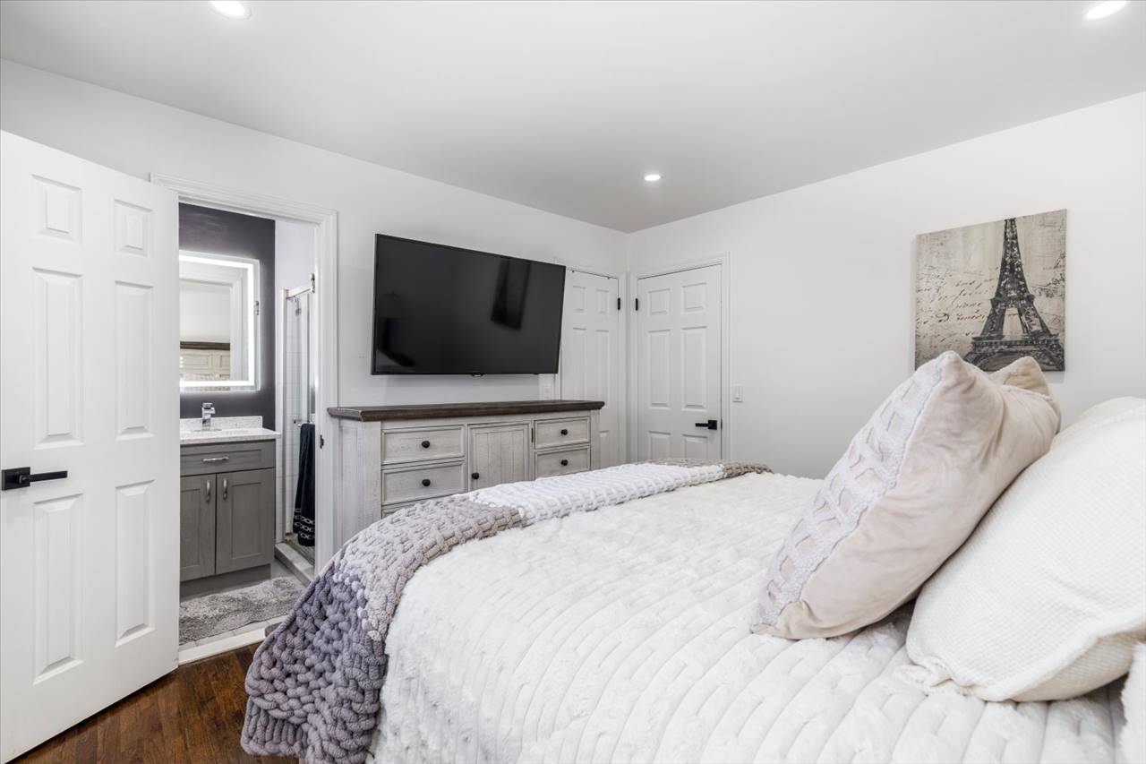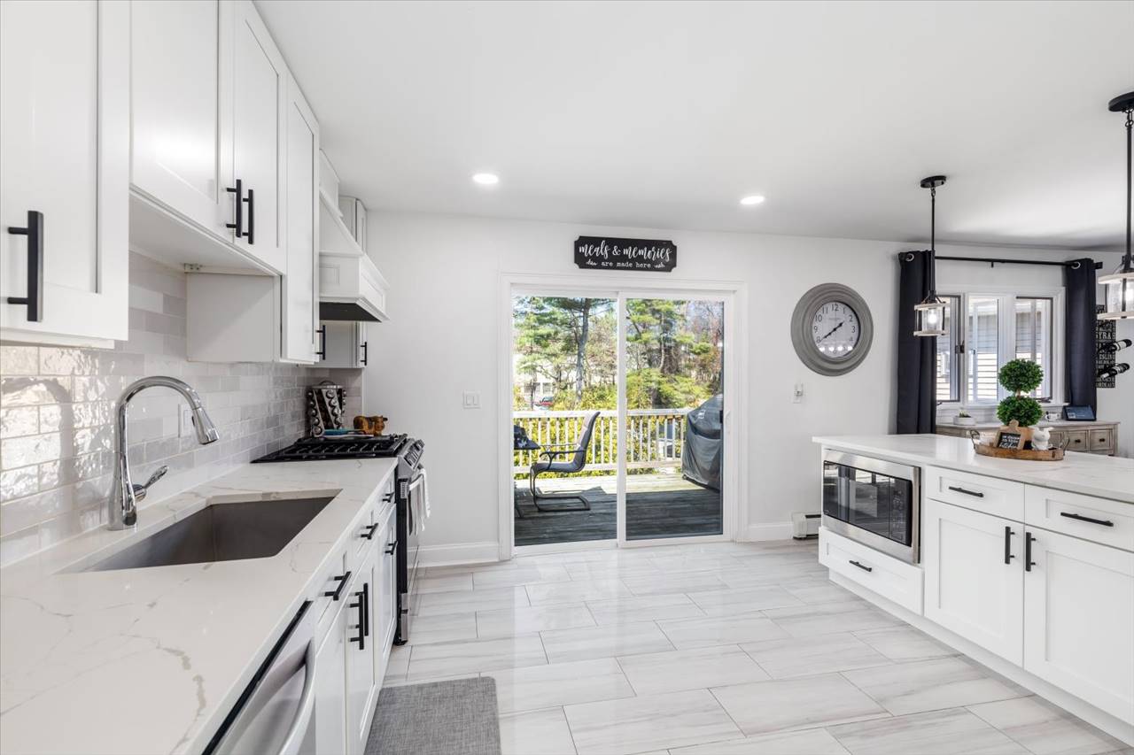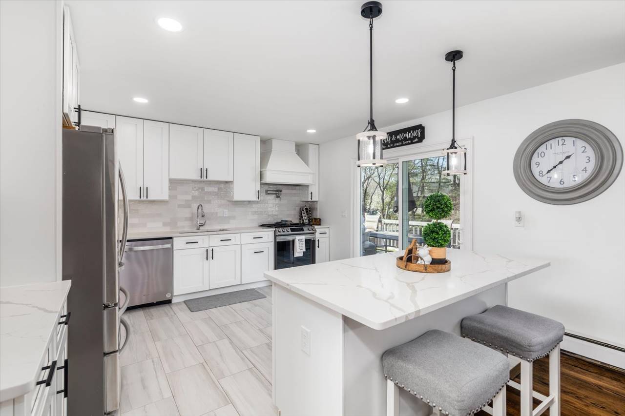 Nothing to do but unpack your bags and move in! Totally renovated bi-level in Totowa. First level features 3 good sized bedrooms, updated eat-in kitchen w/ breakfast bar, quartz counters, tile back splash, stainless steel appliances & beautiful ceramic tile floors. Living Room w/recessed lighting and new bay window, Formal Dining Room with w/sliders to deck, Hardwood floors throughout, Pull Down attic with steps, Primary Bedroom w/primary bath, which offers double vanity &separate stall shower. Ground floor, which walks out to patio offers large family room, vinyl laminate floors, an office, bar, laundry area and full bath. Nice sized private backyard with vinyl privacy fence. 1 Car Garage, parking for up to 4 cars in driveway. new windows(except for DR), newer roof, new front steps. 200 amps electric. Close to major highways, shopping and transportation. Your search ends here. Absolute mint condition! Refrigerator in kitchen not included. Refrig on lower level will stay